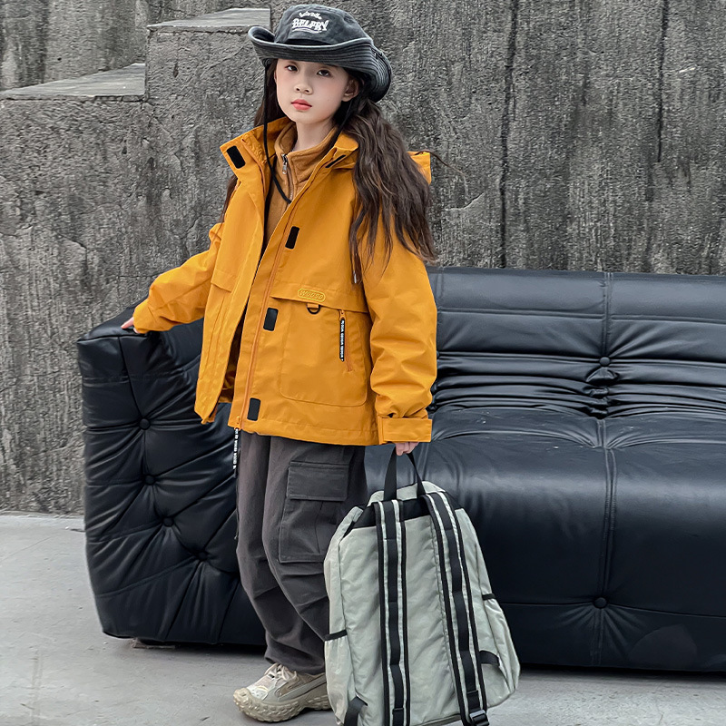 Девушка три в одном куртка на открытом воздухе осень 2025 новый модный спортивный куртка утолщенный жакет для детей