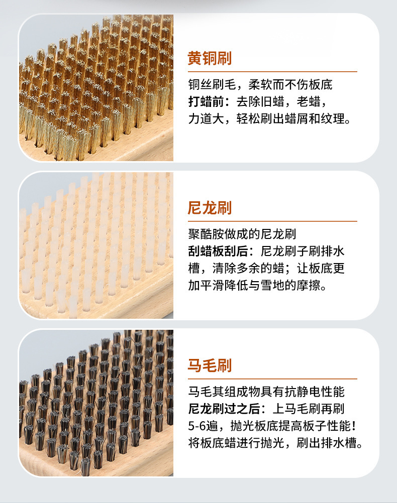 Щетка для сноуборда (нейлоновая проволочная щетка); Щетка для сноуборда (шелковая щетка из конского волоса); Щетка для сноуборда (щетка из чистой медной проволоки); Щетка для сноуборда (набор из трех предметов)