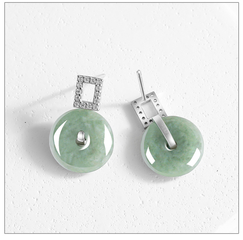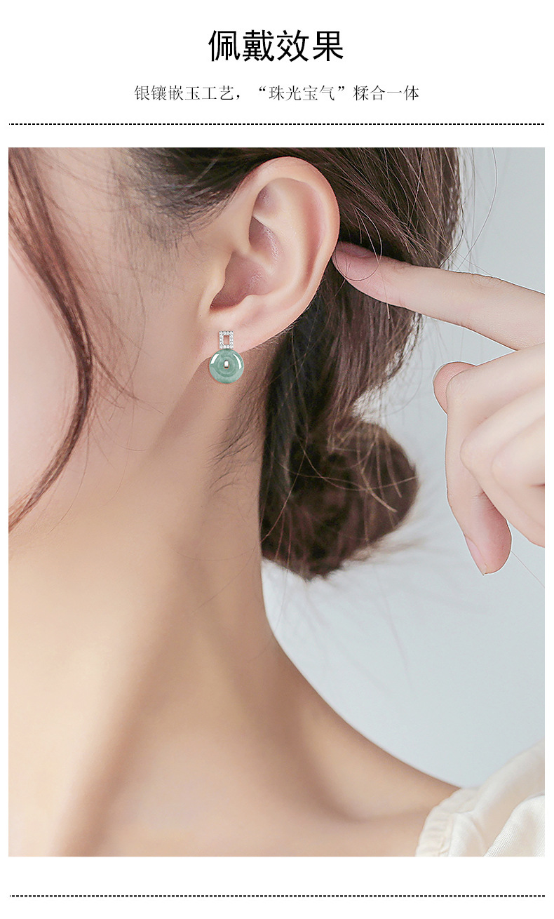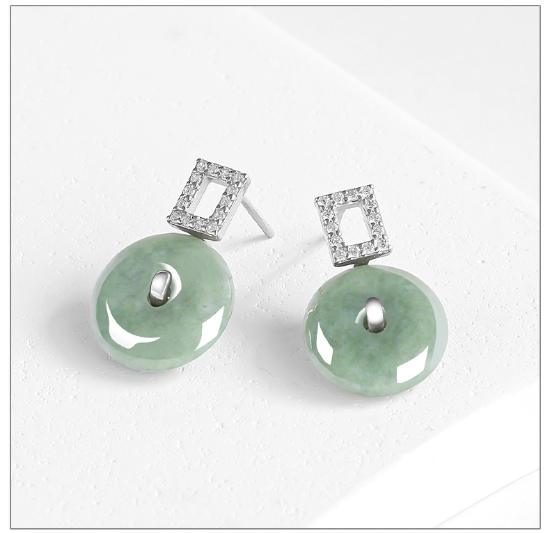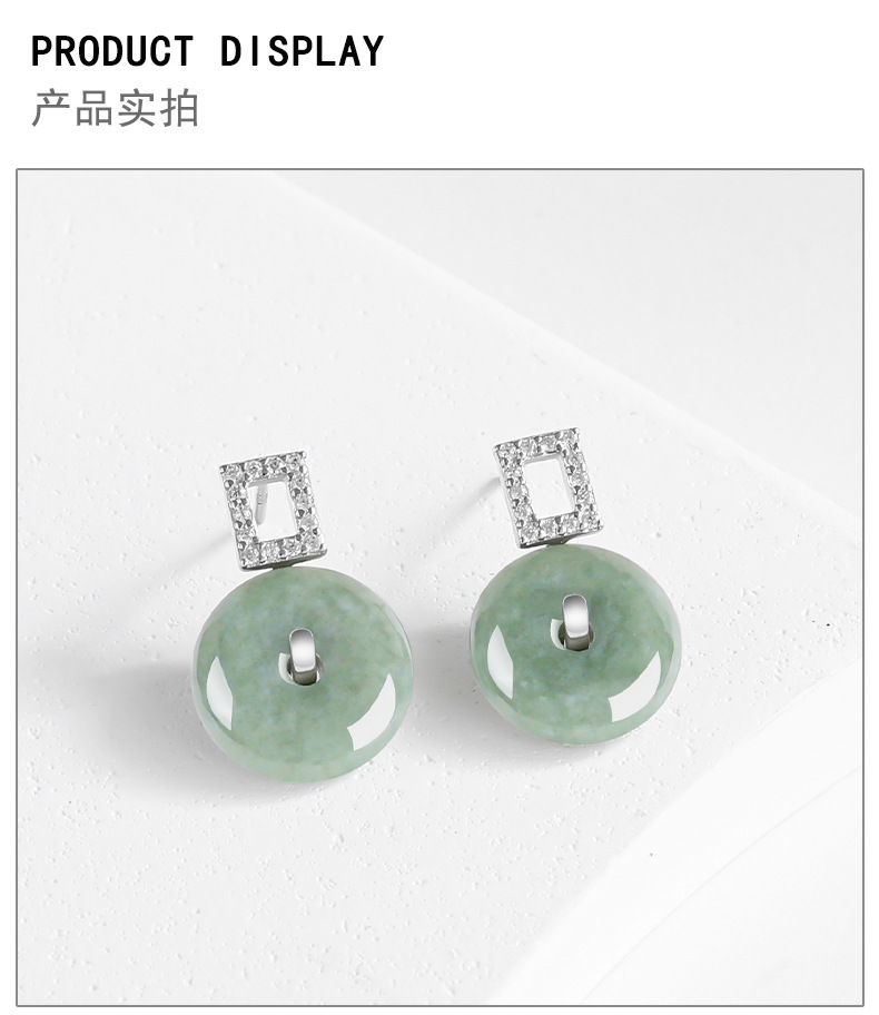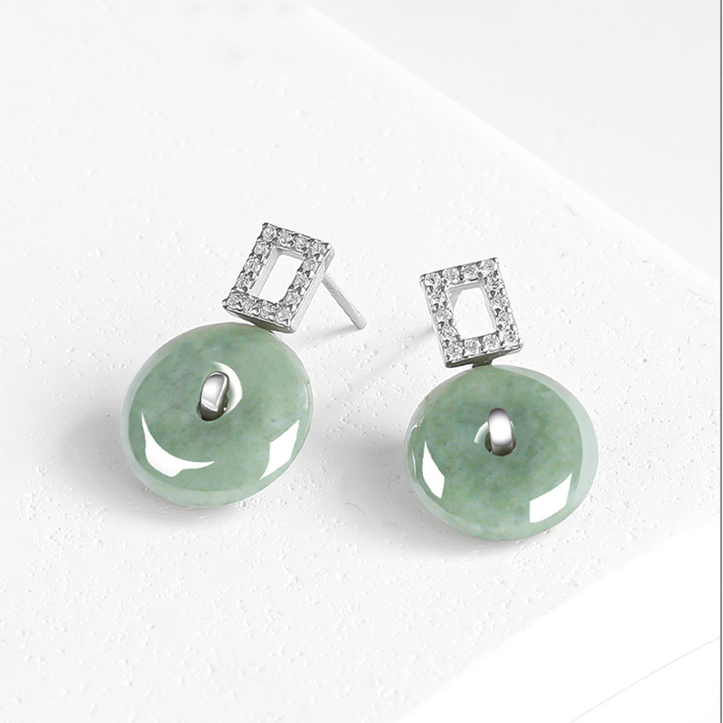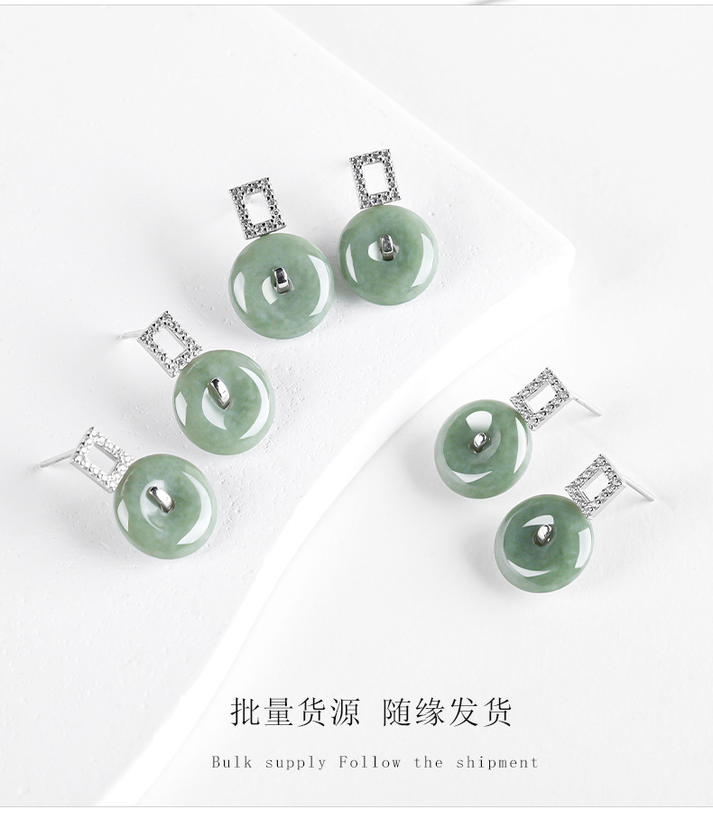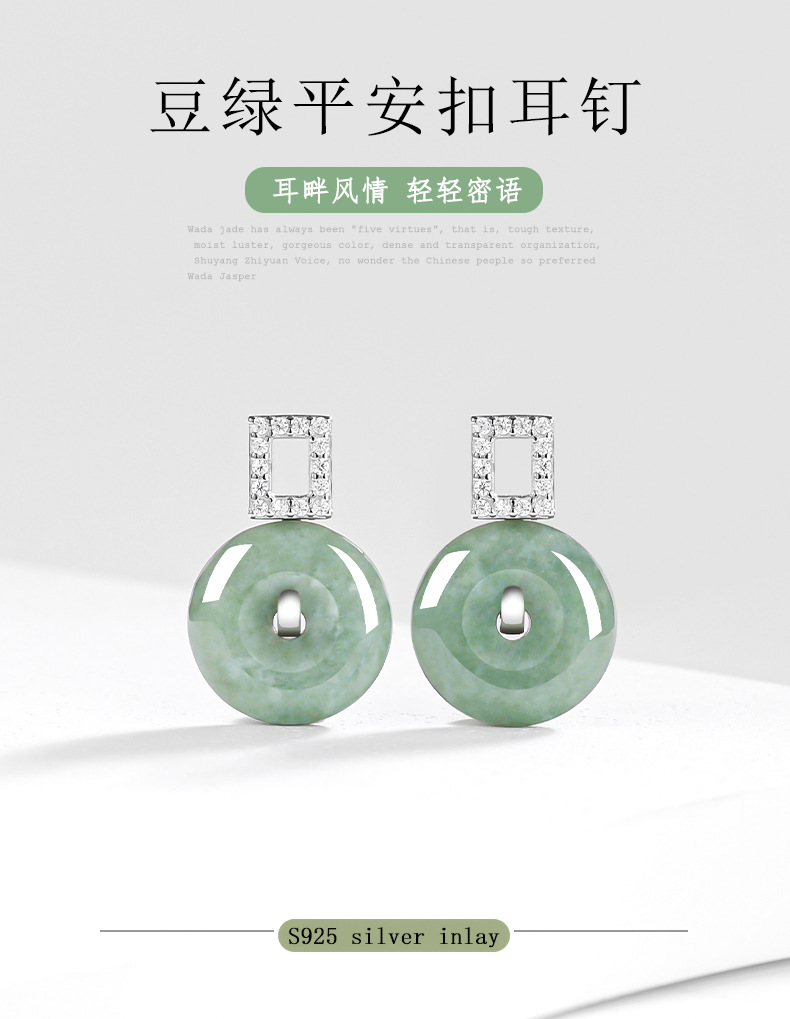 Натуральные изделия Изумрудная фасоль Зеленая ушная гвоздь Безопасная серьговая застежка Серебные украшения из ледяного нефритового камня S925 Серебряная женская модель высокого класса Модные серьги