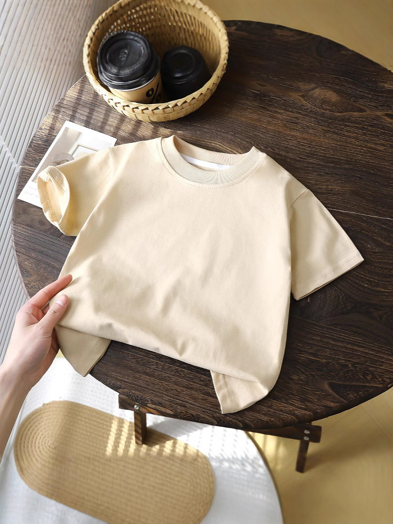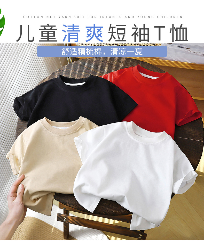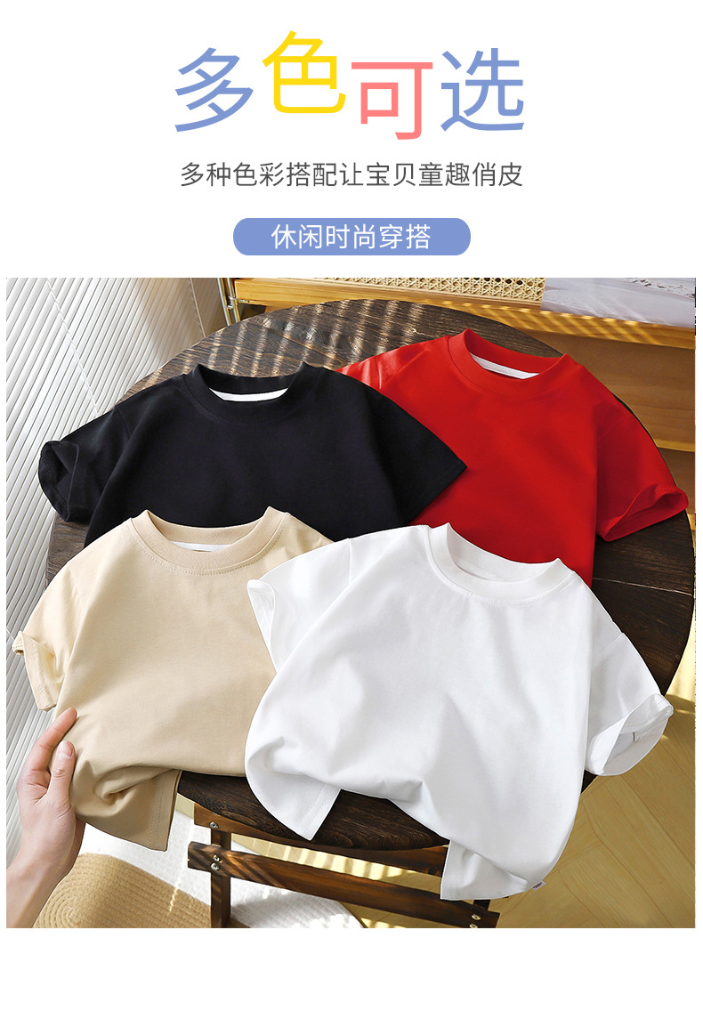 Детские короткие рукава из чистого хлопка-белые; Детские короткие рукава из чистого хлопка-черные; Детские чистый хлопок с короткими рукавами-темно-абрикосовый; Детские короткие рукава из чистого хлопка-китайский красный; Детские джинсы из чистого хлопка с короткими рукавами-синие; Детские короткие рукава из чистого хлопка-коричневые; Детские короткие рукава из чистого хлопка-светло-бобово-зеленый