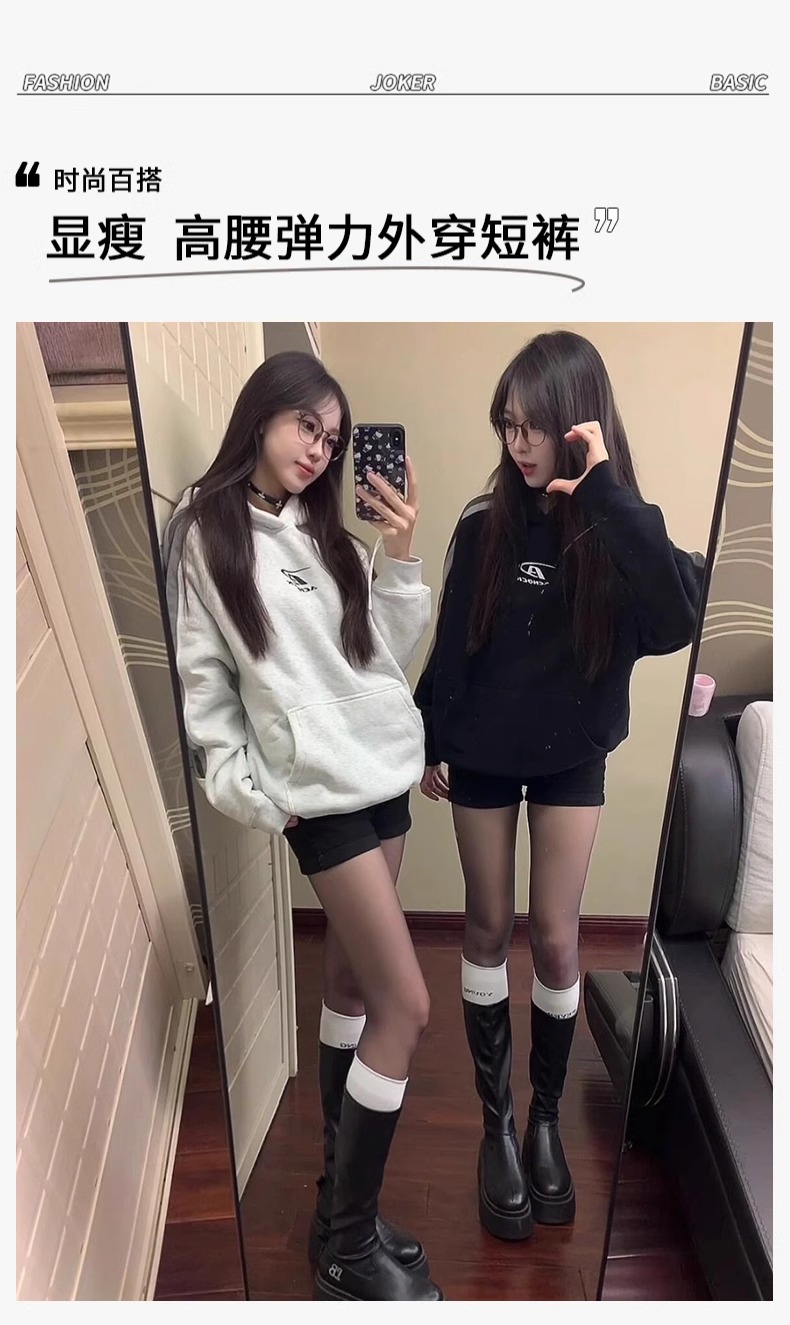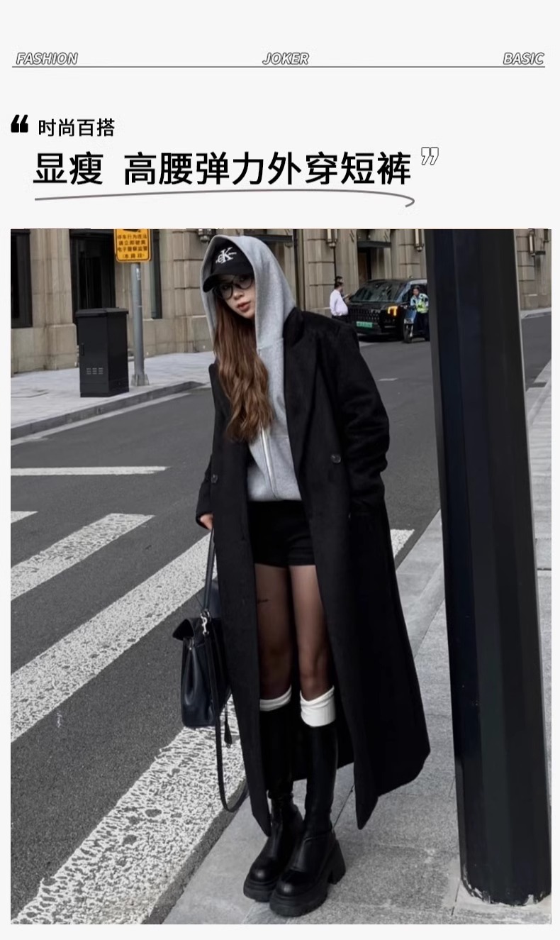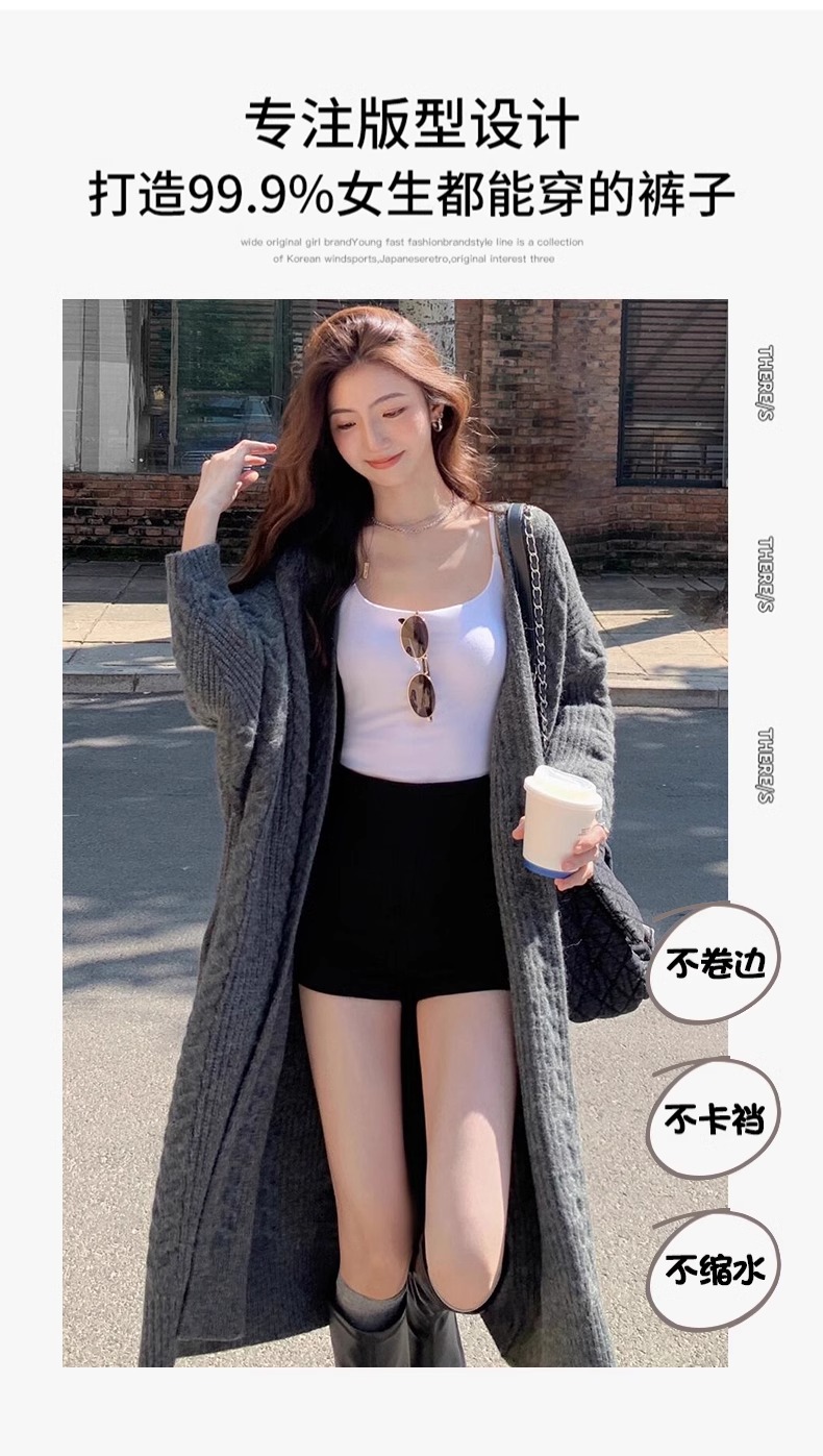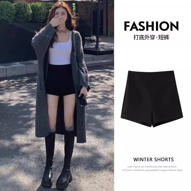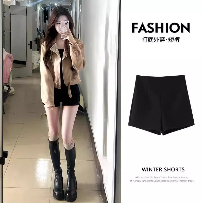 Черные шорты женские осенние и зимние новые 2024 с высокой талией