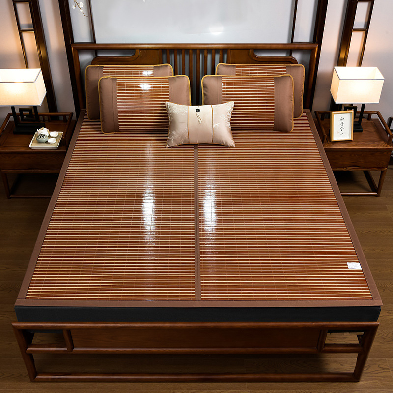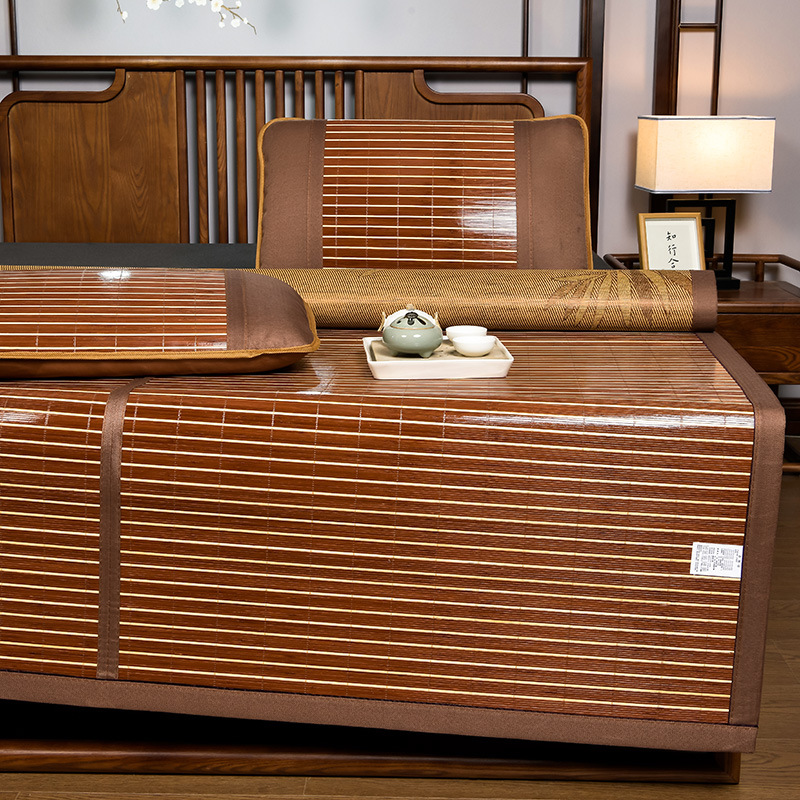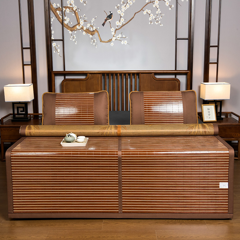 Летний двусторонний бамбуковый коврик Anji, охлаждающий бамбуковый коврик для студентов с карбонизированными краями, складной коврик для домашнего использования, подходит для двухъярусных кроватей.