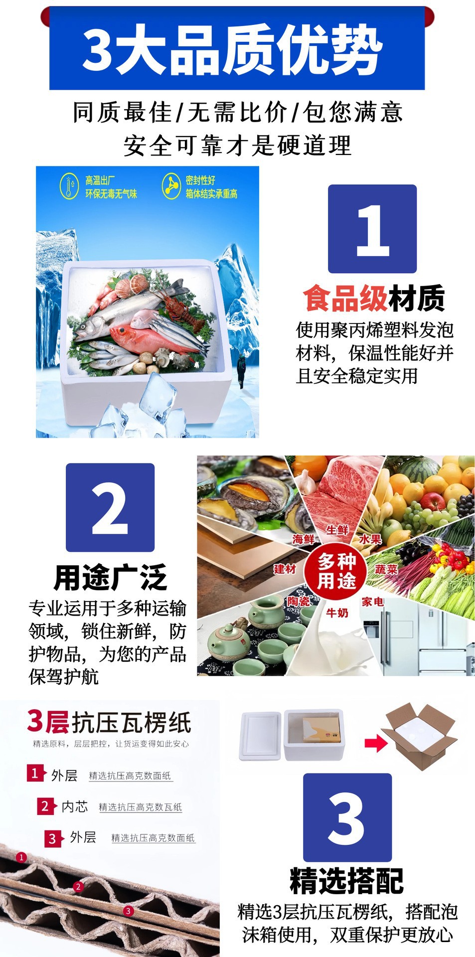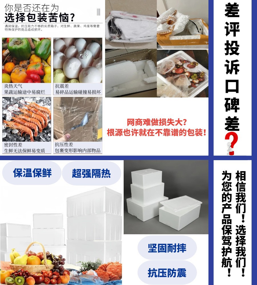 泡沫箱大号食品级加厚冷藏海鲜水果快递包装箱邮政快递保温泡沫盒