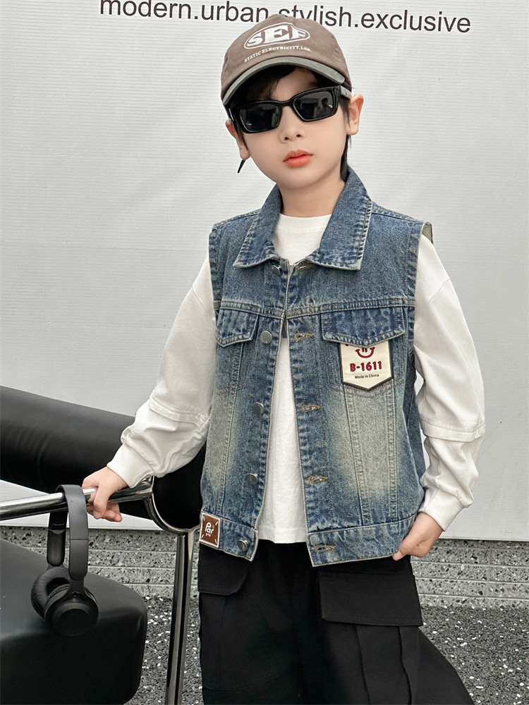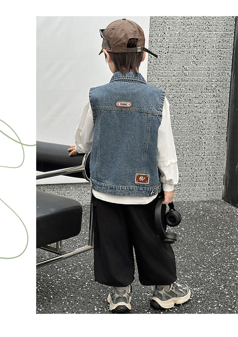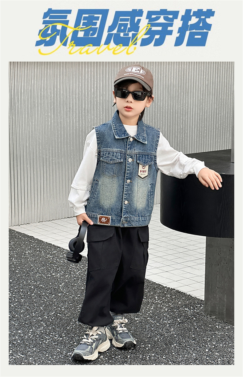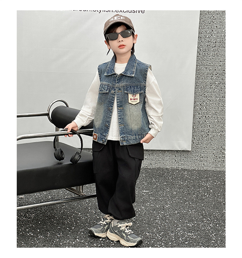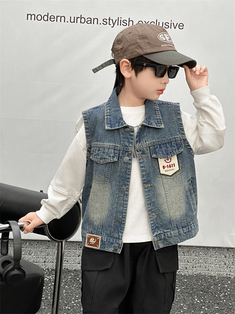 Мальчик джинсовый жилет Весна и Осень 2025 Новый детский стиль чужой осенней куртки модный внешний жилет осенняя одежда