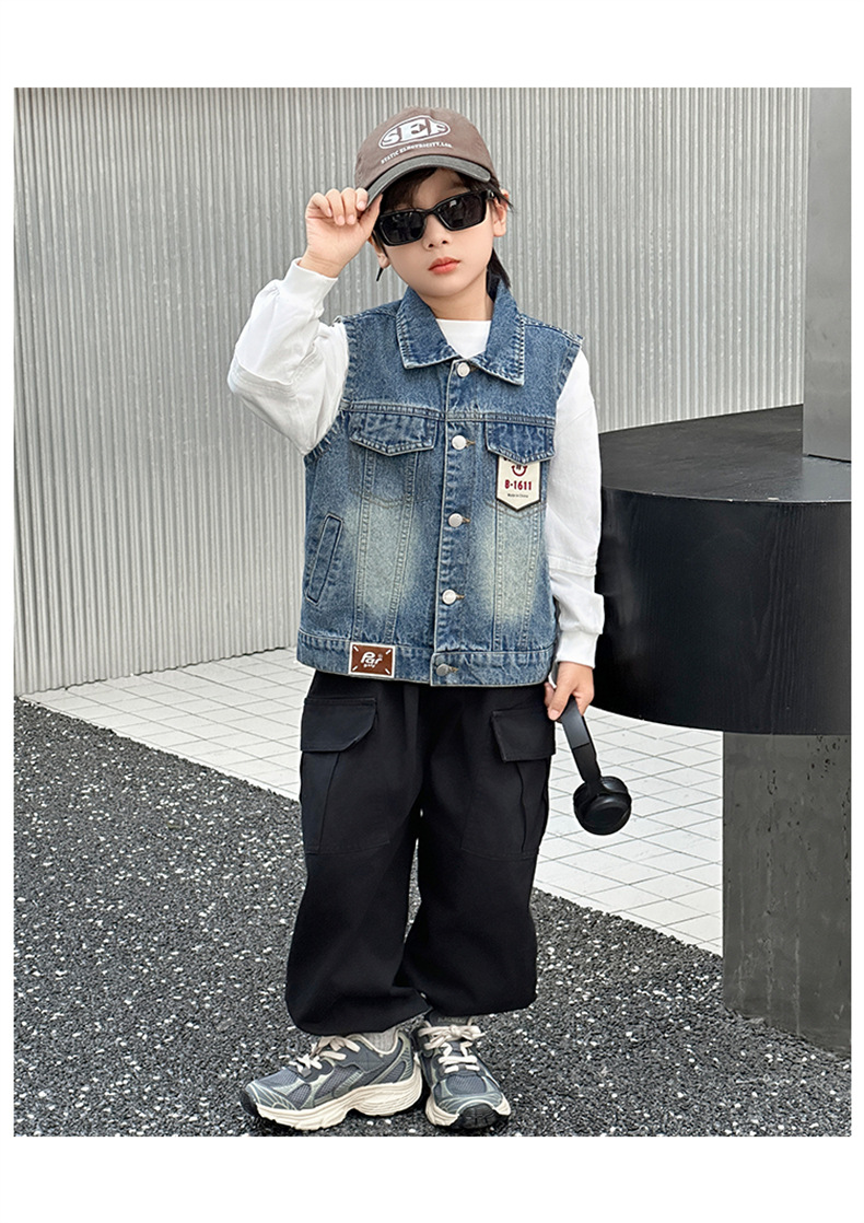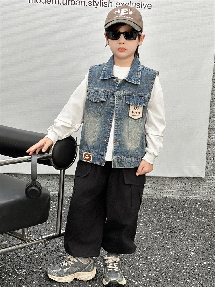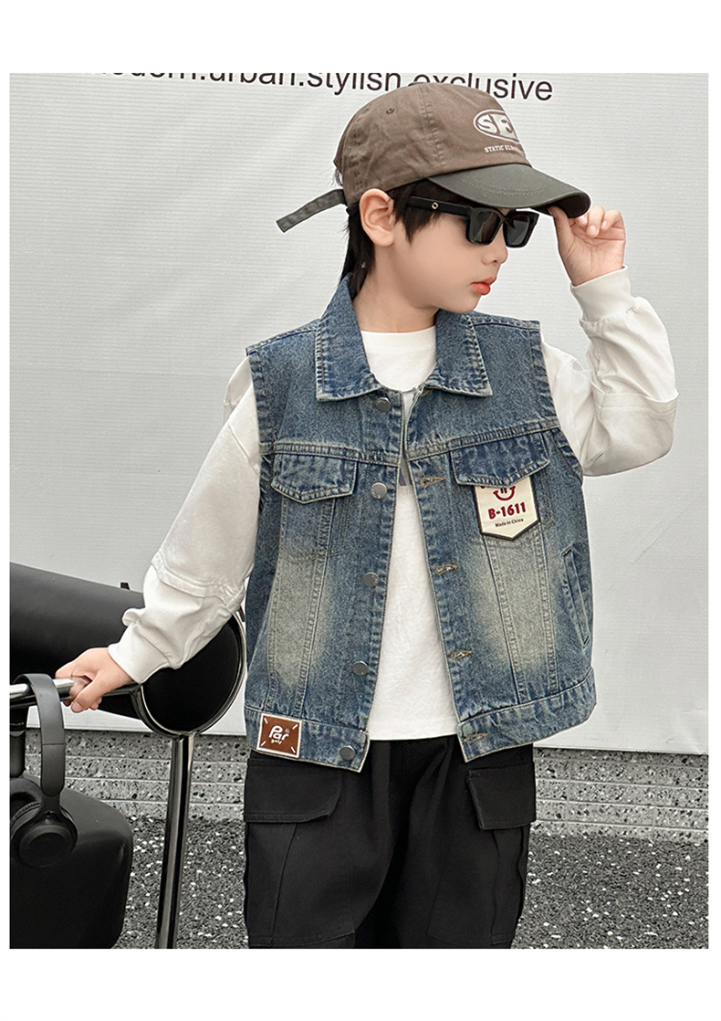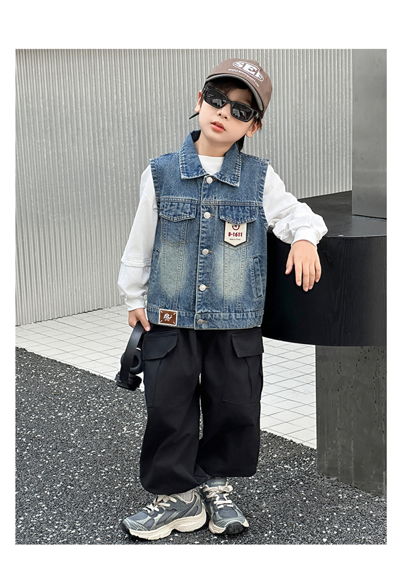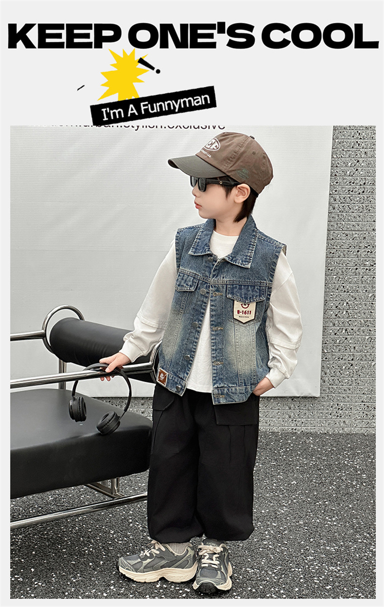 Мальчик джинсовый жилет Весна и Осень 2025 Новый детский стиль чужой осенней куртки модный внешний жилет осенняя одежда