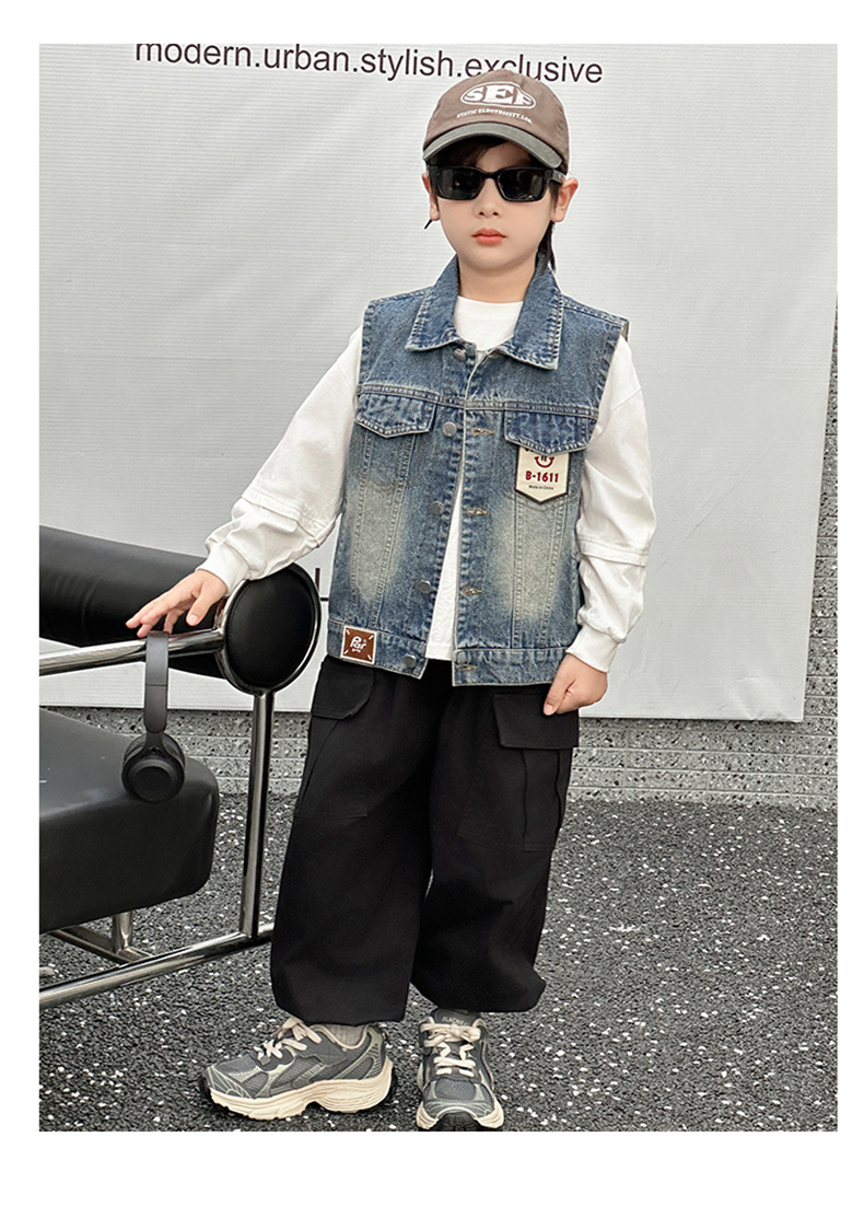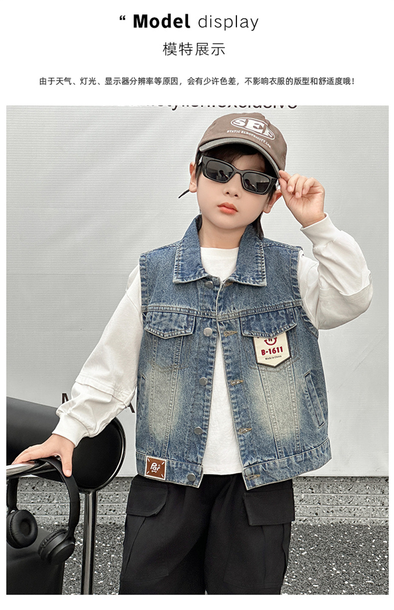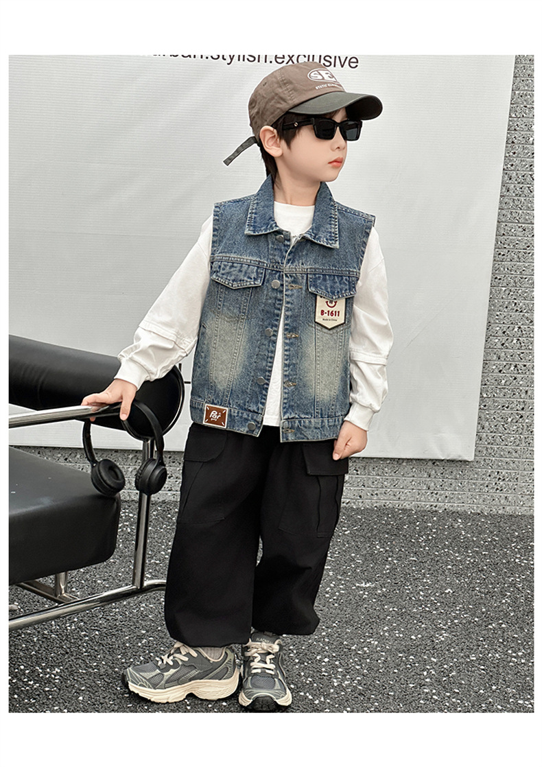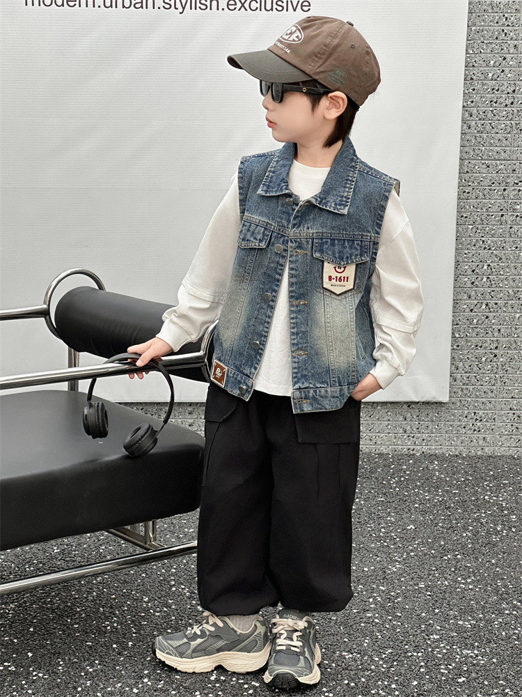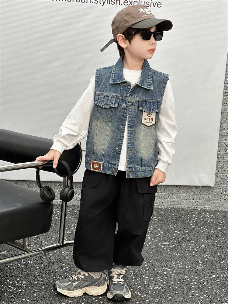 Мальчик джинсовый жилет Весна и Осень 2025 Новый детский стиль чужой осенней куртки модный внешний жилет осенняя одежда