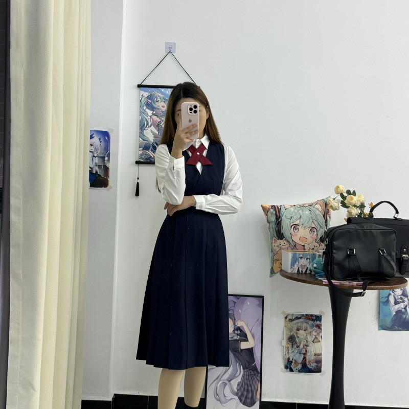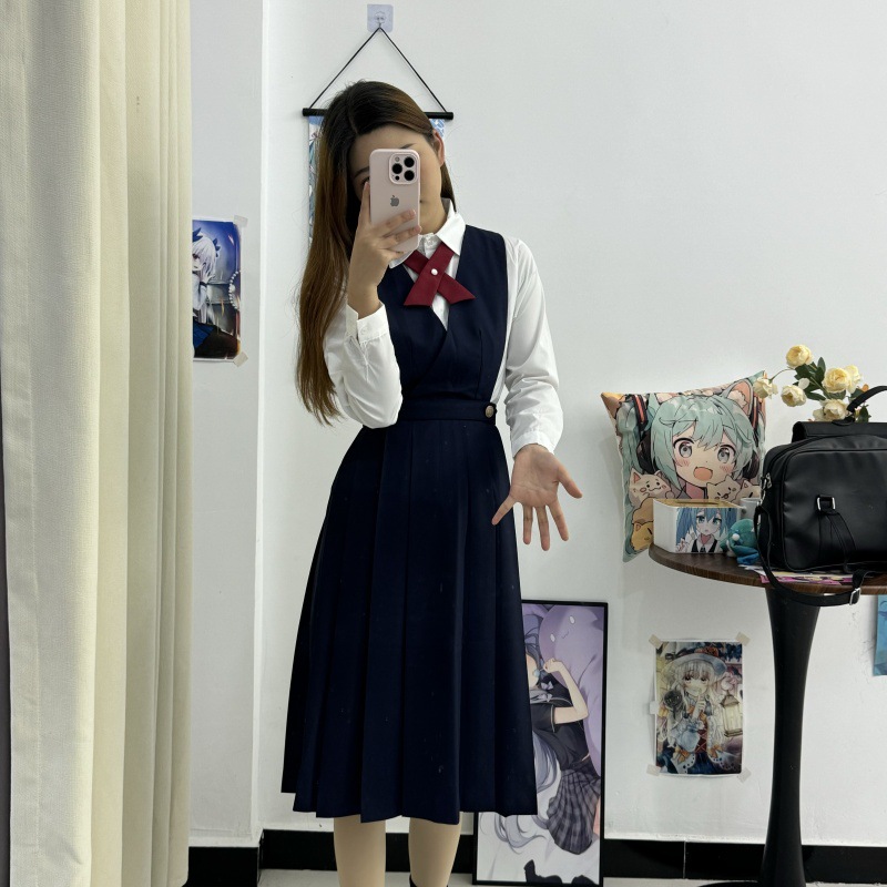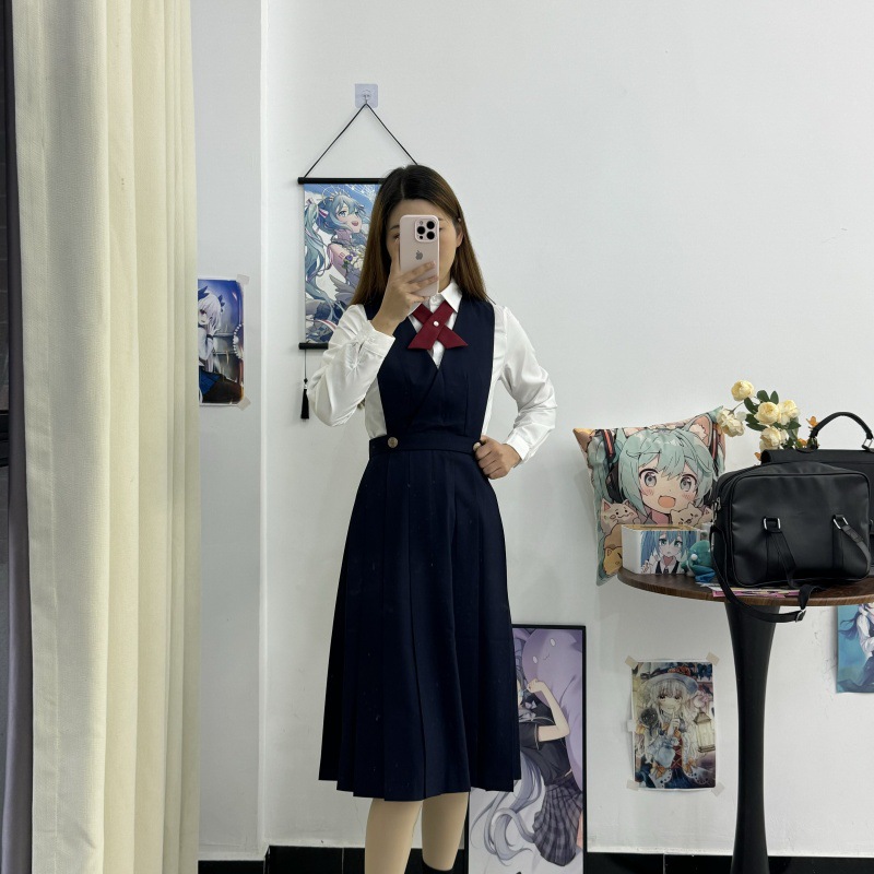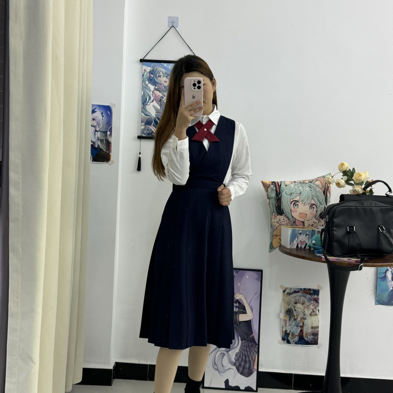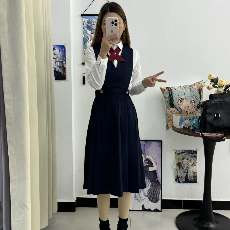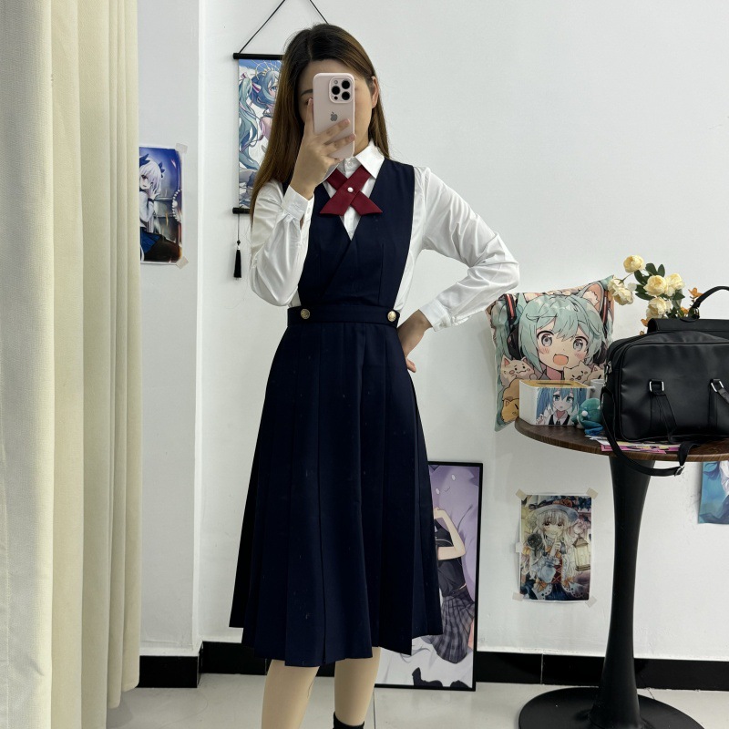 Школьная юбка в стиле JK, японский академический стиль, темно-синее плиссированное платье на бретелях, униформа, платье-жилет в западном стиле