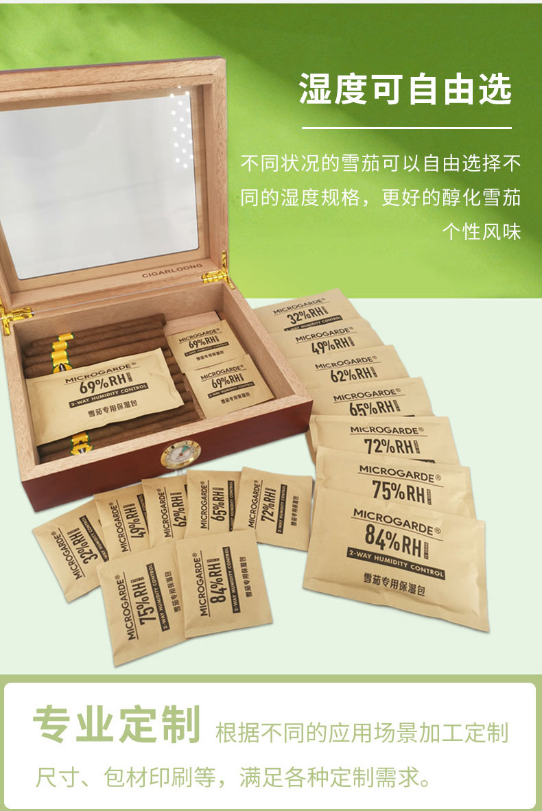 Увлажнитель для сигар, двусторонний, с постоянным контролем влажности 69%, пакет для контроля влажности табака, пакет для сигар, 10 г, увлажняющие таблетки для сигар