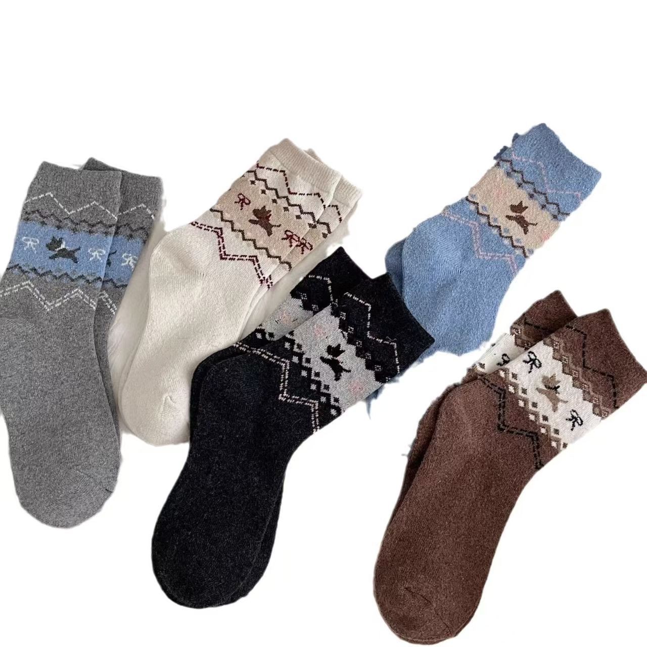 Fair Isle, осенне-зимние новые носки в стиле ретро с щенками, женские носки с бантом в японском стиле, милые тонкие носки средней длины