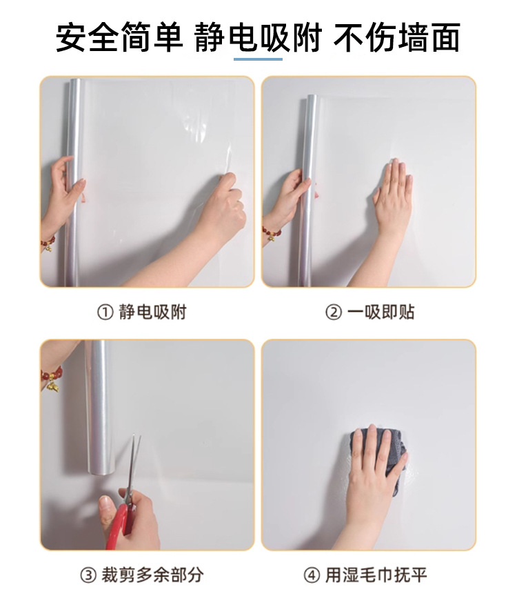 Электростатическая прозрачная настенная наклейка [пластиковый уплотнитель + фиксирующая наклейка + нож + полотенце]; Статическая настенная наклейка для белой доски [пластиковый уплотнитель + фиксирующая наклейка + нож + полотенце]