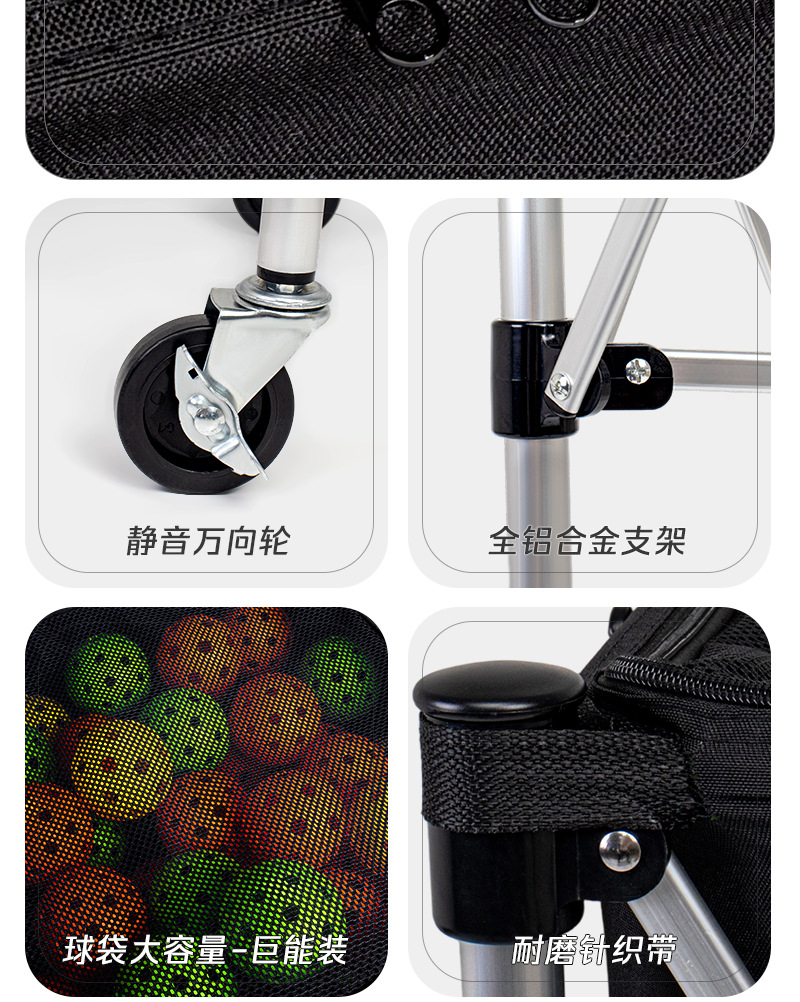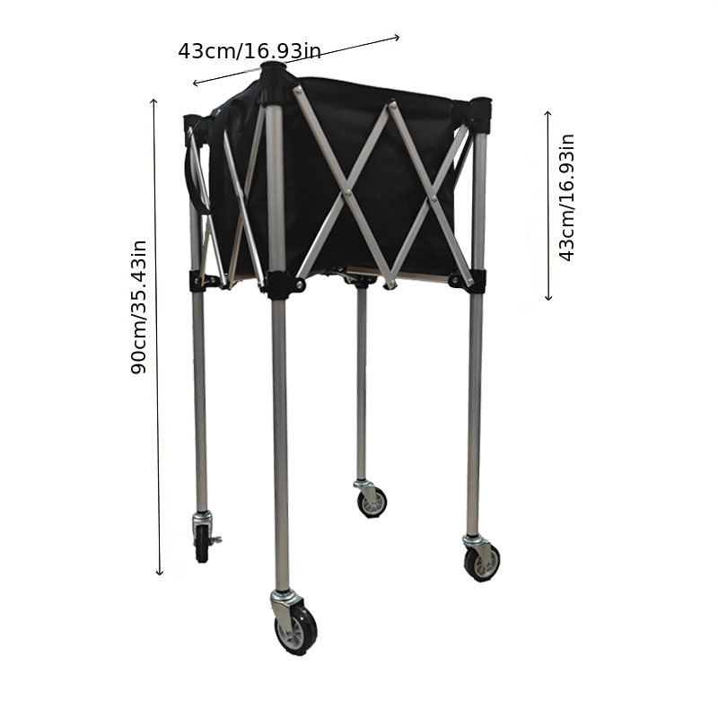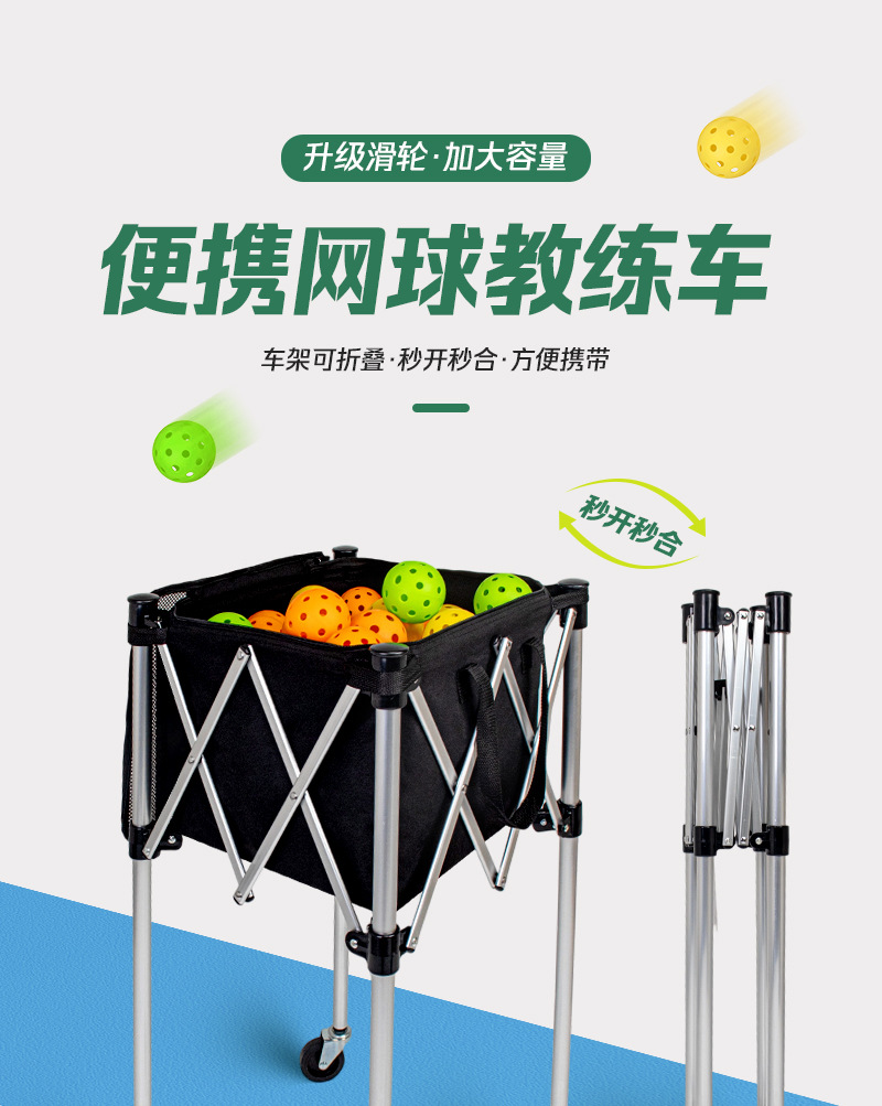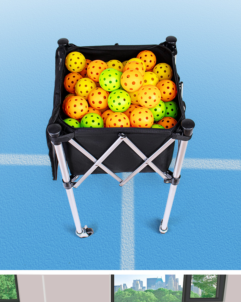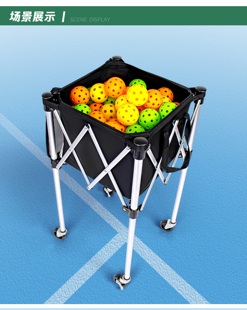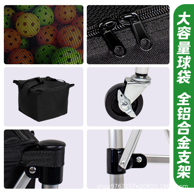 Тележка для хранения теннисных мячей, тележка для сбора мячей для пиклбола и настольного тенниса, корзина для мячей, складная тележка из алюминиевого сплава, складная и портативная.