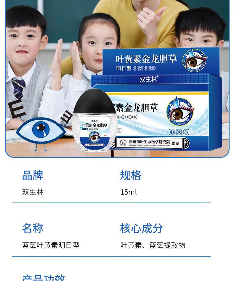 叶黄素金龙胆草护眼液缓解疲劳近视抑菌液眼药水眼部护理滴眼液