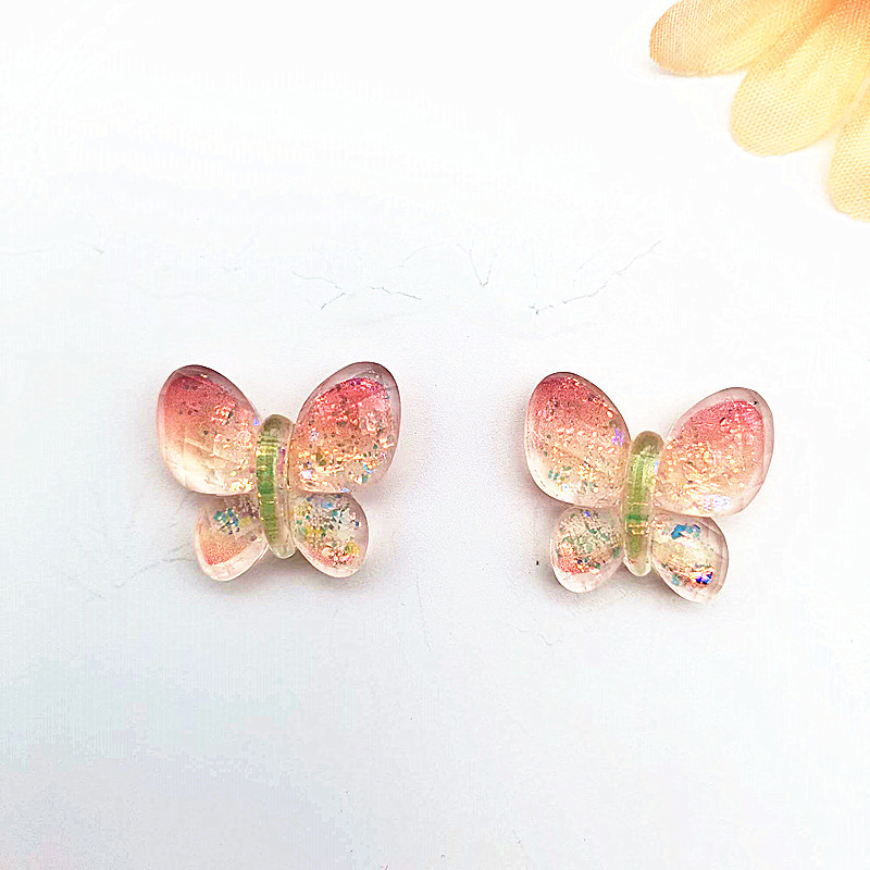 渐变色蝴蝶树脂配件高透亮片切面DIY手工发饰材料头饰饰品