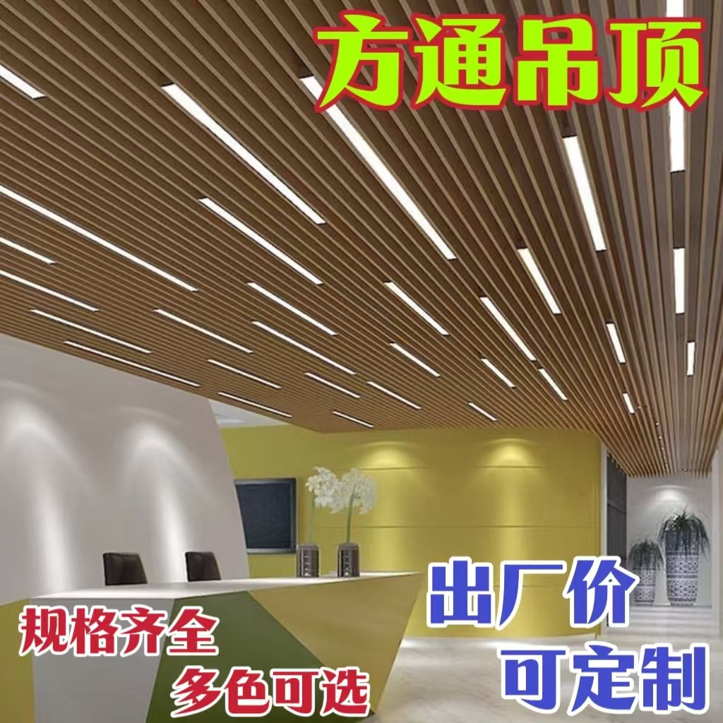 Алюминиевый квадратный воздуховод для потолка, железный квадратный воздуховод с покрытием под дерево, имитация текстуры дерева с нанесением методом трансферной печати, длинная U-образная решетка для потолка из алюминия с имитацией текстуры дерева.