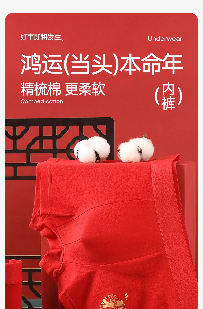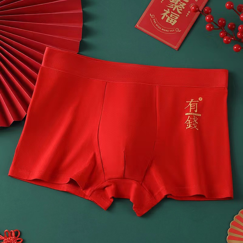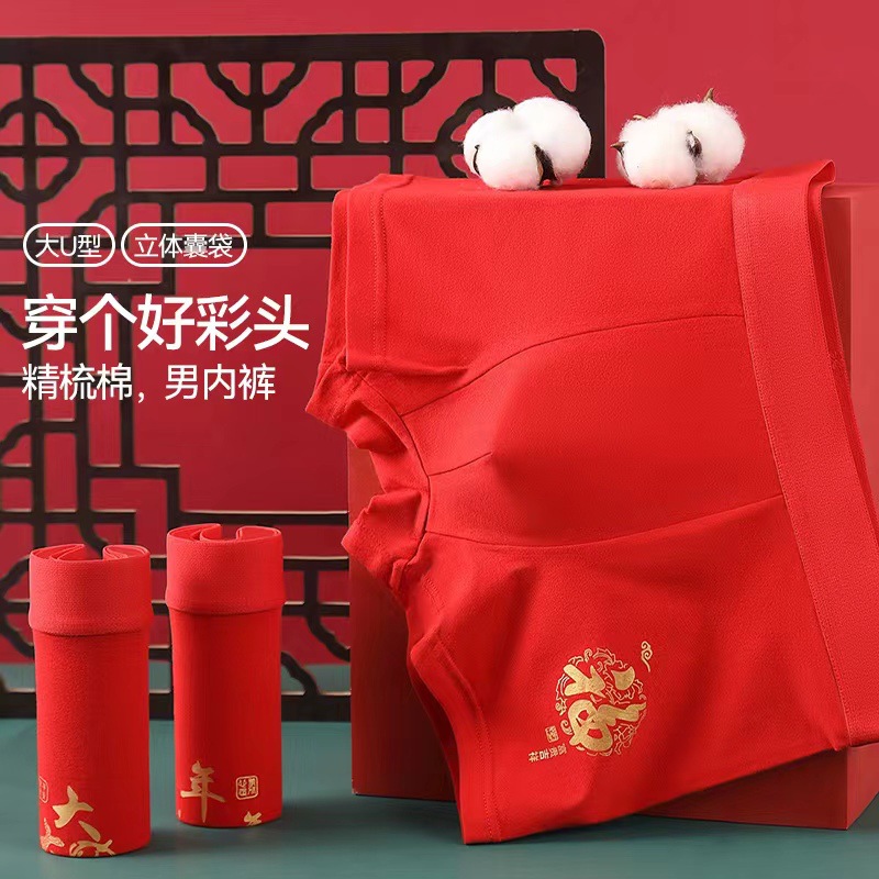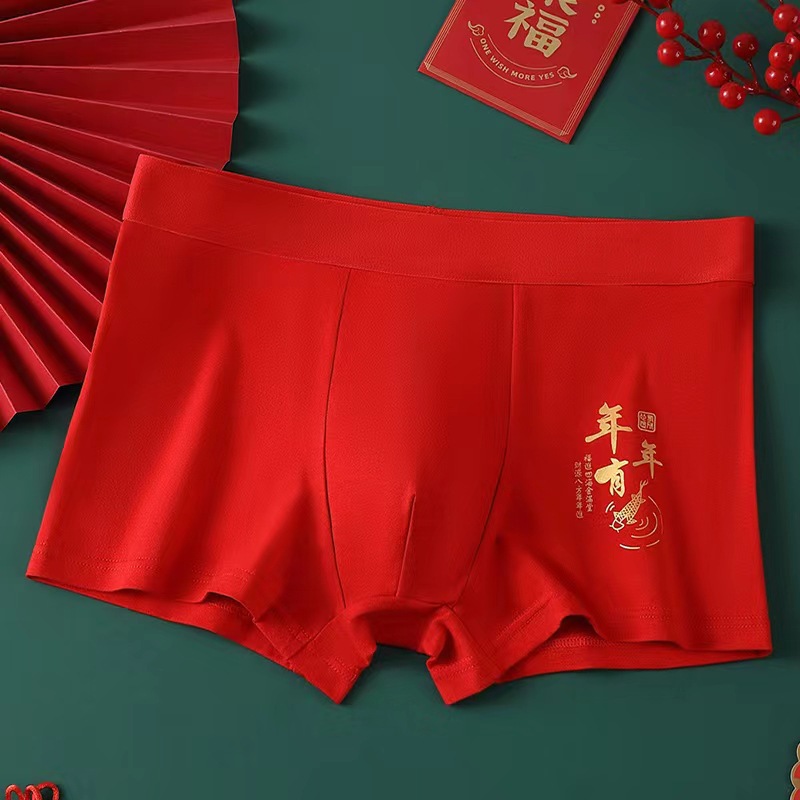 Неннатальный красный мужской трусики хлопчатобумажный дышащий большой размер свободные свадебные праздничные брюки с четырьмя угловыми шортами