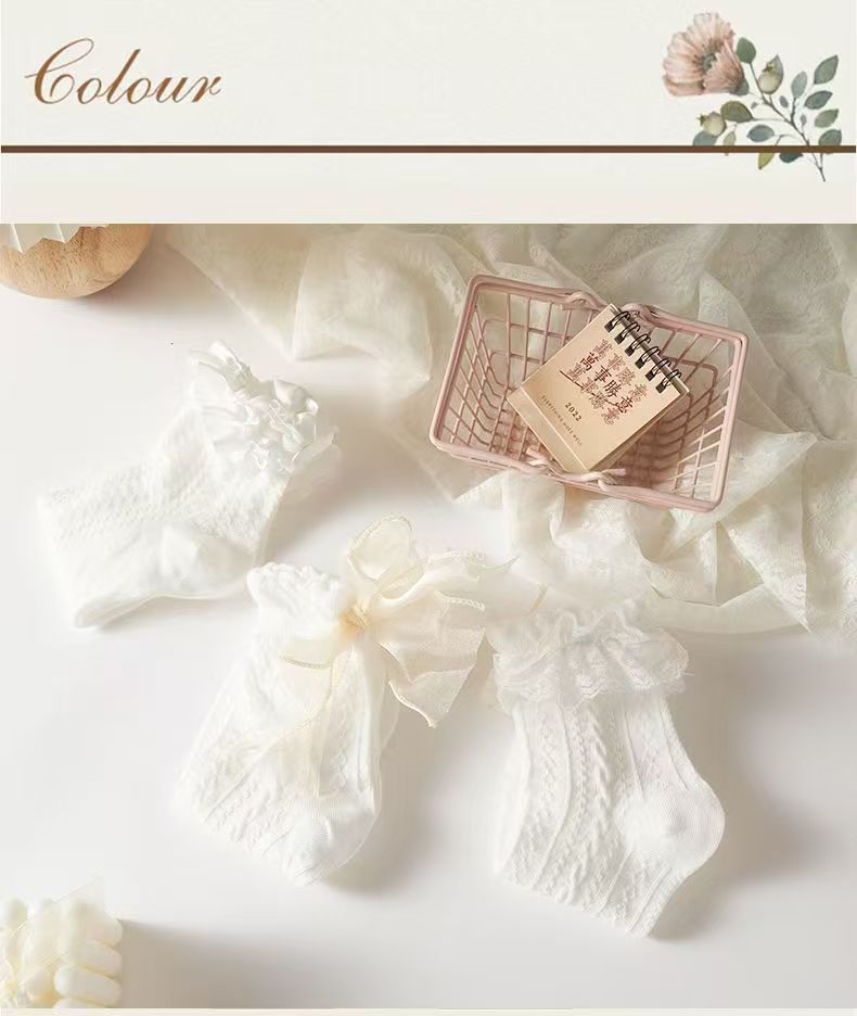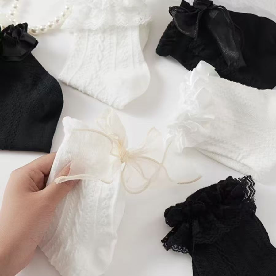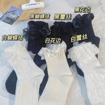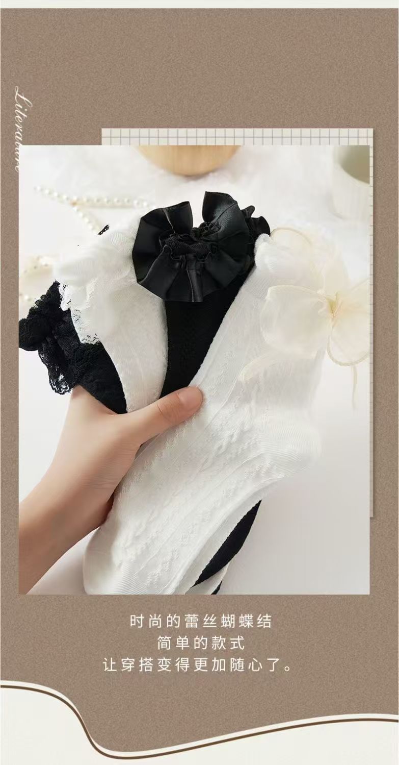 Женские летние носки средней длины, прямые поставки с фабрики, милые носки в японском стиле с бантом и кружевной отделкой, универсальные и модные.
