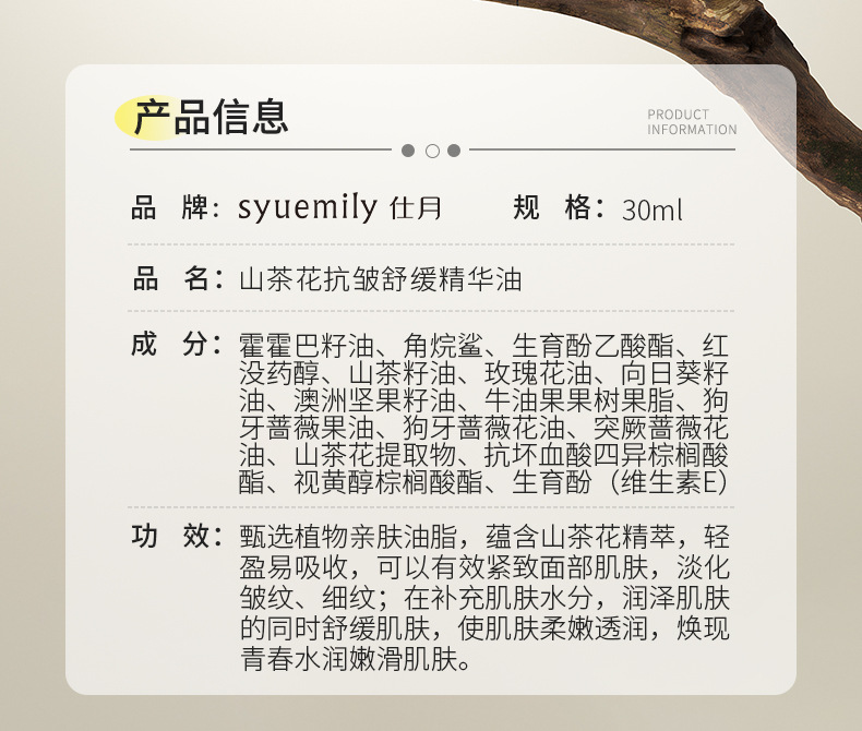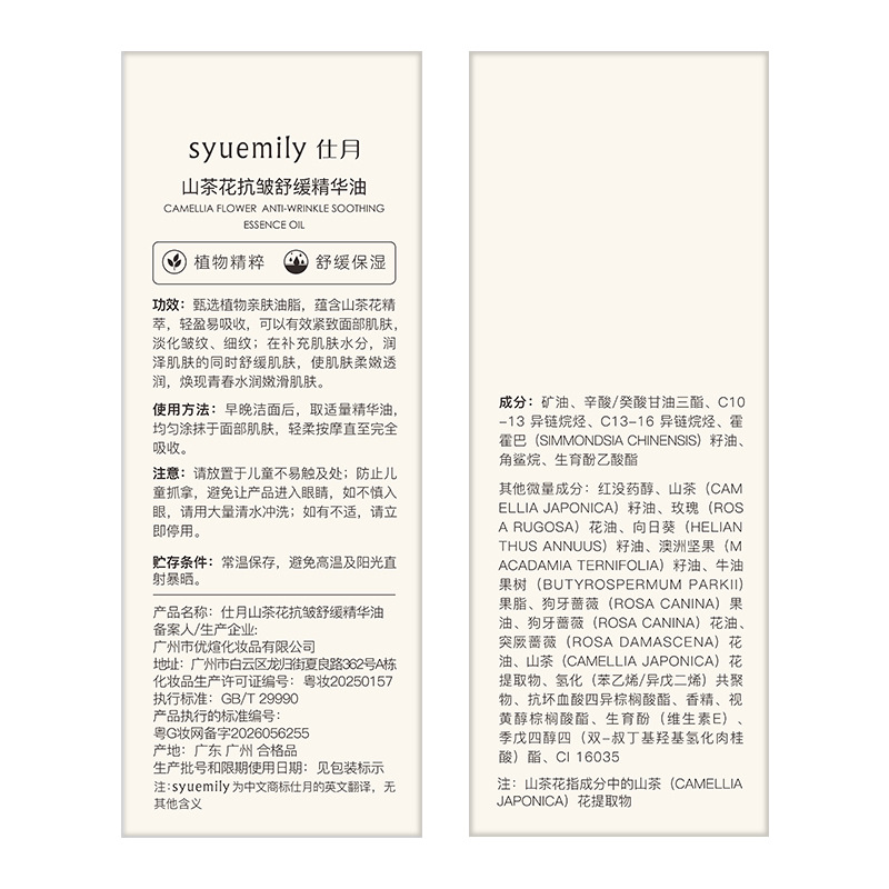 syuemily Камелия Успокаивающее масло-эссенция против морщин, 30 мл