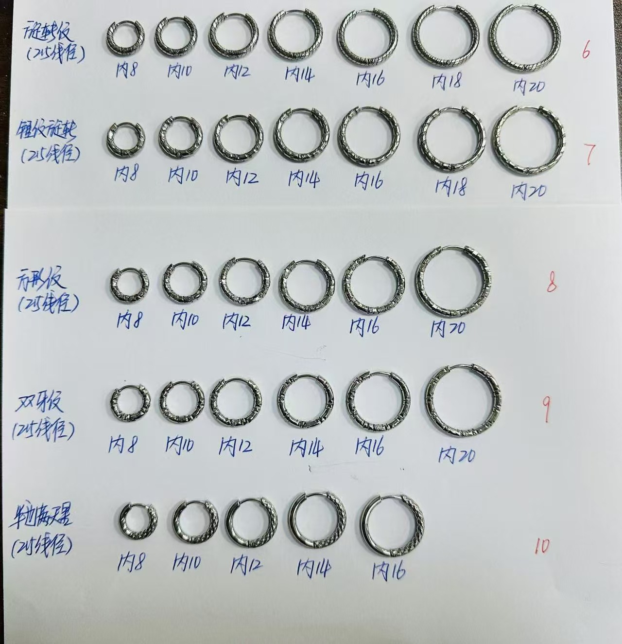 Внутренний диаметр 8 мм; Внутренний диаметр 10 мм.; Внутренний диаметр 12 мм; Внутренний диаметр 14 мм.; Внутренний диаметр 16 мм.; Внутренний диаметр 18 мм.