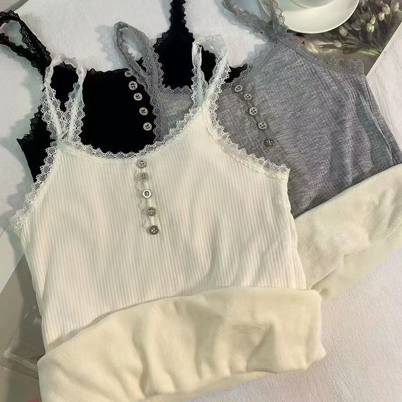 Теплая женская кофточка на флисовой подкладке и утолщенная, сексуальное кружево, красивая спинка, верхняя одежда, самонагревающееся нижнее белье для женщин, осень и зима.
