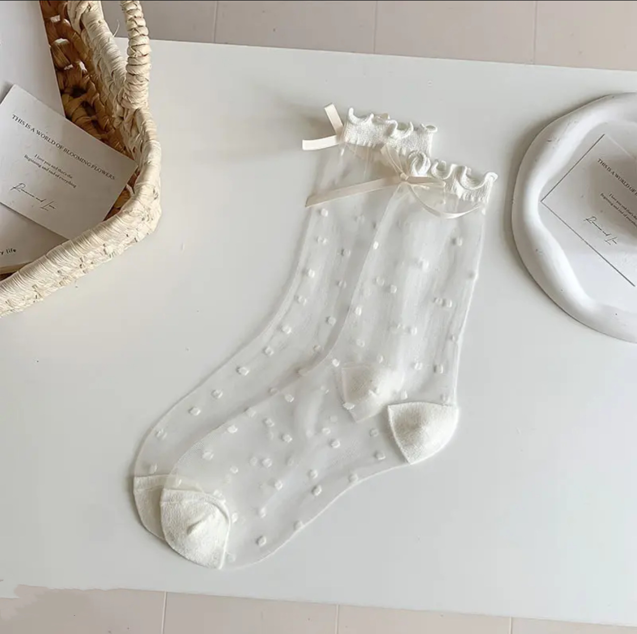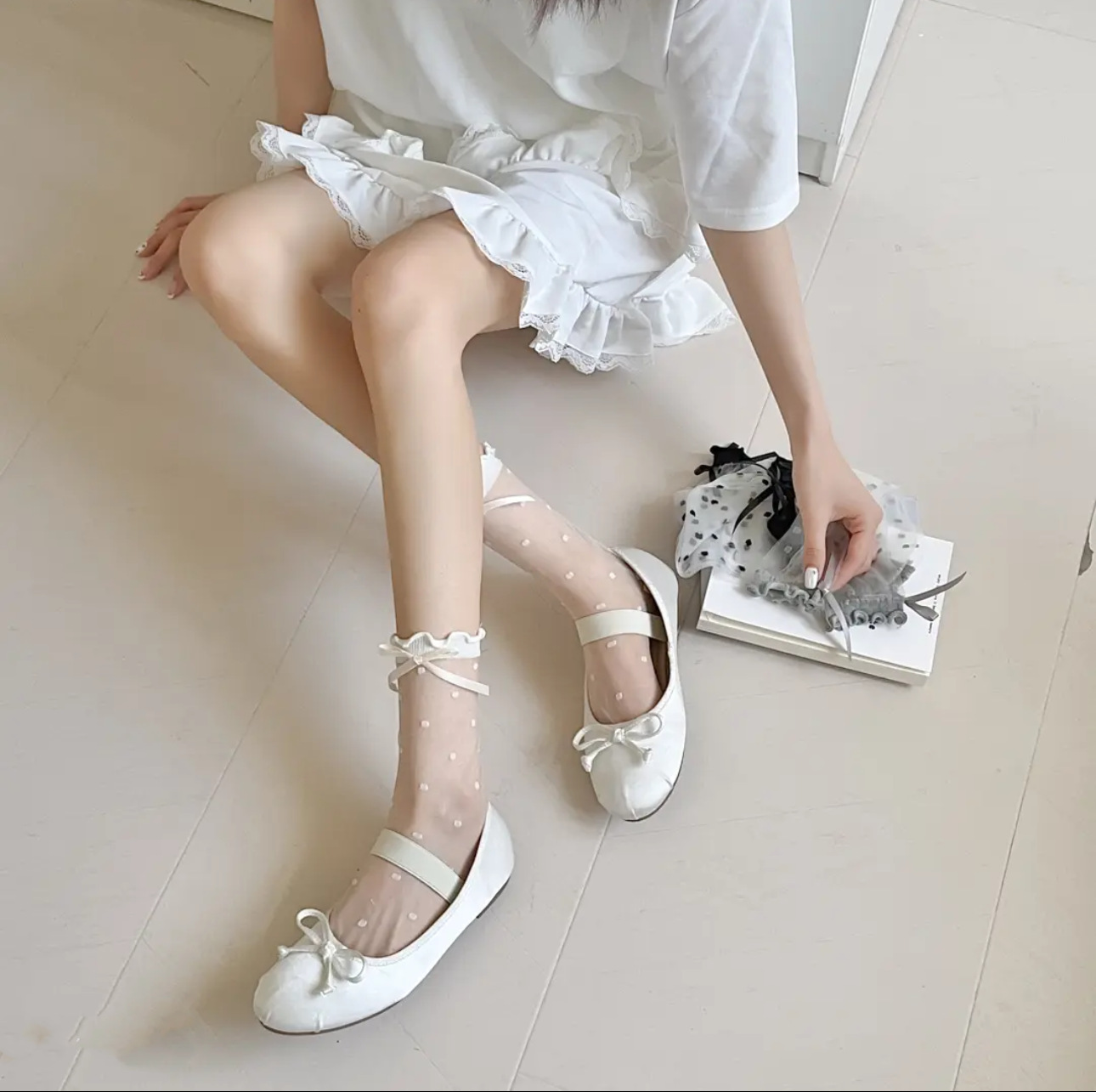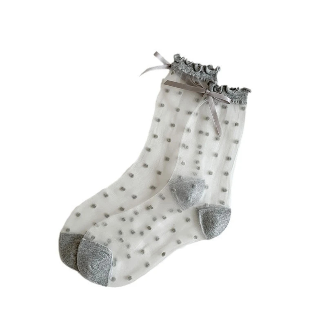 Стеклянные женские носки с бантом кружевные носки весной и летом тонкие прозрачные чулки