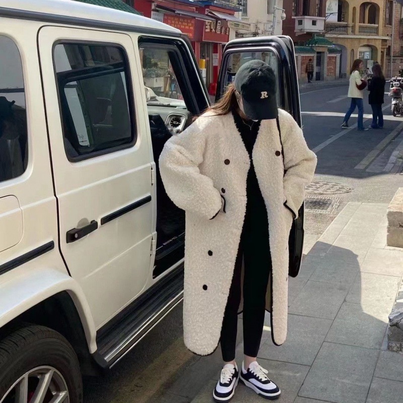 Xiao Xiangfeng ветровка куртка женская осень-зима овечья овечья шерсть корейская версия длинного принта повседневное пальто кардиган