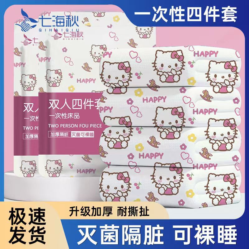 Одноразовые простыни и наволочки для деловых поездок в гостиницу, утолщенное постельное белье для вагонов-семей, дорожный набор из четырех предметов.