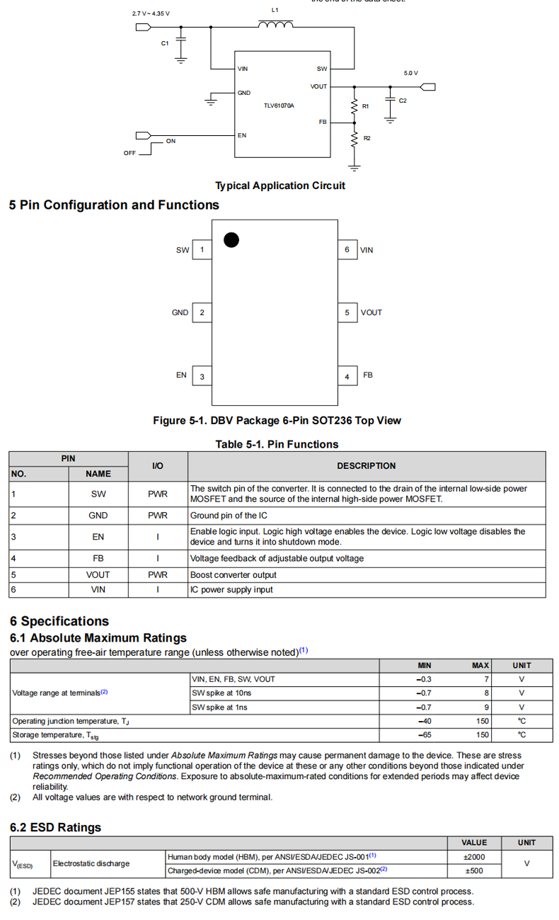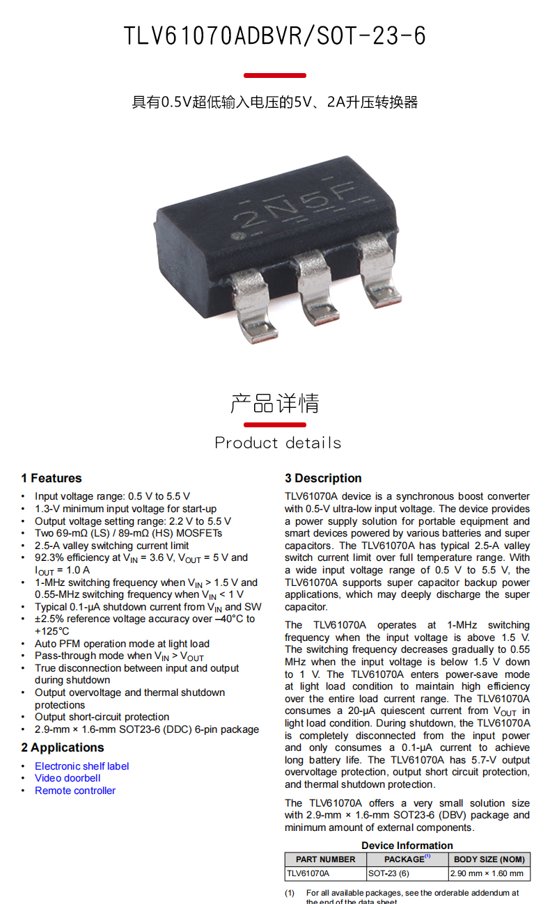 Оригинальный TLV61070ADBVR SOT-23-6 имеет повышающий преобразователь 5В с низким входным напряжением 0.5V