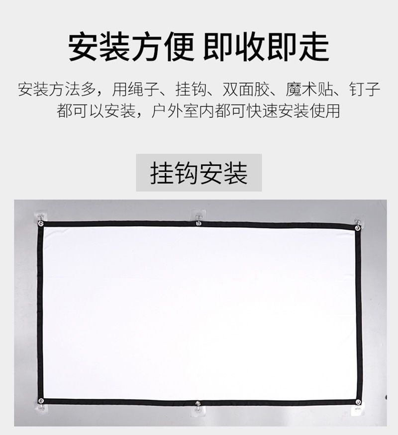 出货清单:1*投影布+ 8*粘力挂钩 (加厚款的配4根绳子)