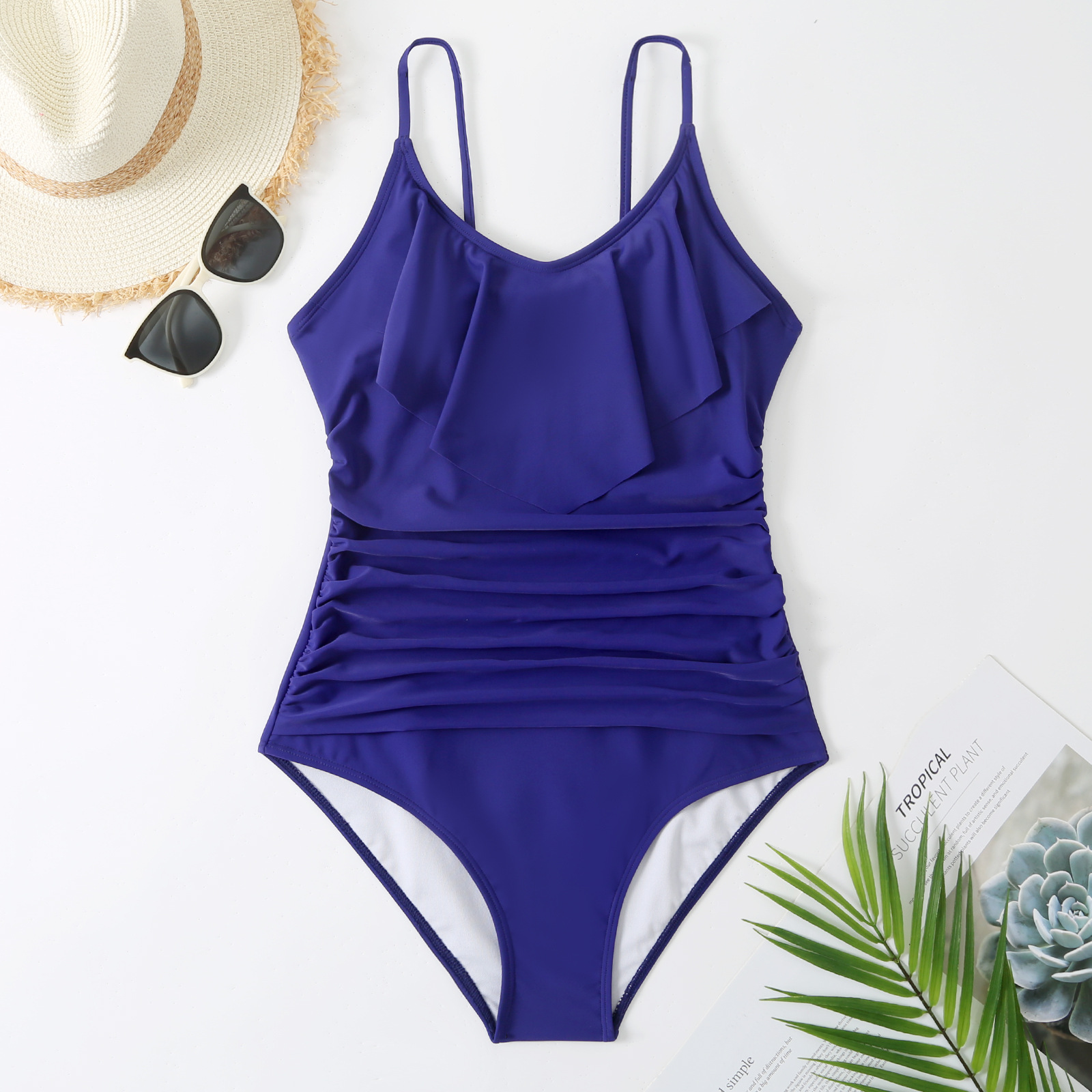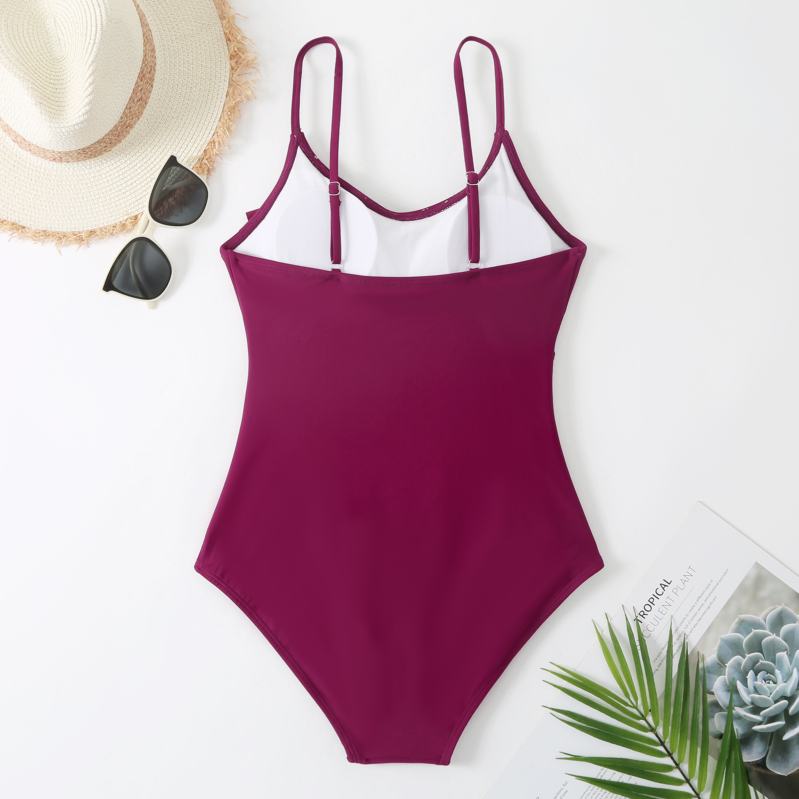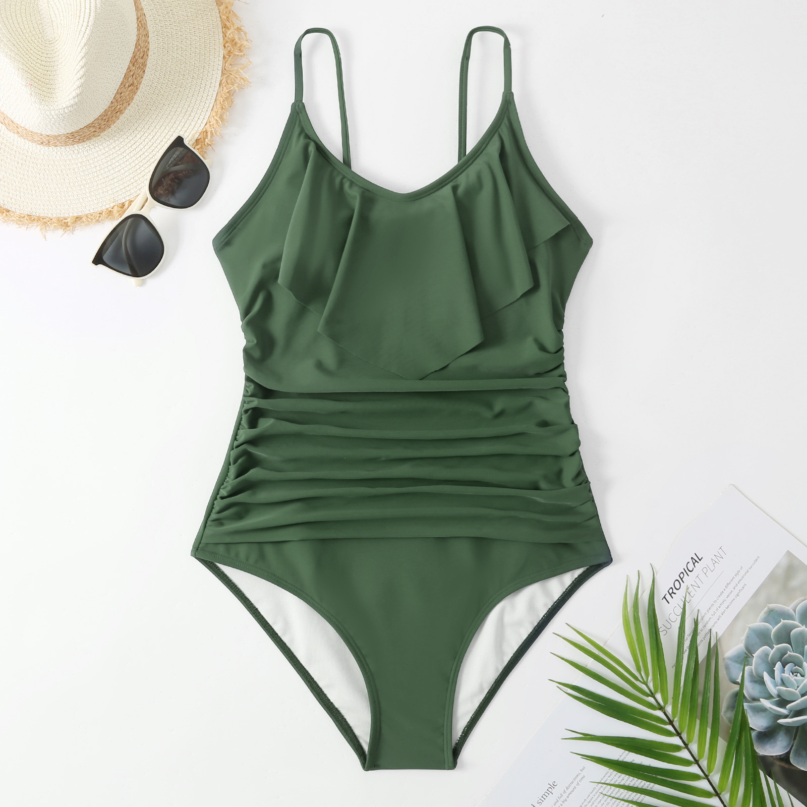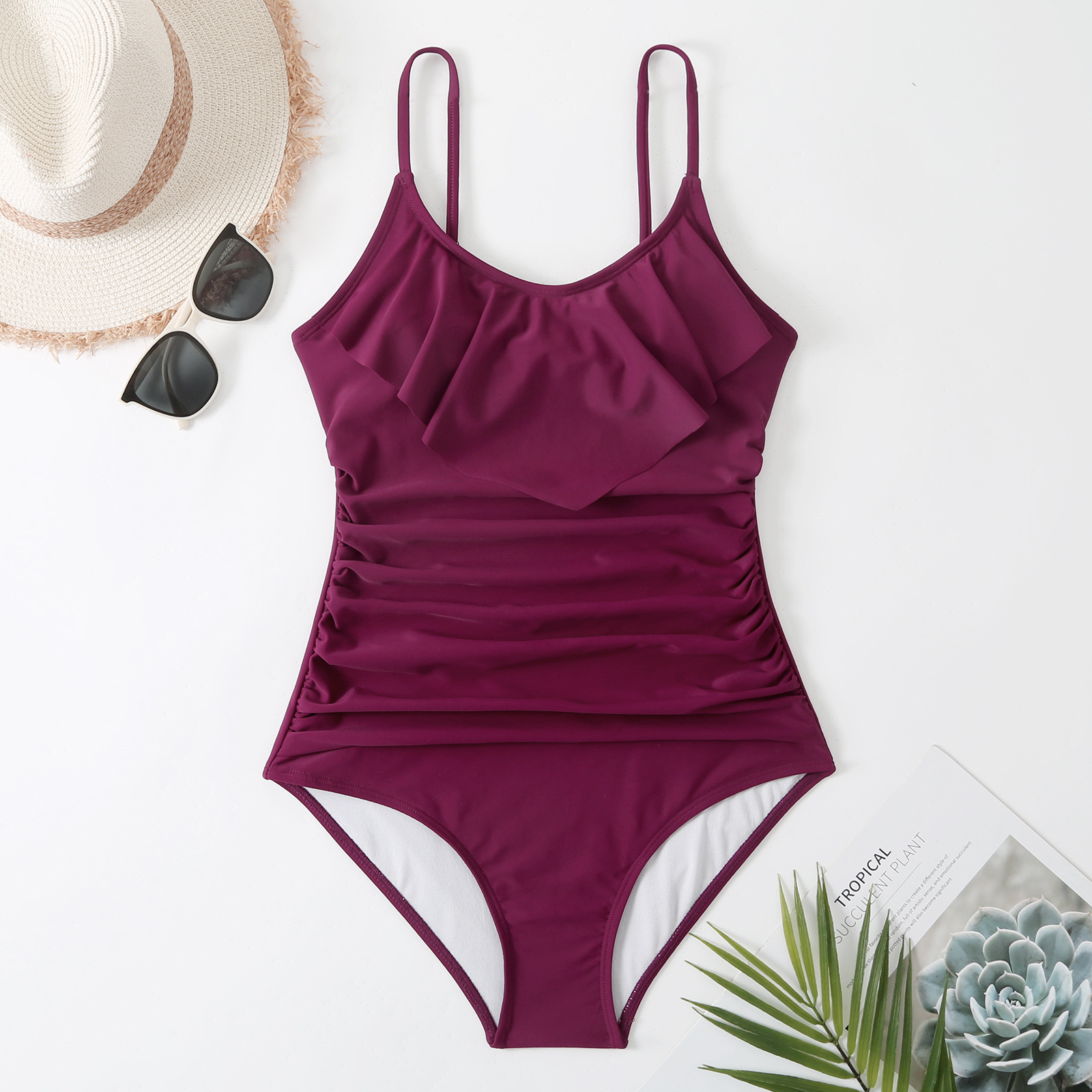 2025 новая мода европейская и американская внешняя торговля купальник с рюшами слитный красный сплошной цвет консервативный купальник спот оптом