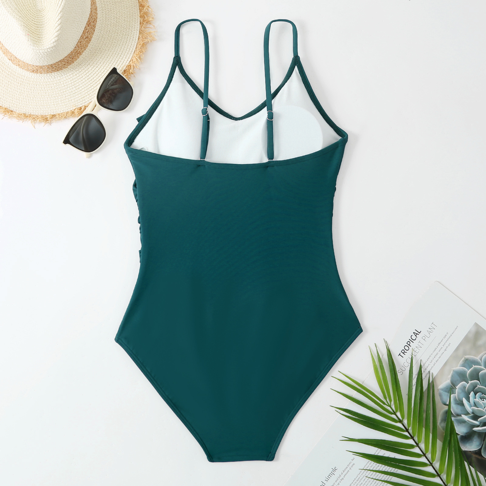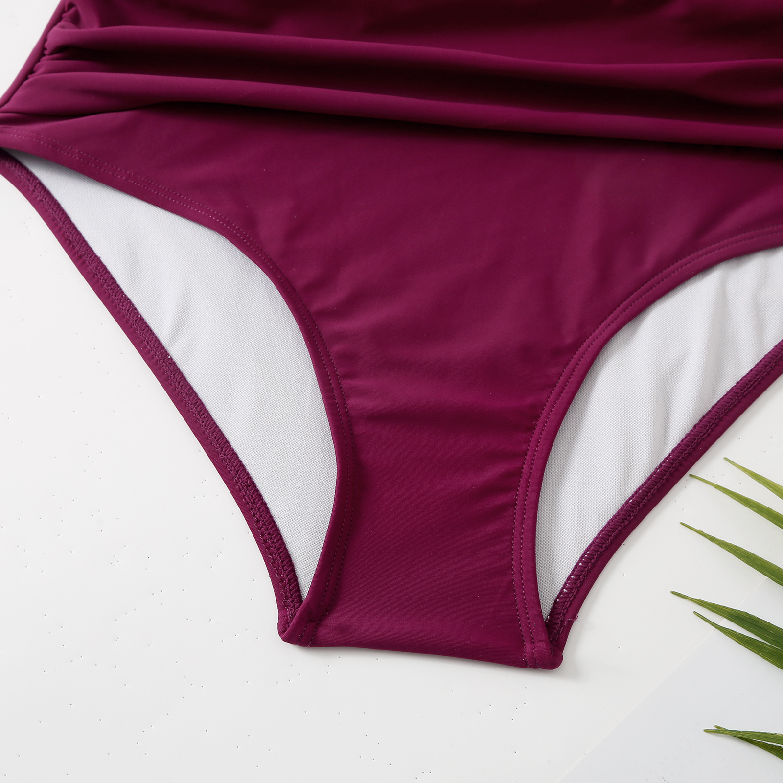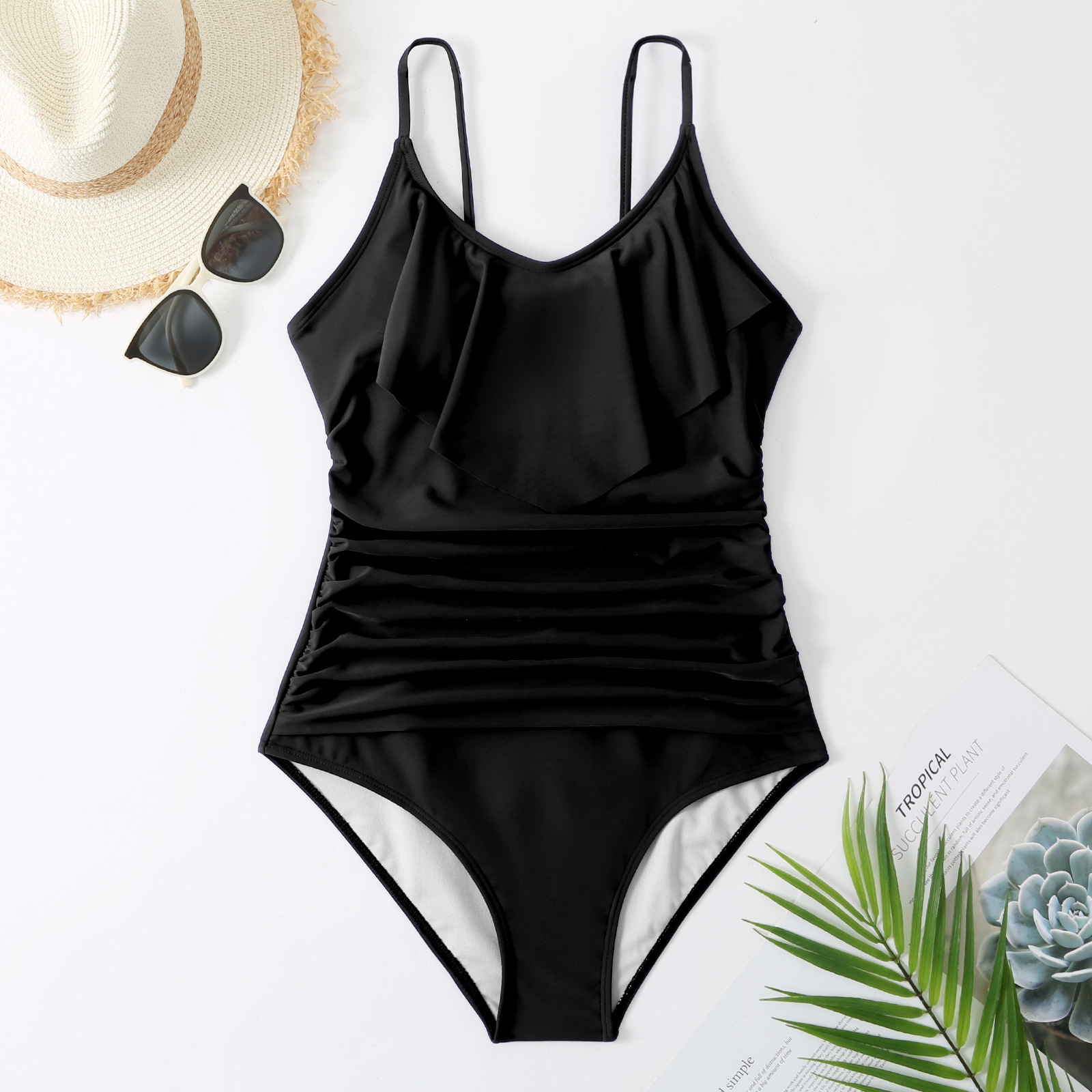 2025 новая мода европейская и американская внешняя торговля купальник с рюшами слитный красный сплошной цвет консервативный купальник спот оптом