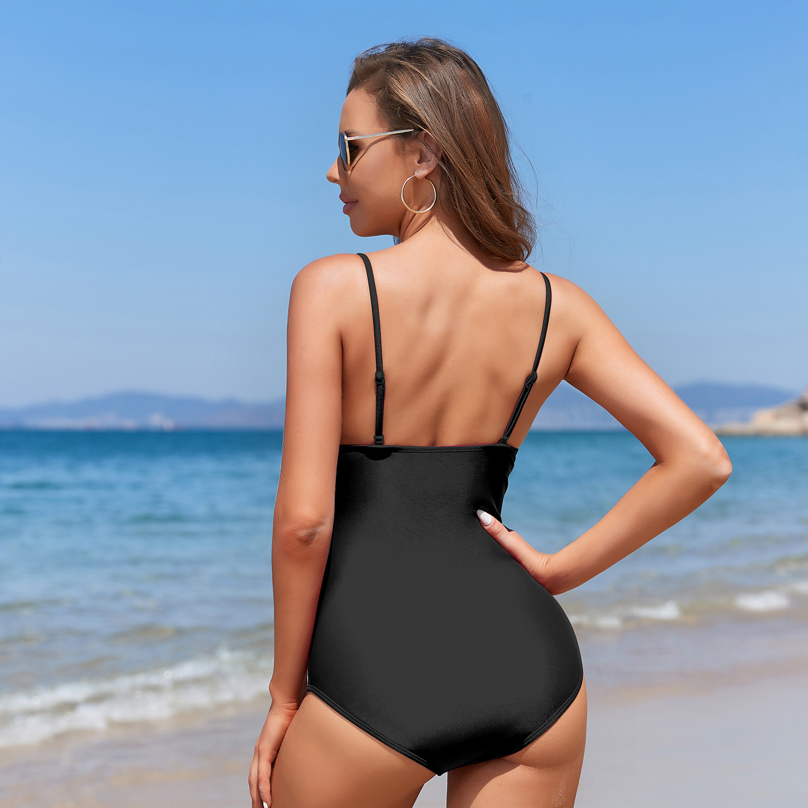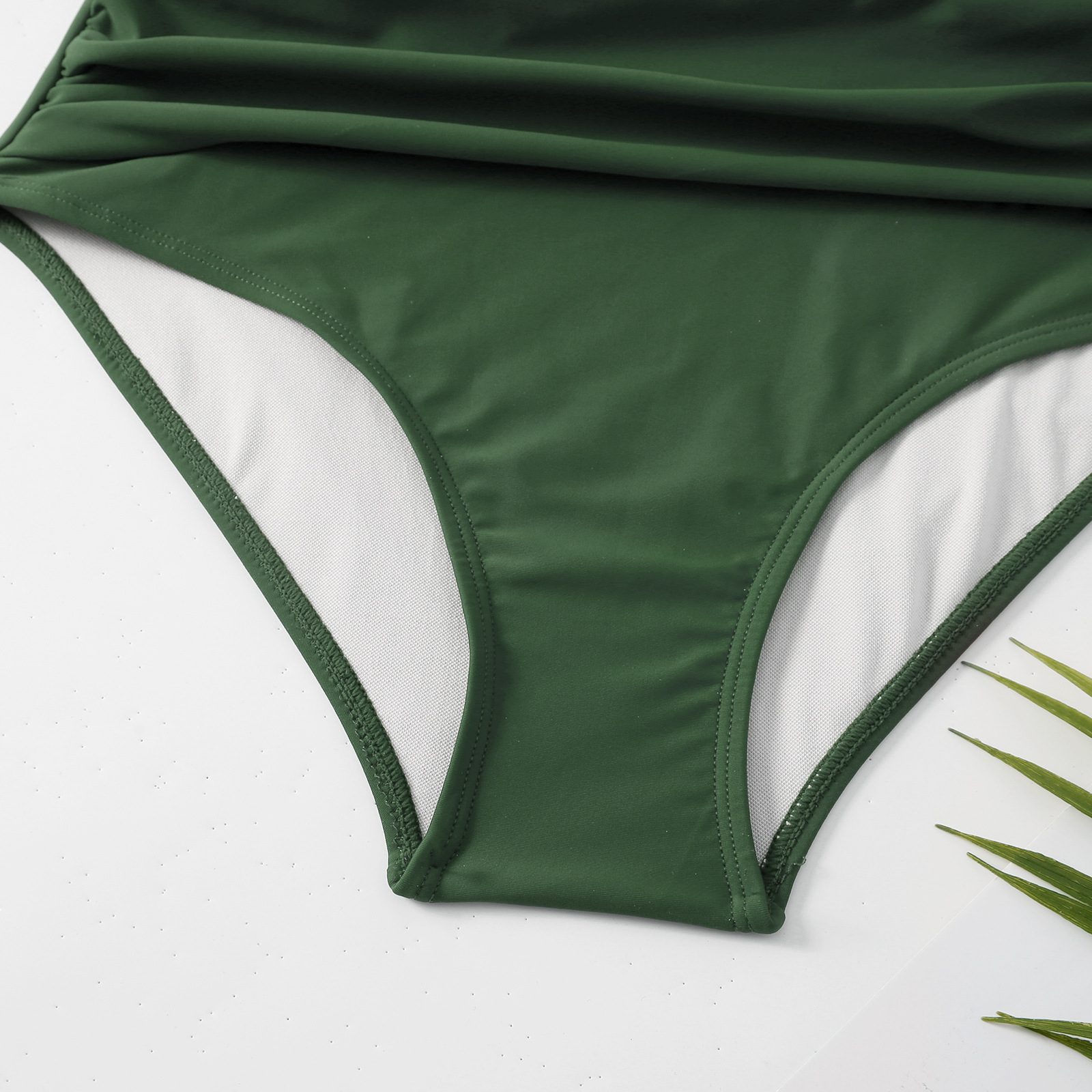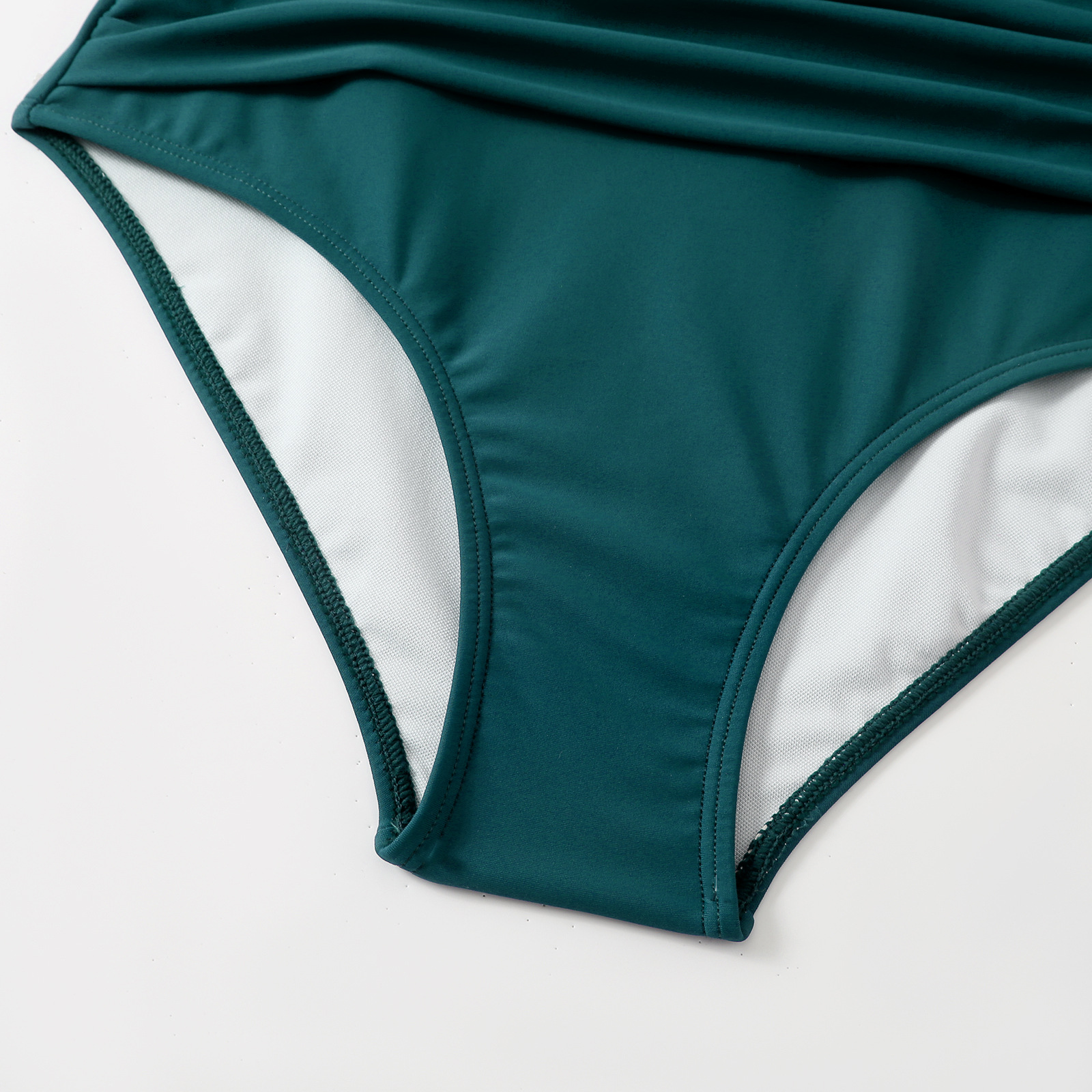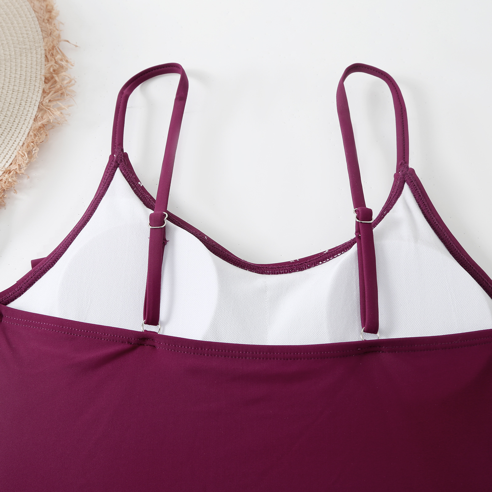 2025 новая мода европейская и американская внешняя торговля купальник с рюшами слитный красный сплошной цвет консервативный купальник спот оптом