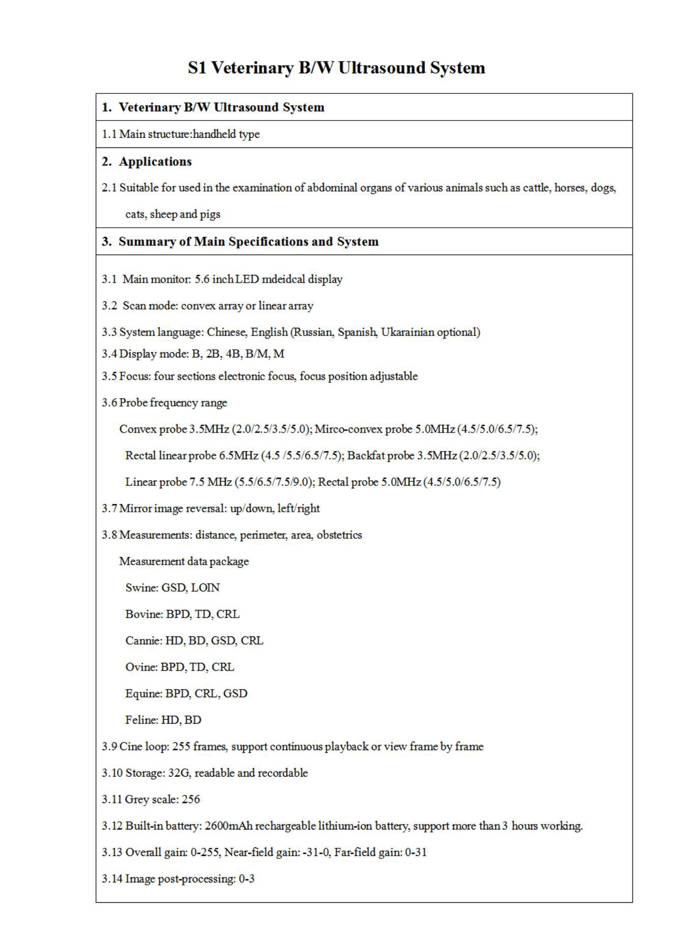 Ручной ультразвуковой аппарат B-типа для животных экспортного класса S1, основной блок; Хост + выпуклый массивный датчик; Хост + Микроконвексный датчик; Хост + ректальный зонд; Хост + линейный массивный датчик