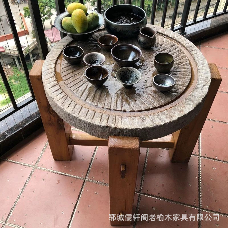 Антикварный каменный поднос для чая, чайный столик, старая каменная мельница, держатель для чая, подставка для чайного сервиза, антикварный каменный стол для мельницы, стол для шлифовки камня