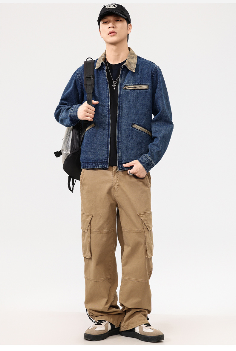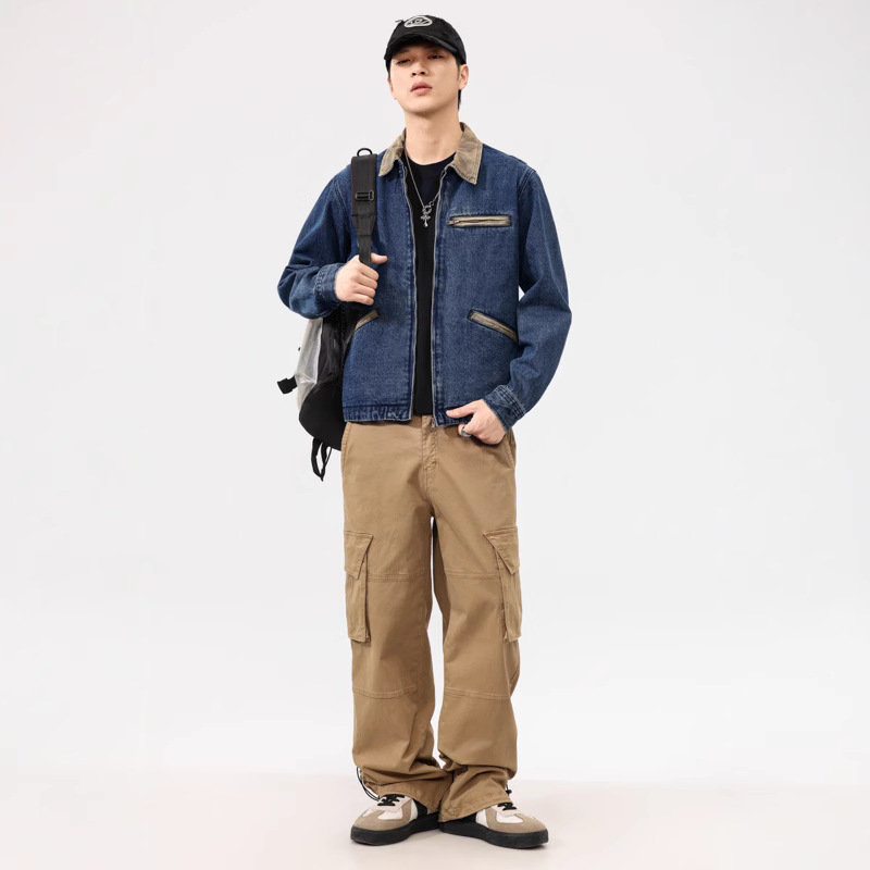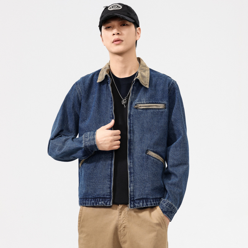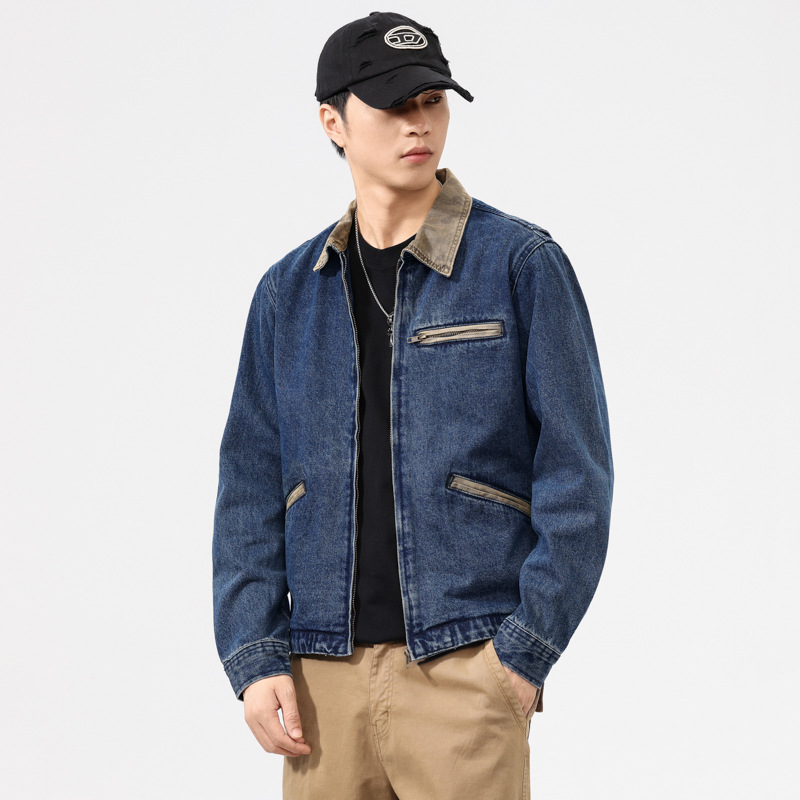 Американское тяжелое сложное древнее джинсовое пальто для мужчин весной и осенью стирается свободная одежда куртка на молнии мужская одежда