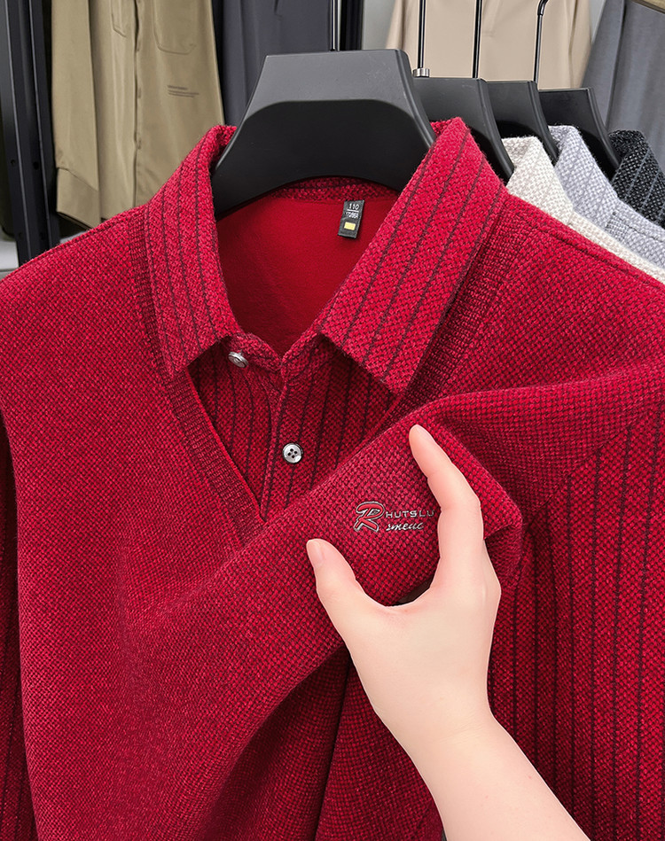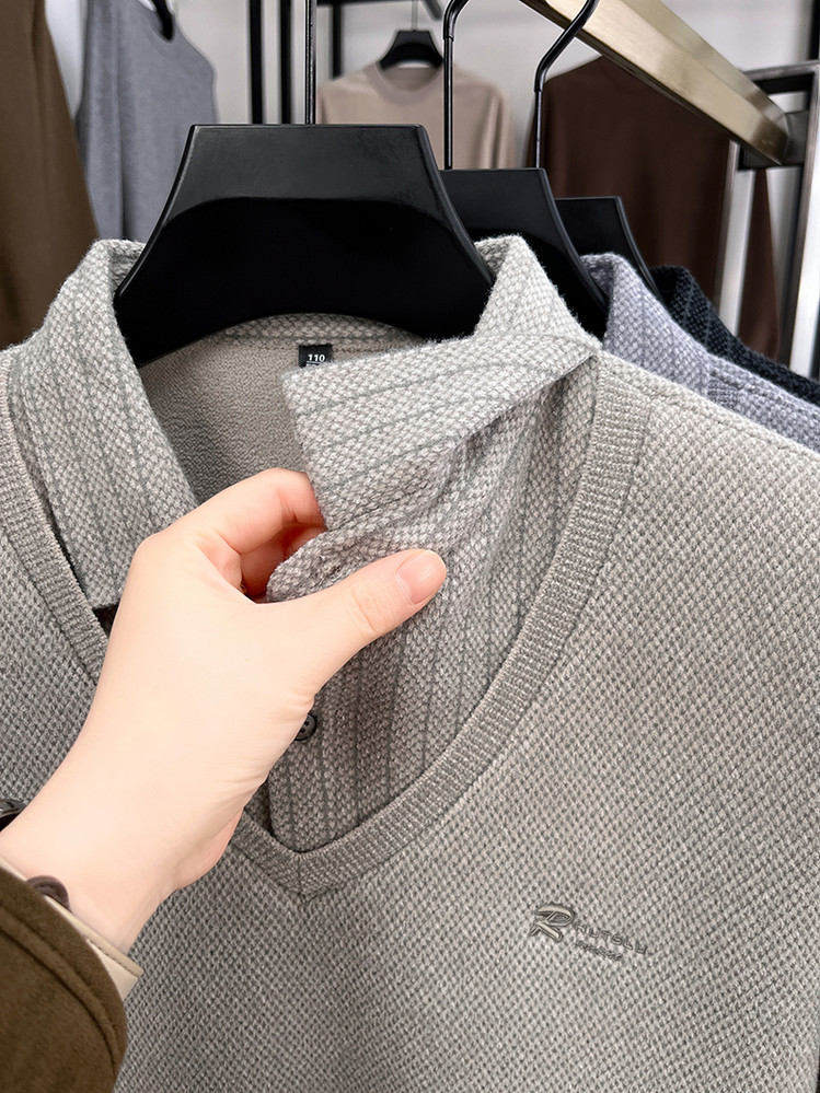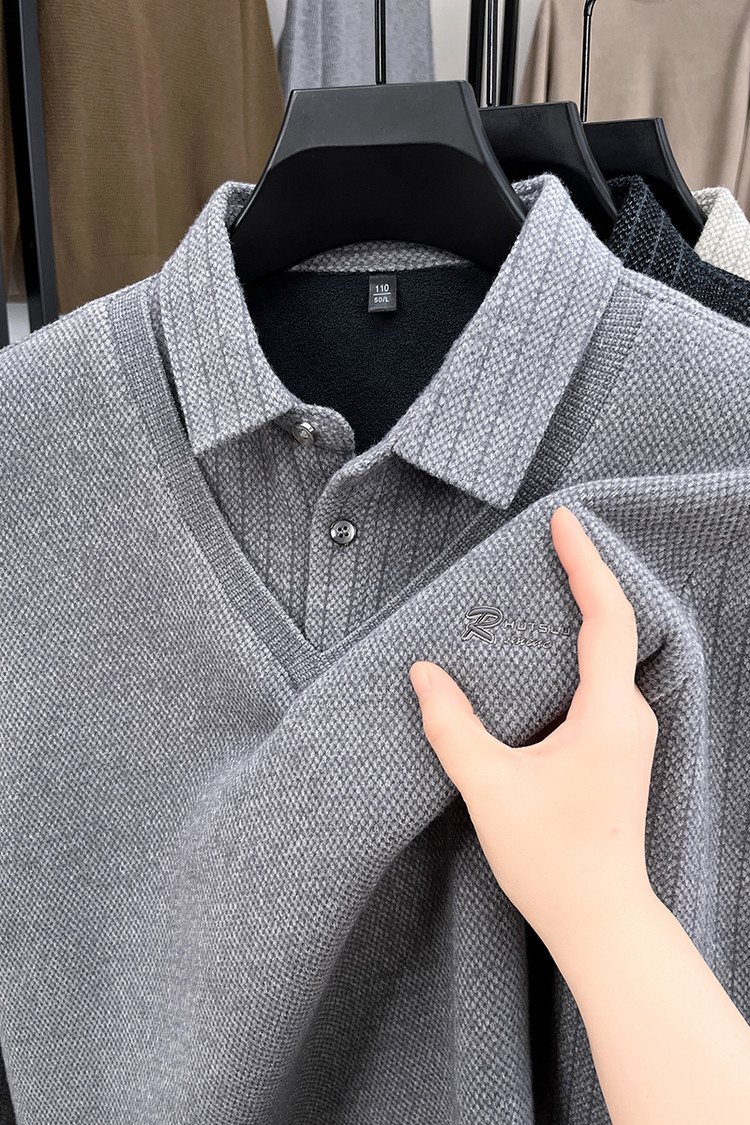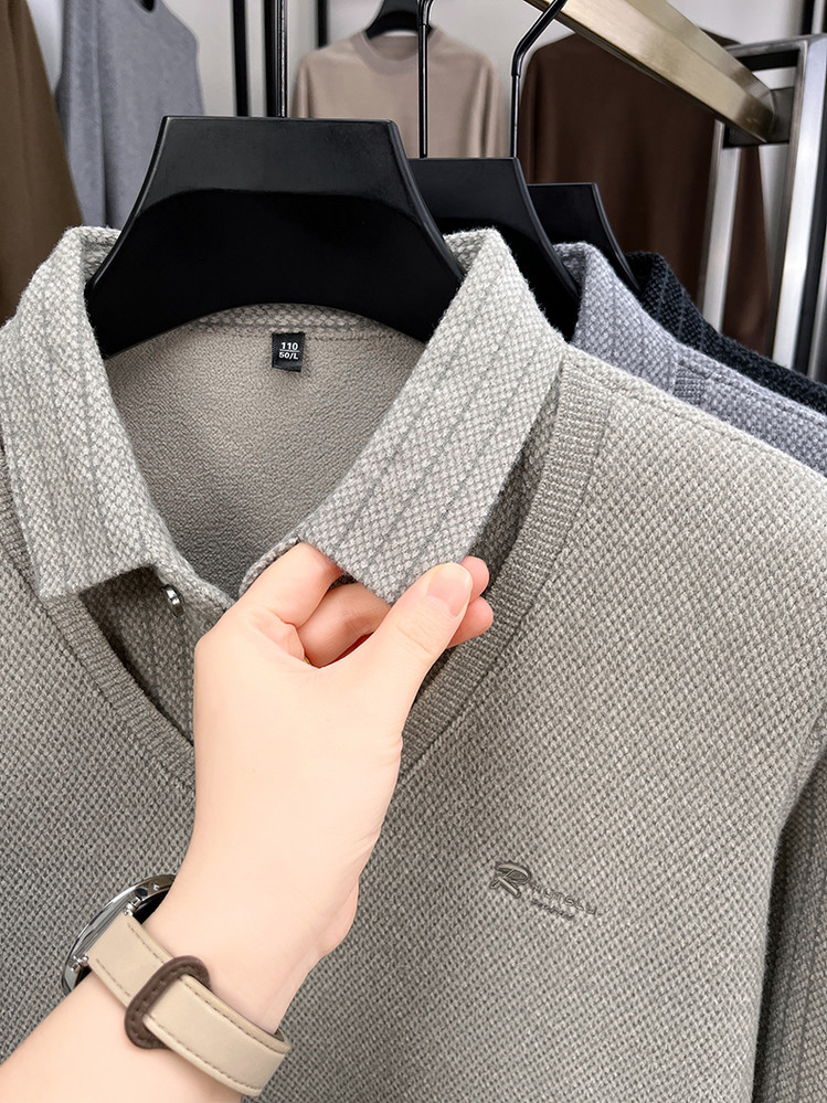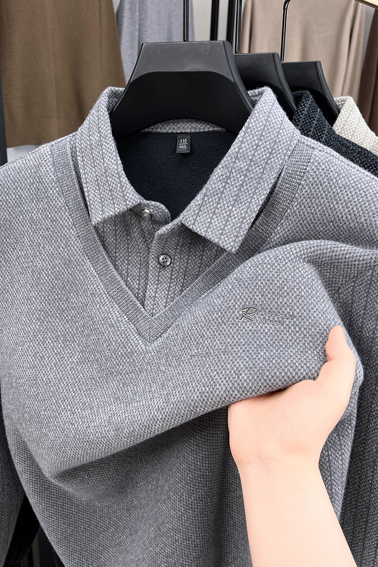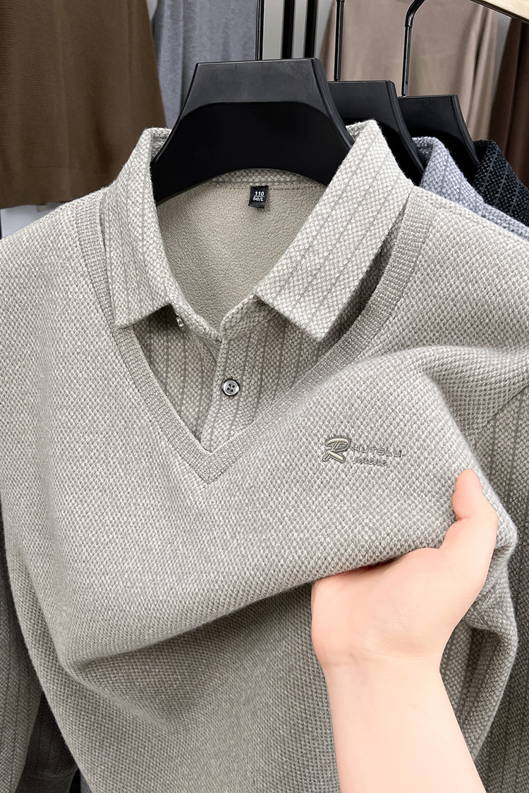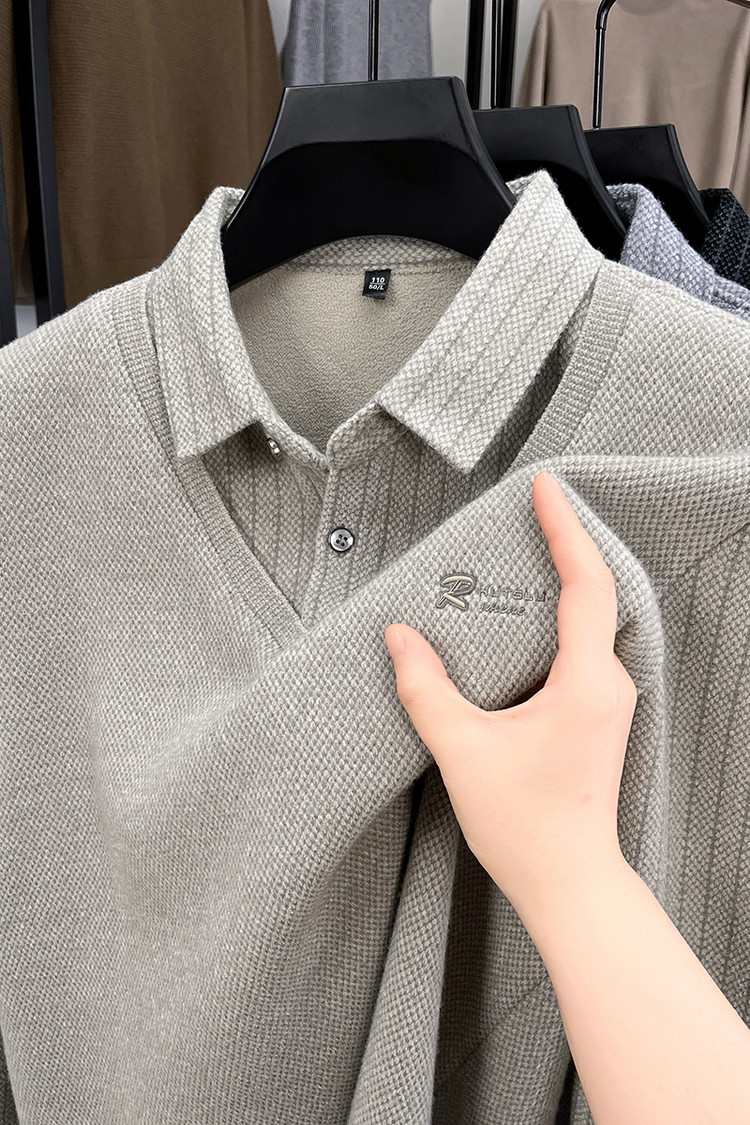2024 молодых и средних лет новый мужской вязаный плюс бархат поддельные футболки из двух частей