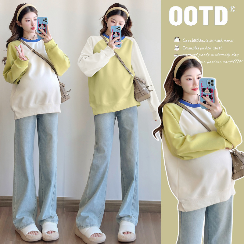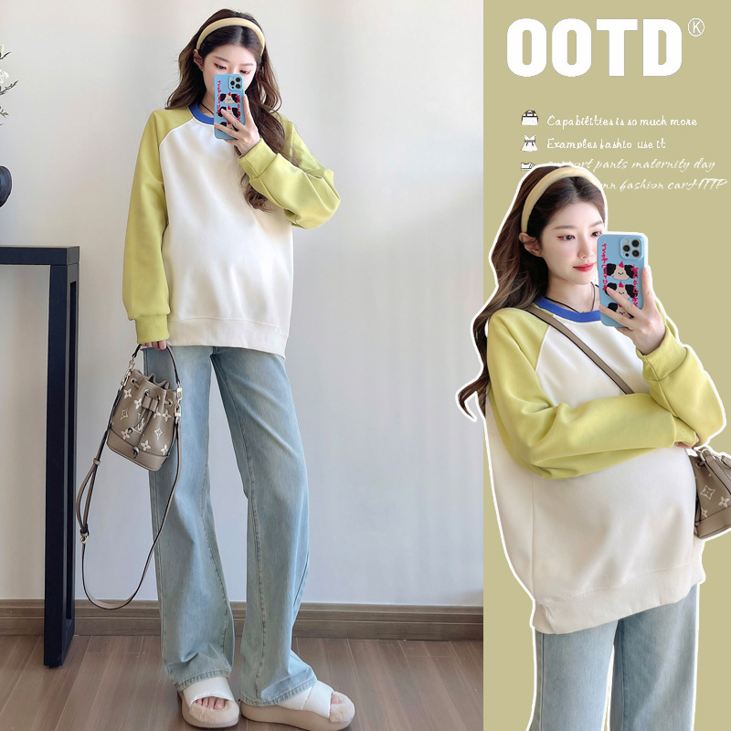 2025 новый костюм для беременных, сшитый топ весенний модный свободный большой размер с длинными рукавами беременные женщины