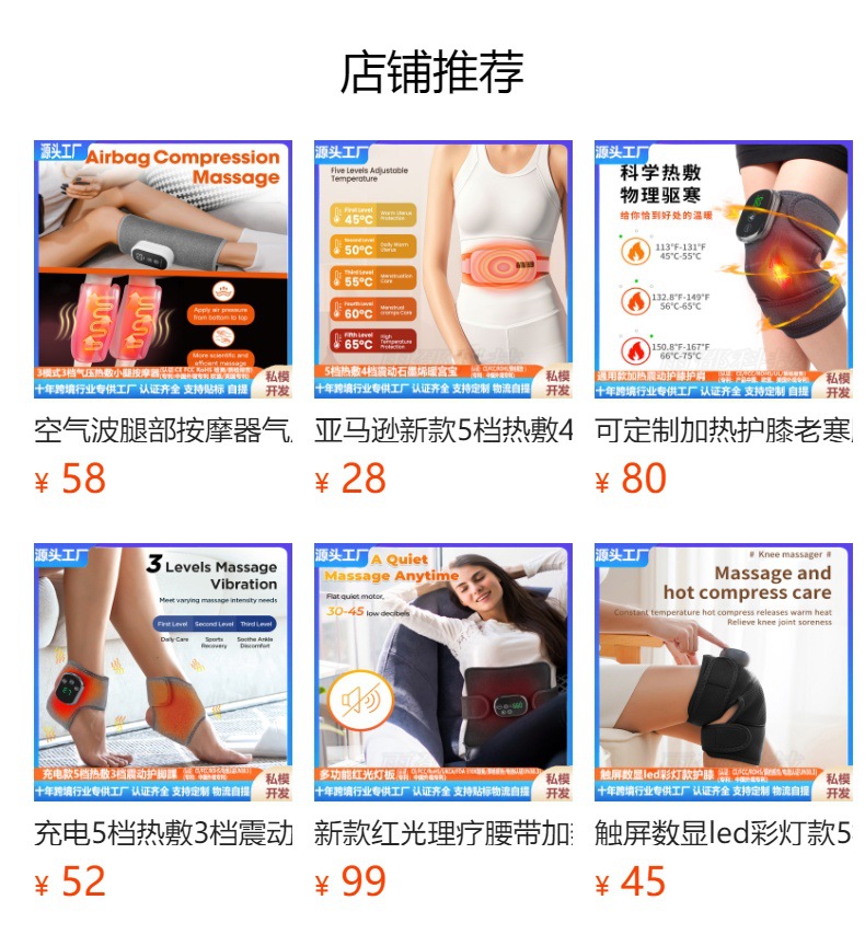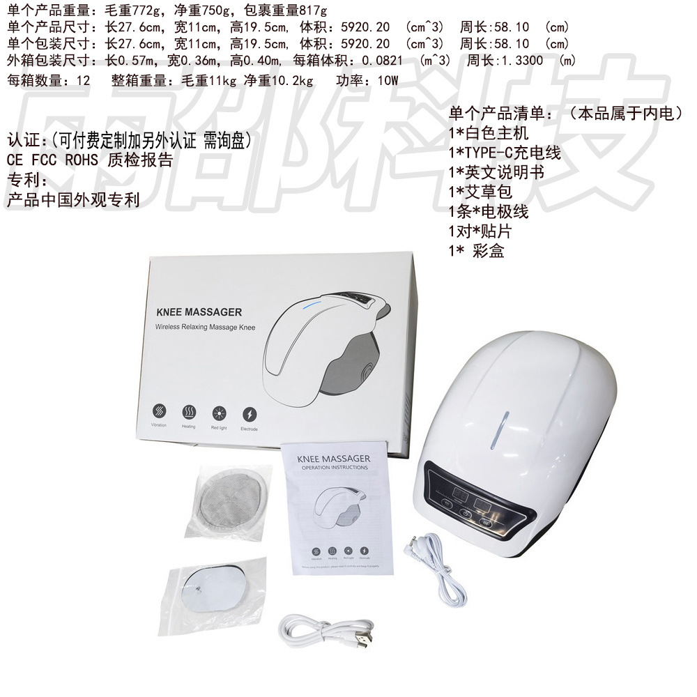 3档-≈65℃),震动按摩,全膝包裹,30分钟定时 ;电极理疗;