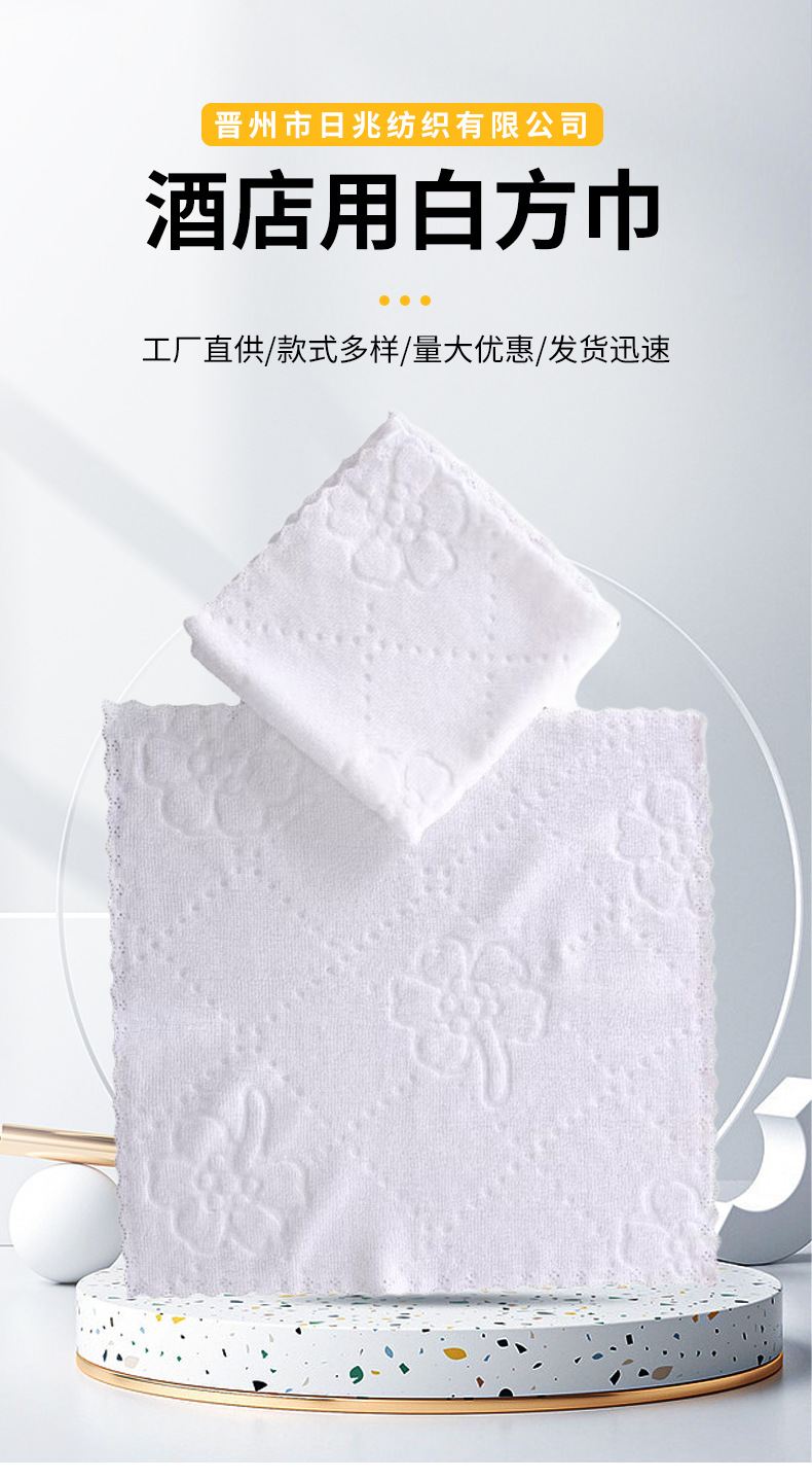 Оптовая продажа микрофибры белые квадратные полотенца для тиснения маленьких квадратных салфеток одноразовые салфетки для отеля маленькие белые полотенца