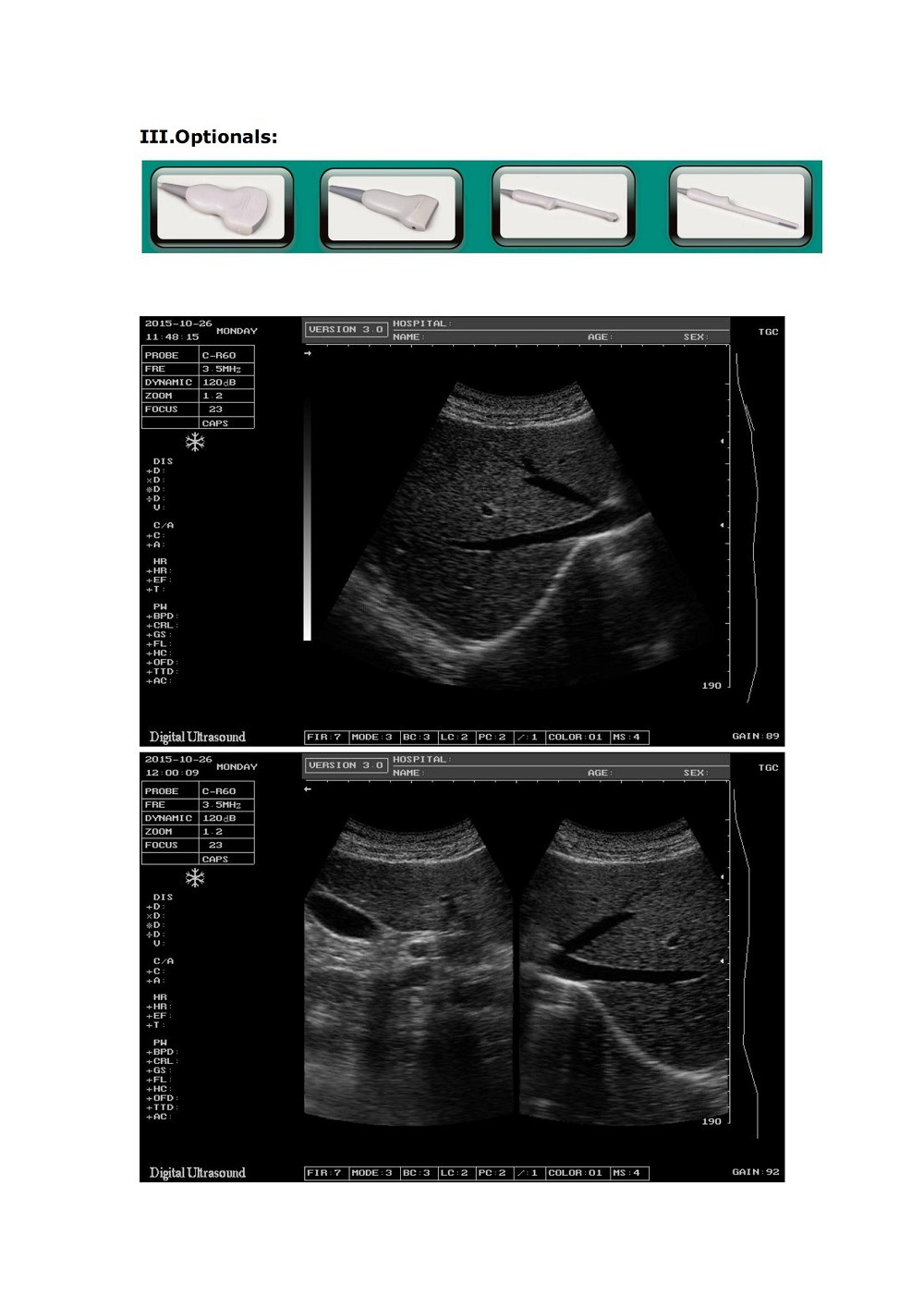 凸阵探头:用于猪/羊/大狗等中等体型的动物;