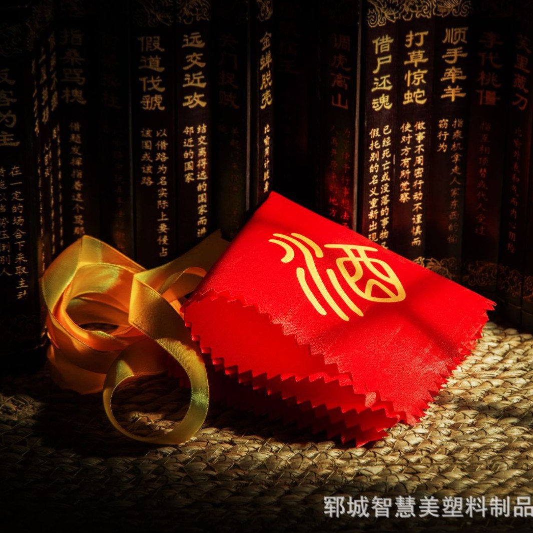 Бутылка винного цилиндра уплотнения красная зазубренный край прямая шелковая лента красная крышка утолщения красная крышка винная ткань