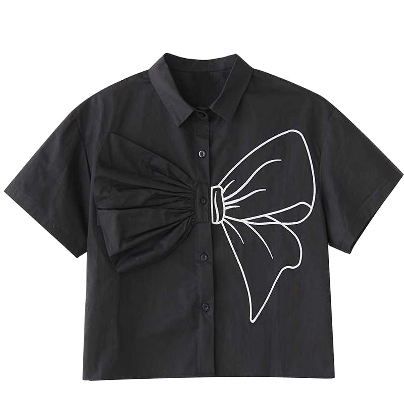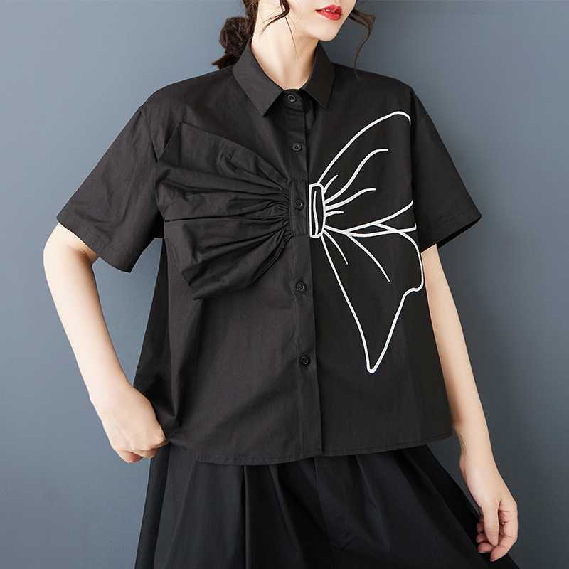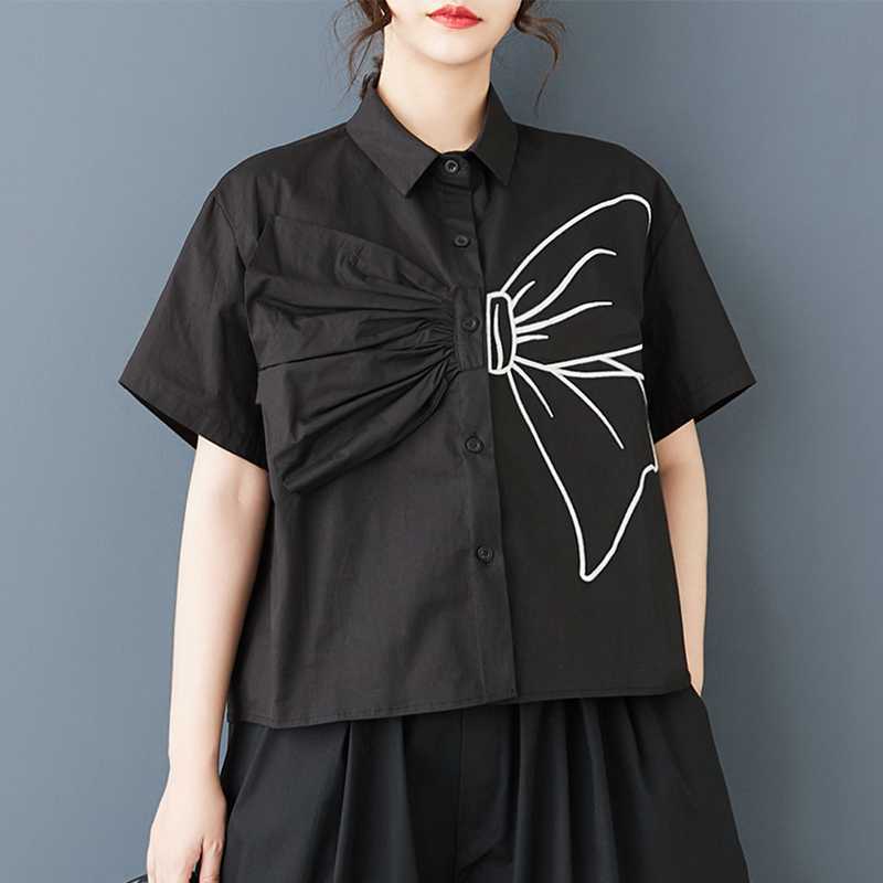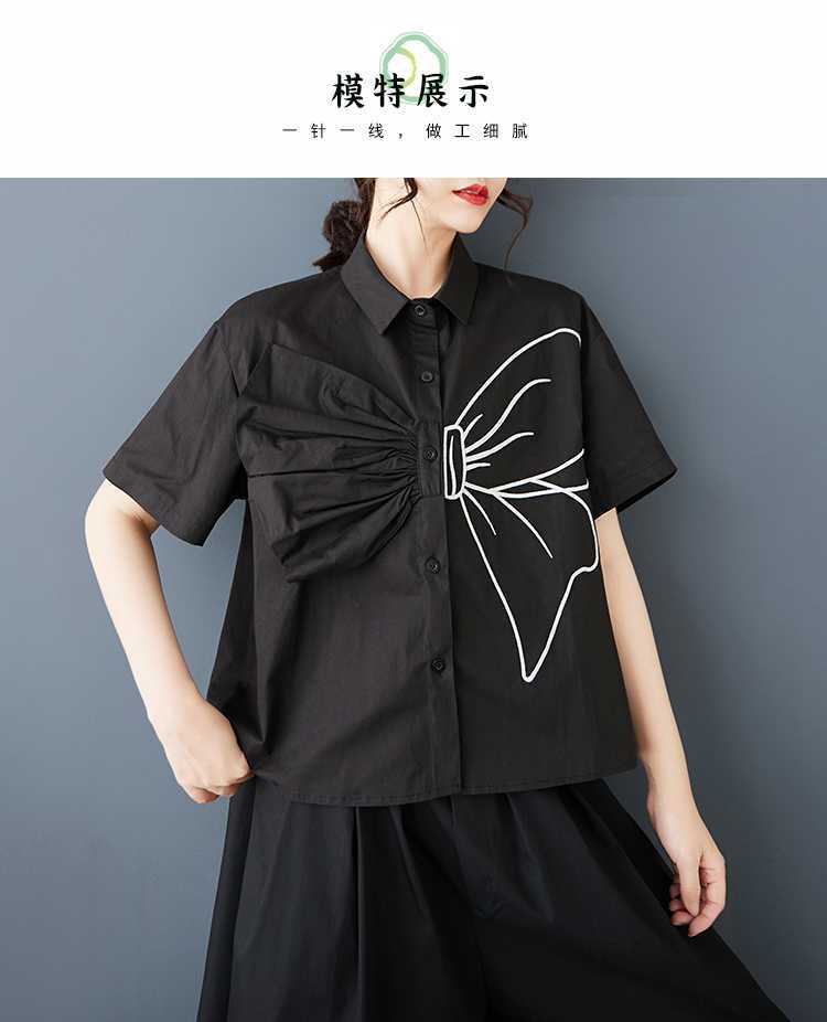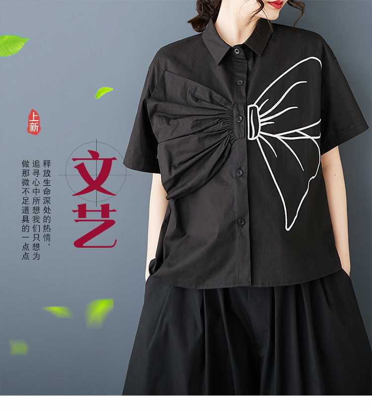 Реальная весенняя и летняя новая свободная сшивка большого размера повседневная простая пригородная сладкая рубашка с короткими рукавами