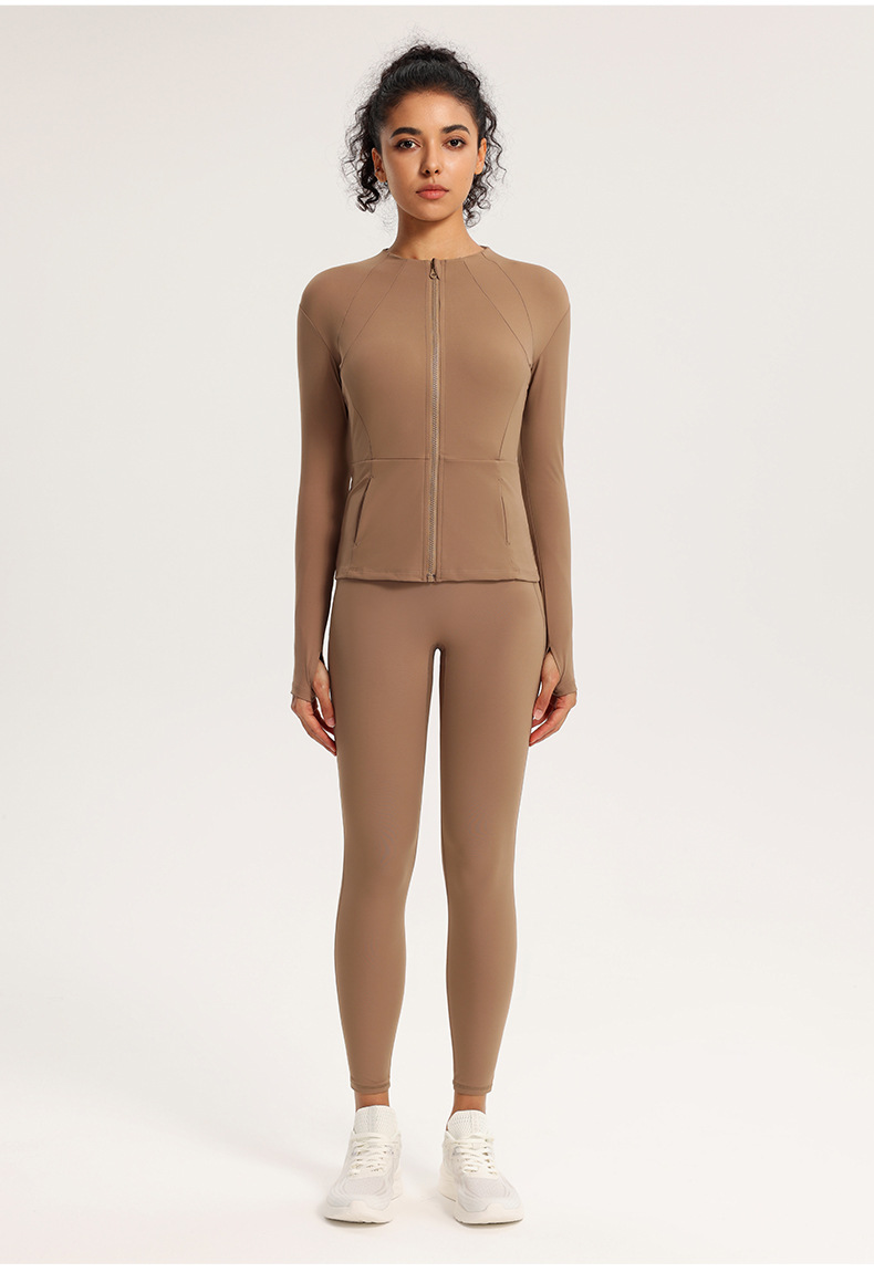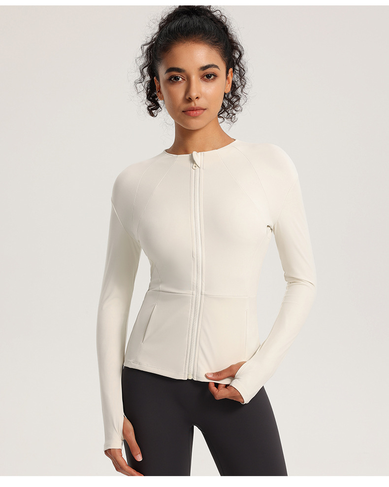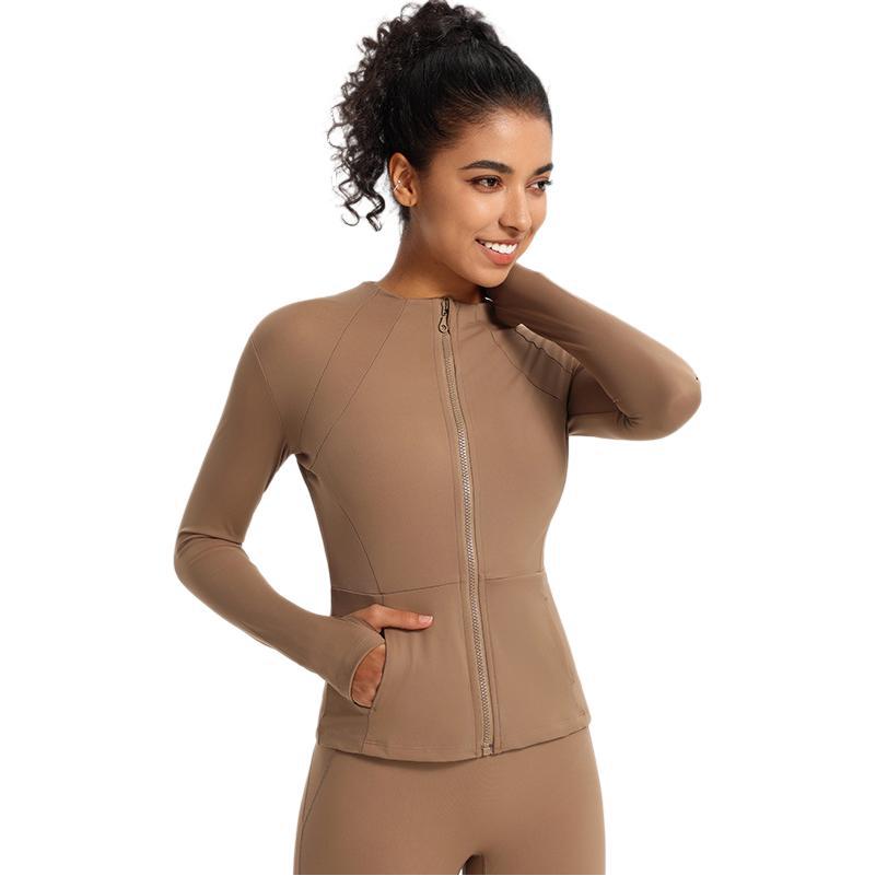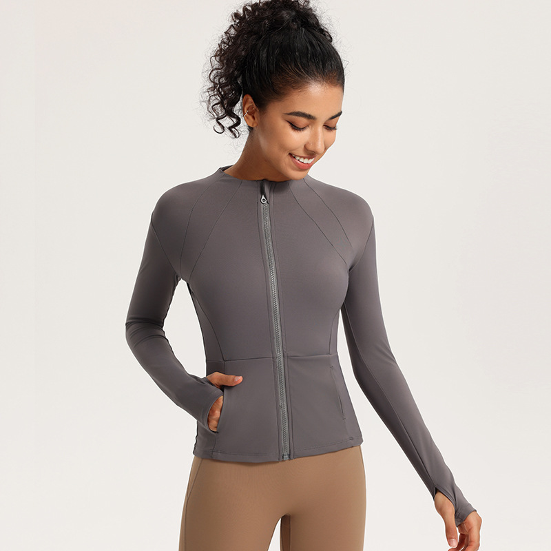 Спортивные куртки для похудения Женские длинные рукава тренажерный зал облегающей бег повседневная одежда для быстрого приготовления весной и осенью молнии костюм для йоги топ