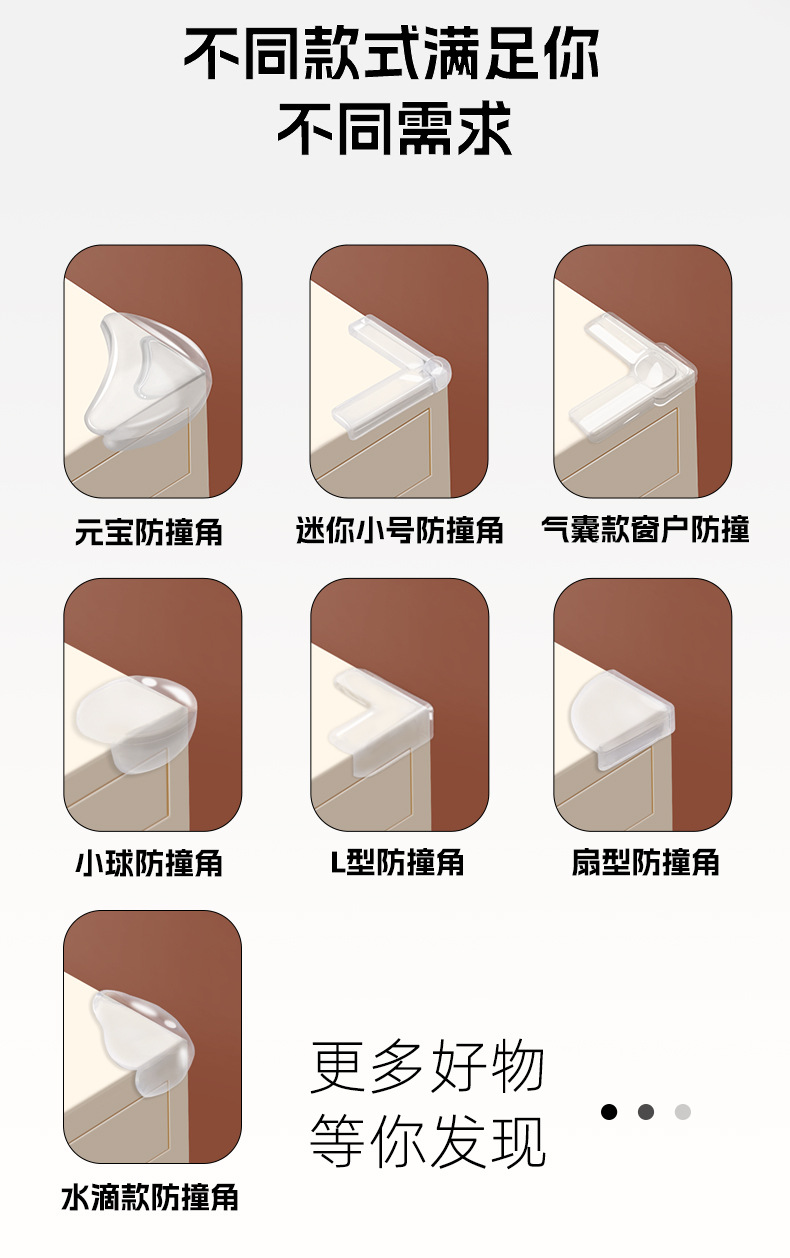 Мини-уголок для предотвращения столкновений; Уголок для предотвращения столкновений Yuanbao; Оконный уголок (тип воздушной подушки); Угол для предотвращения столкновений в стиле капель воды; Бабочка L-образный угол предотвращения столкновений; Зубчатый угол для предотвращения столкновений; L-образный угол предотвращения столкновений; Маленький шарик для предотвращения столкновений; Маленький Т-образный уголок для предотвращения столкновений; Большой Т-образный уголок для предотвращения столкновений; Оконная угловая труба; Оконный уголок большой