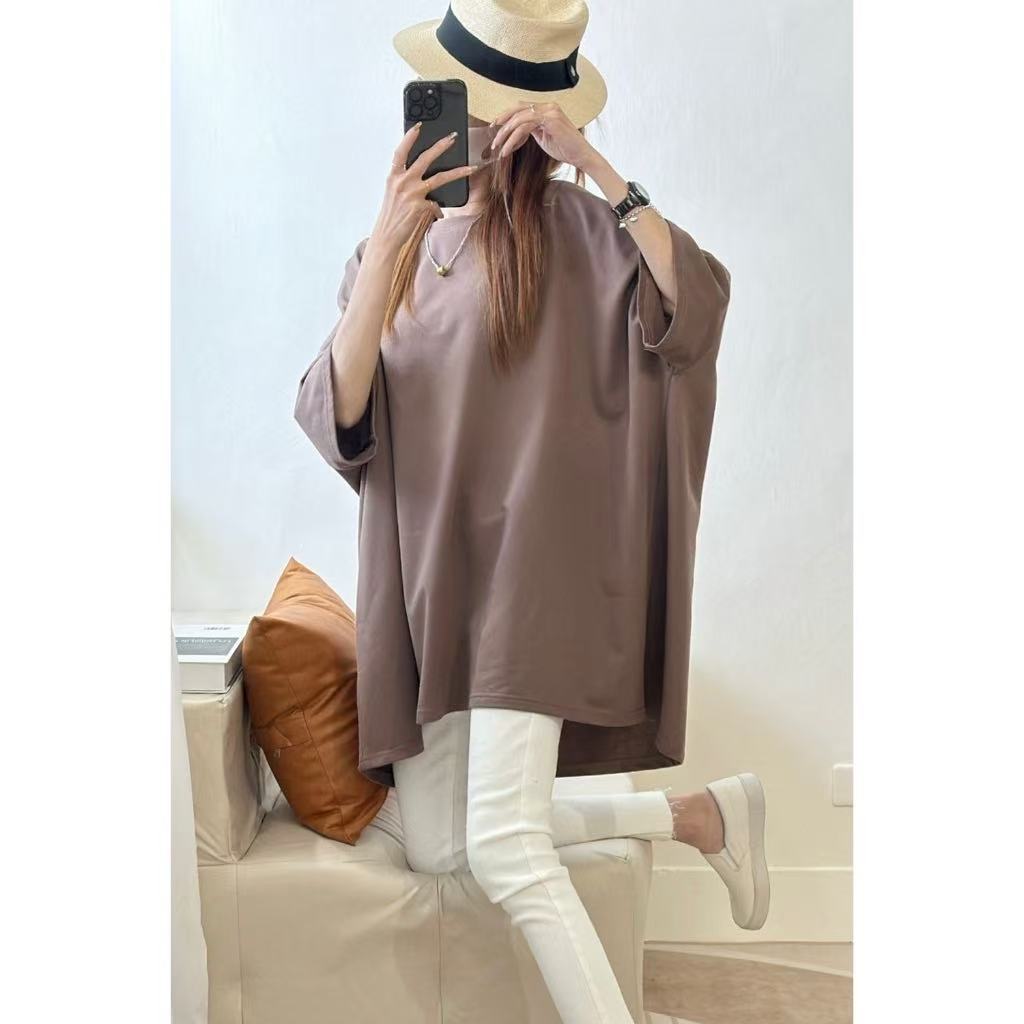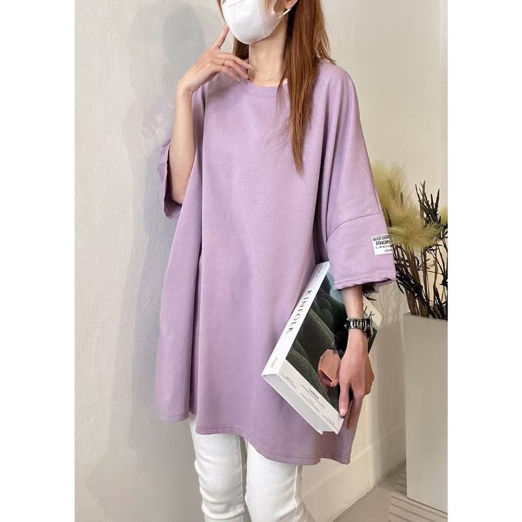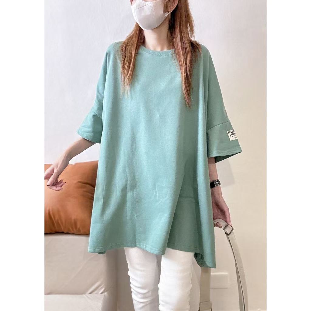 Большая версия isn средняя длинная футболка большая женская короткая рукава Лето 2025 новый допаминовый свободный европейский топ