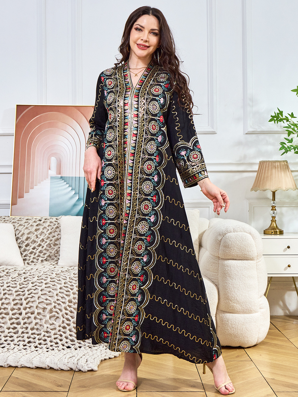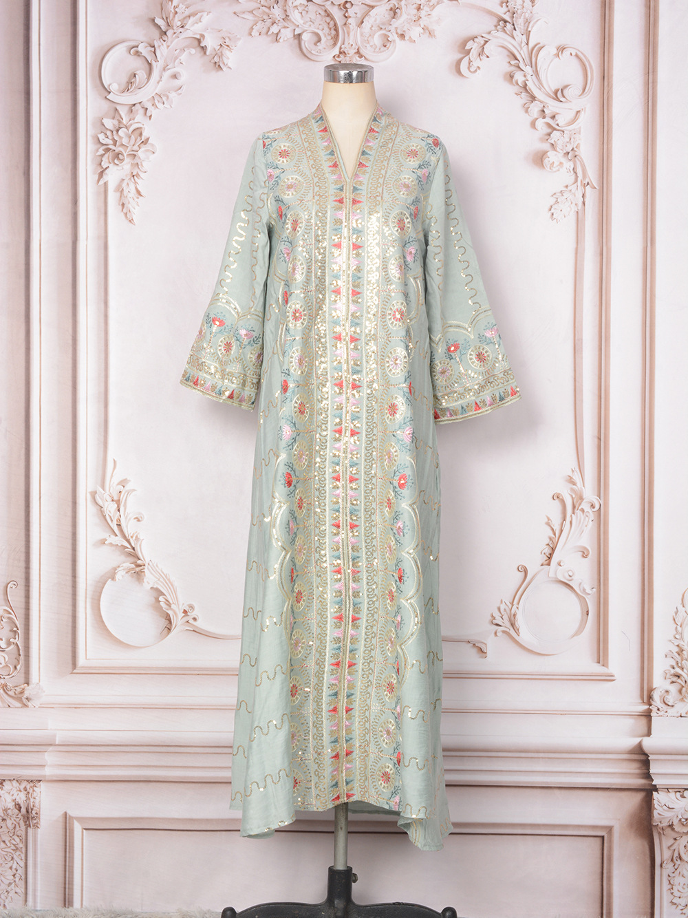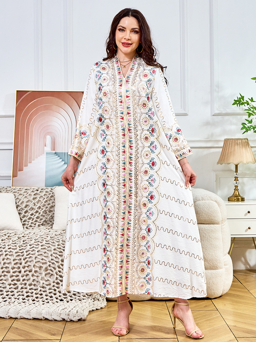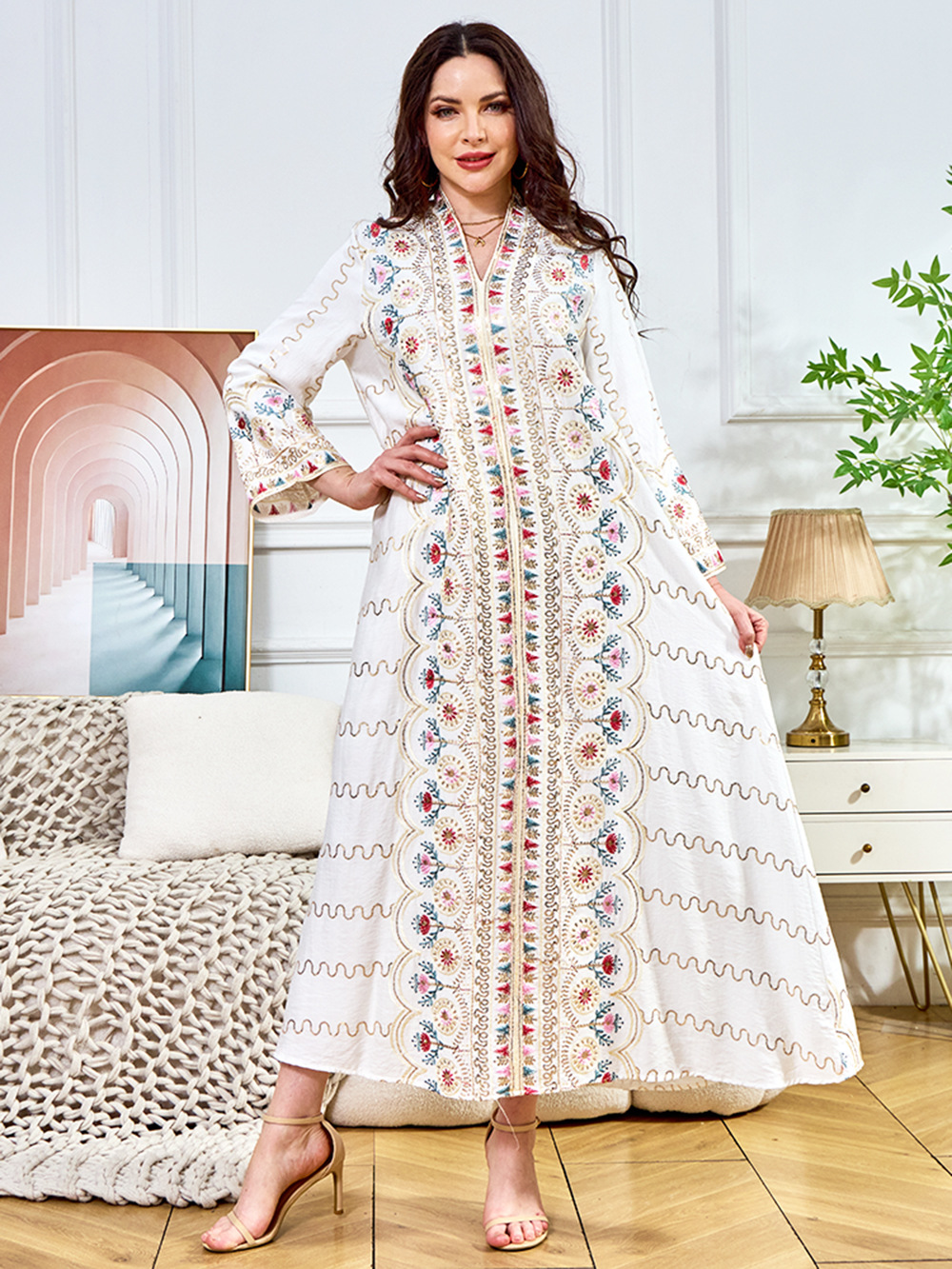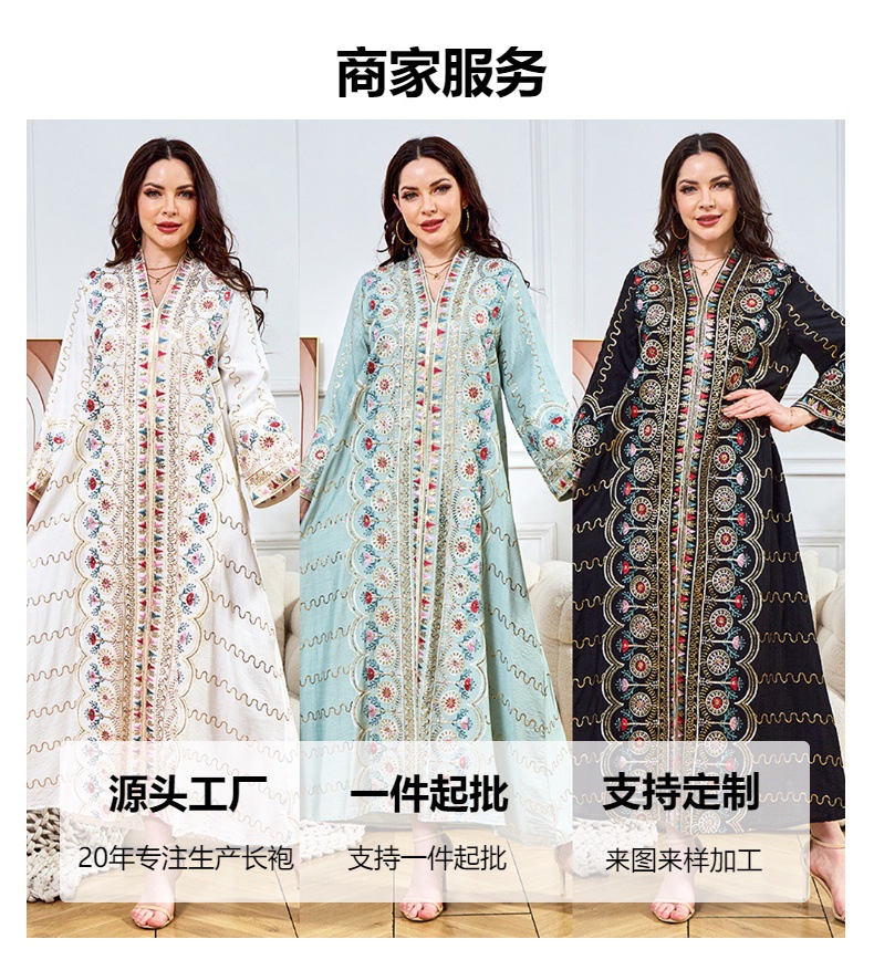 Внешняя торговля Ближневосточный мусульманский халат женское платье 2025 бисер новый V-образный вырез свободное вечернее платье Дубай платье