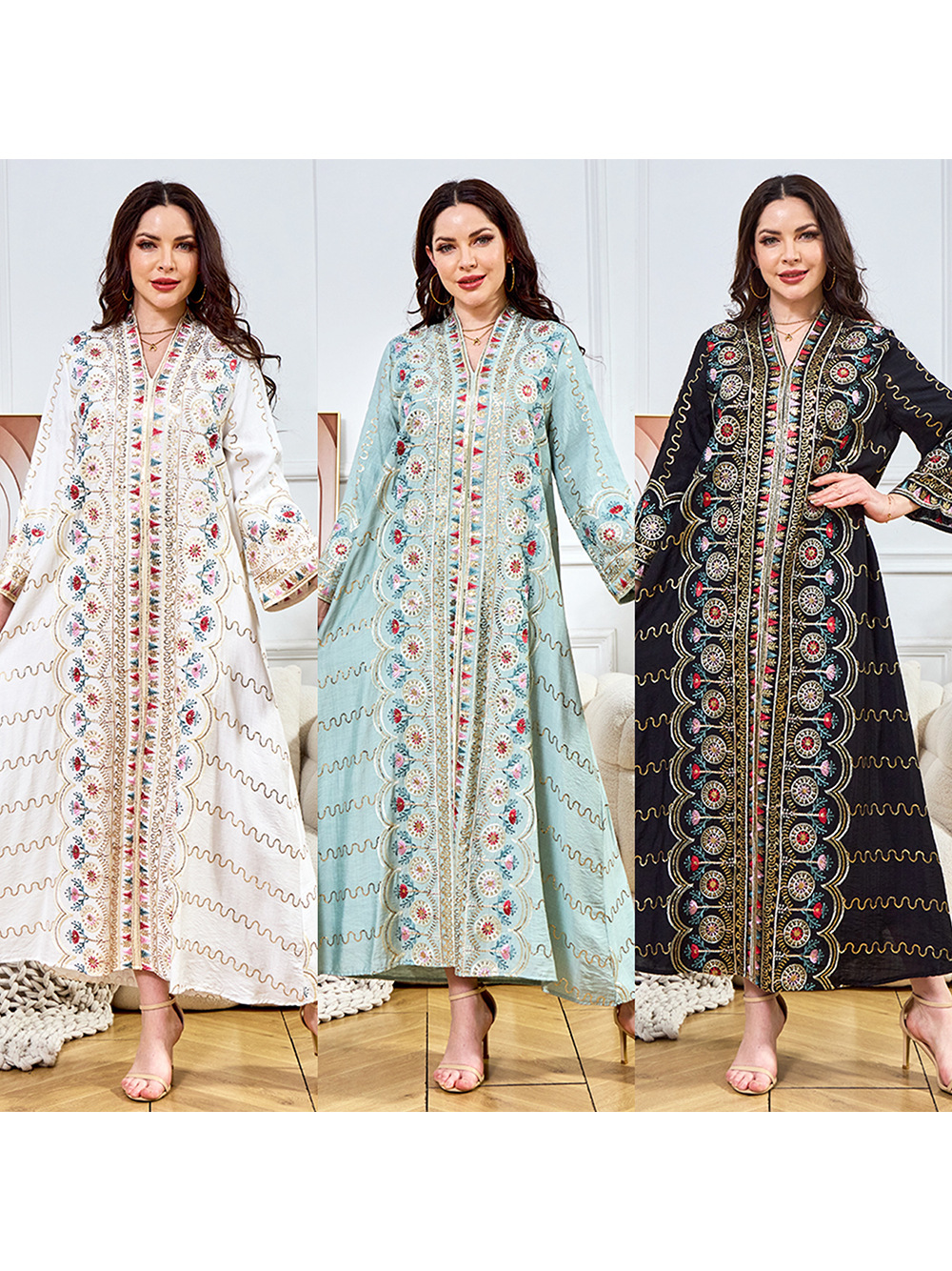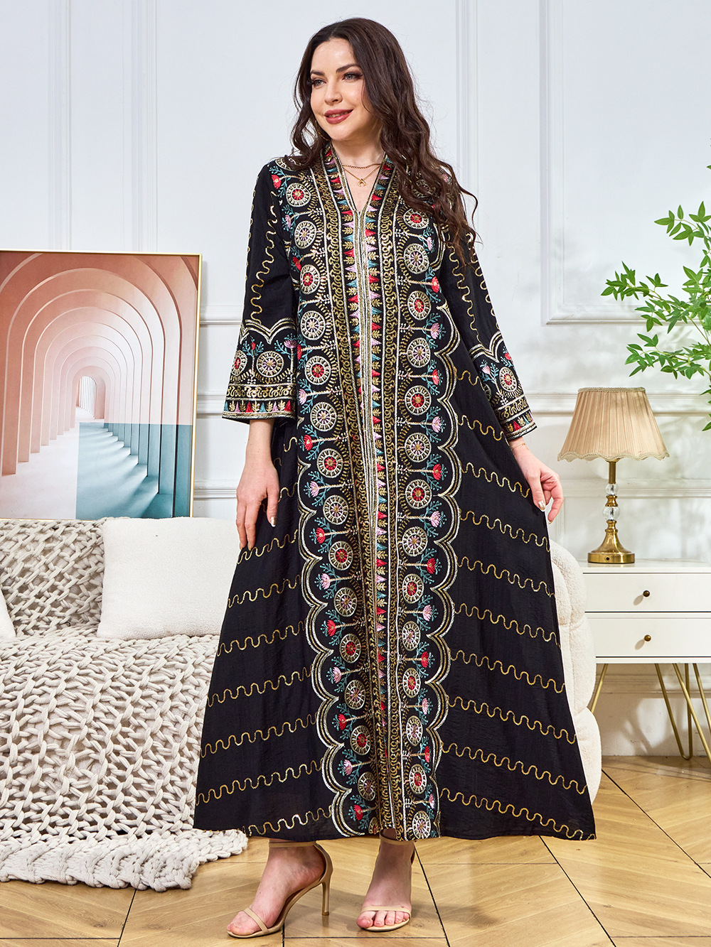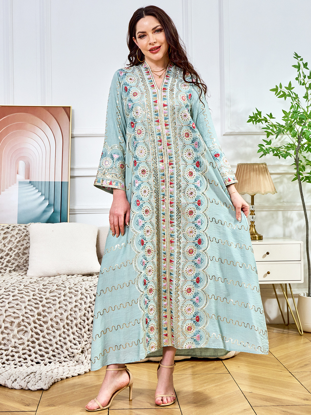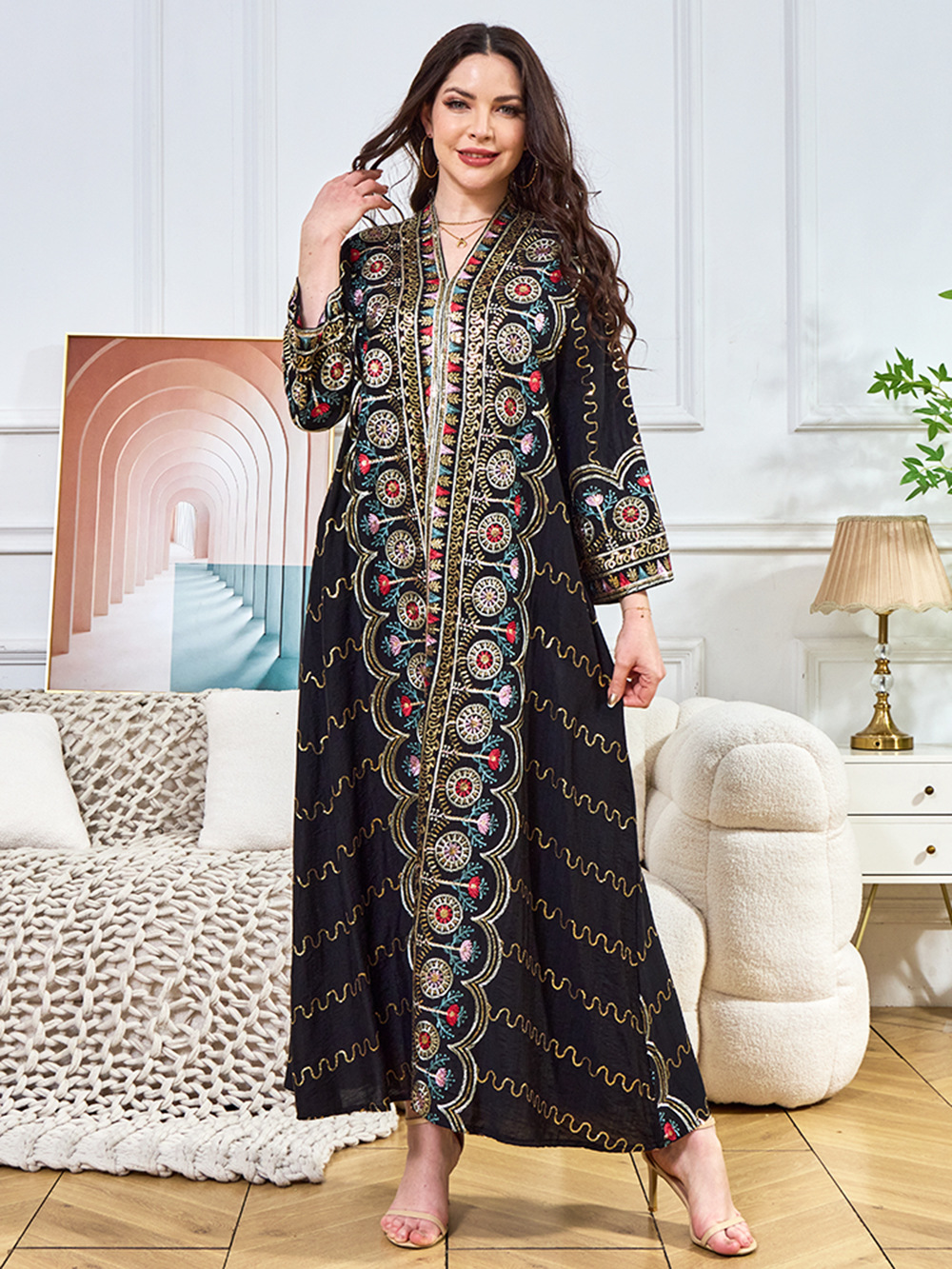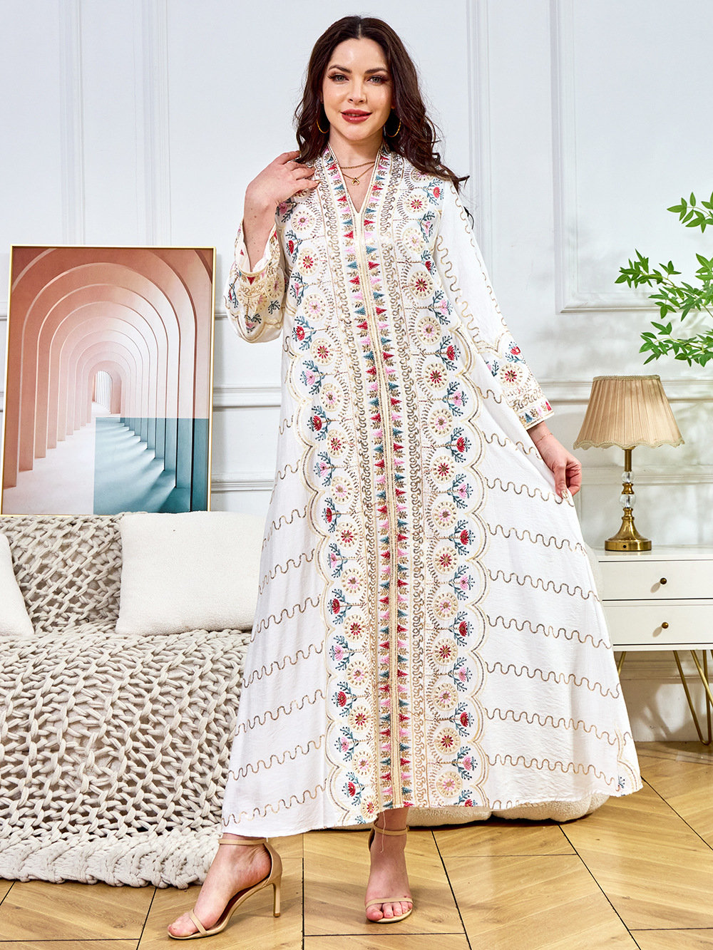 Внешняя торговля Ближневосточный мусульманский халат женское платье 2025 бисер новый V-образный вырез свободное вечернее платье Дубай платье