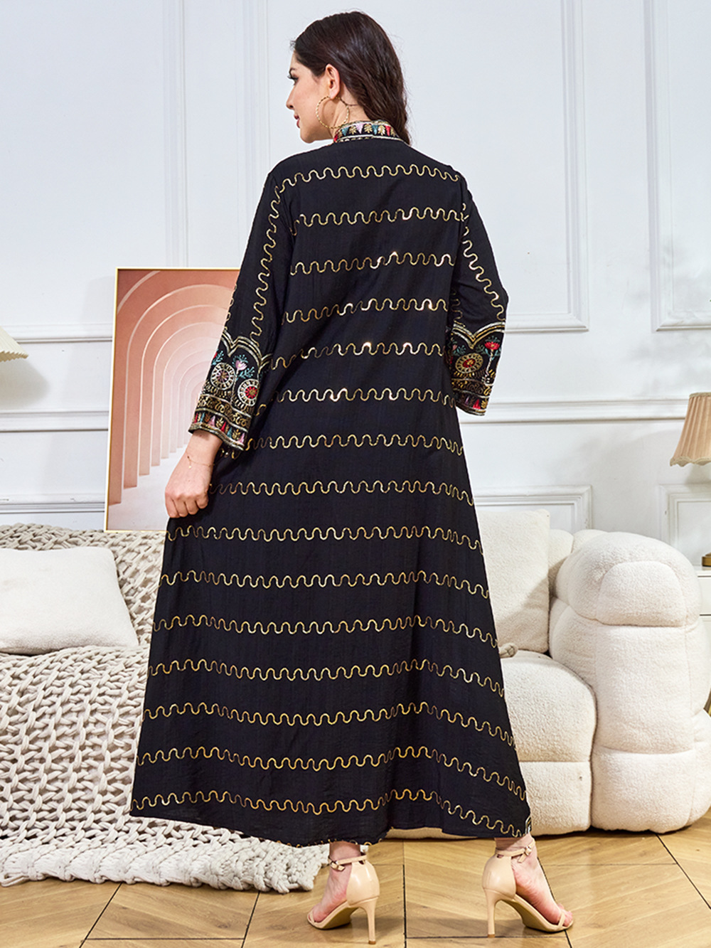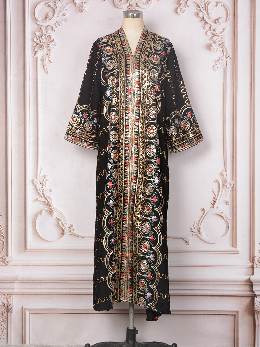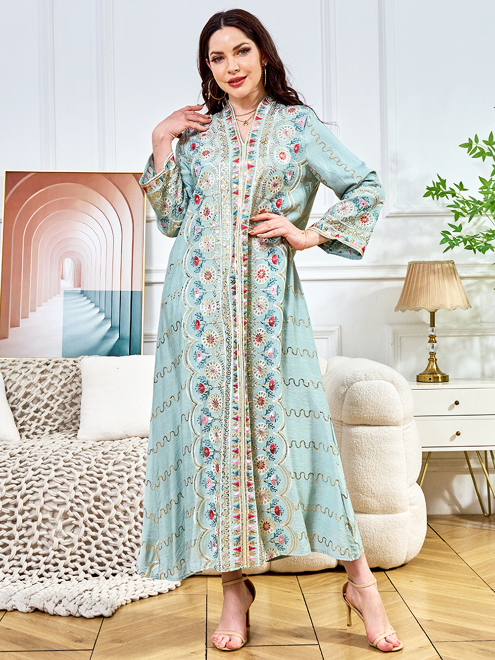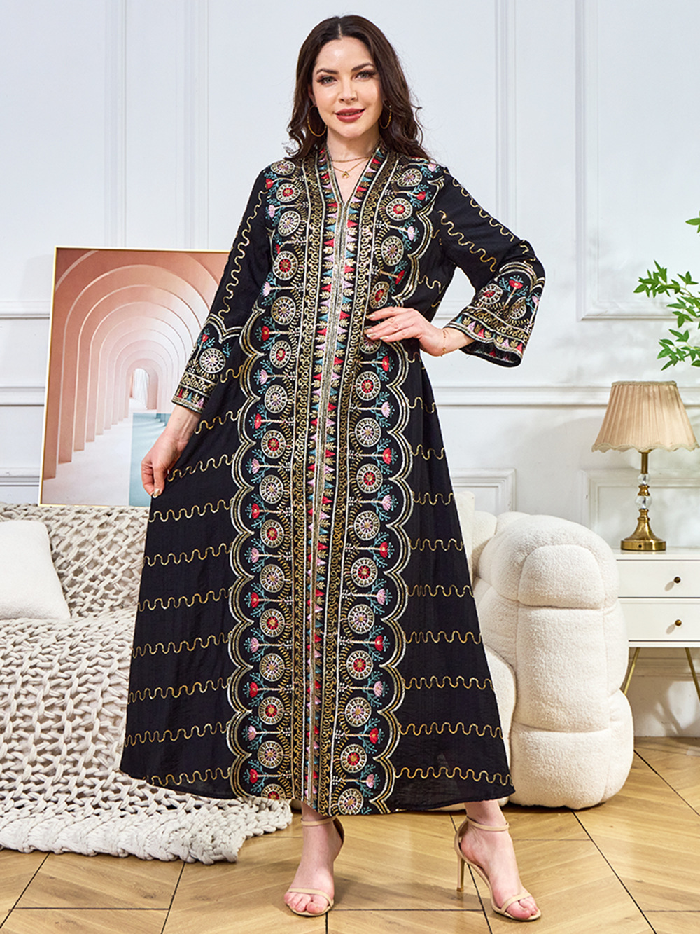 Внешняя торговля Ближневосточный мусульманский халат женское платье 2025 бисер новый V-образный вырез свободное вечернее платье Дубай платье
