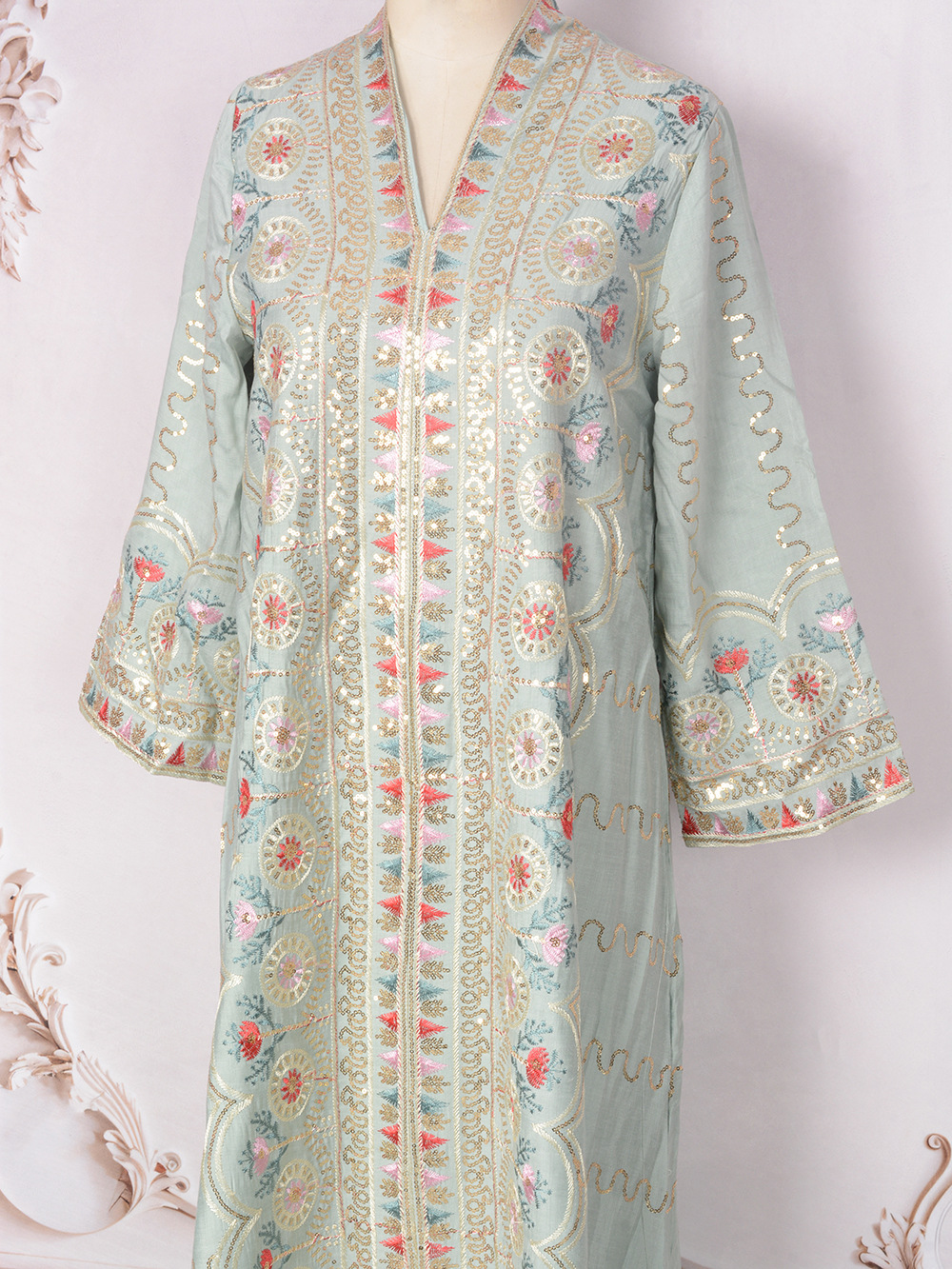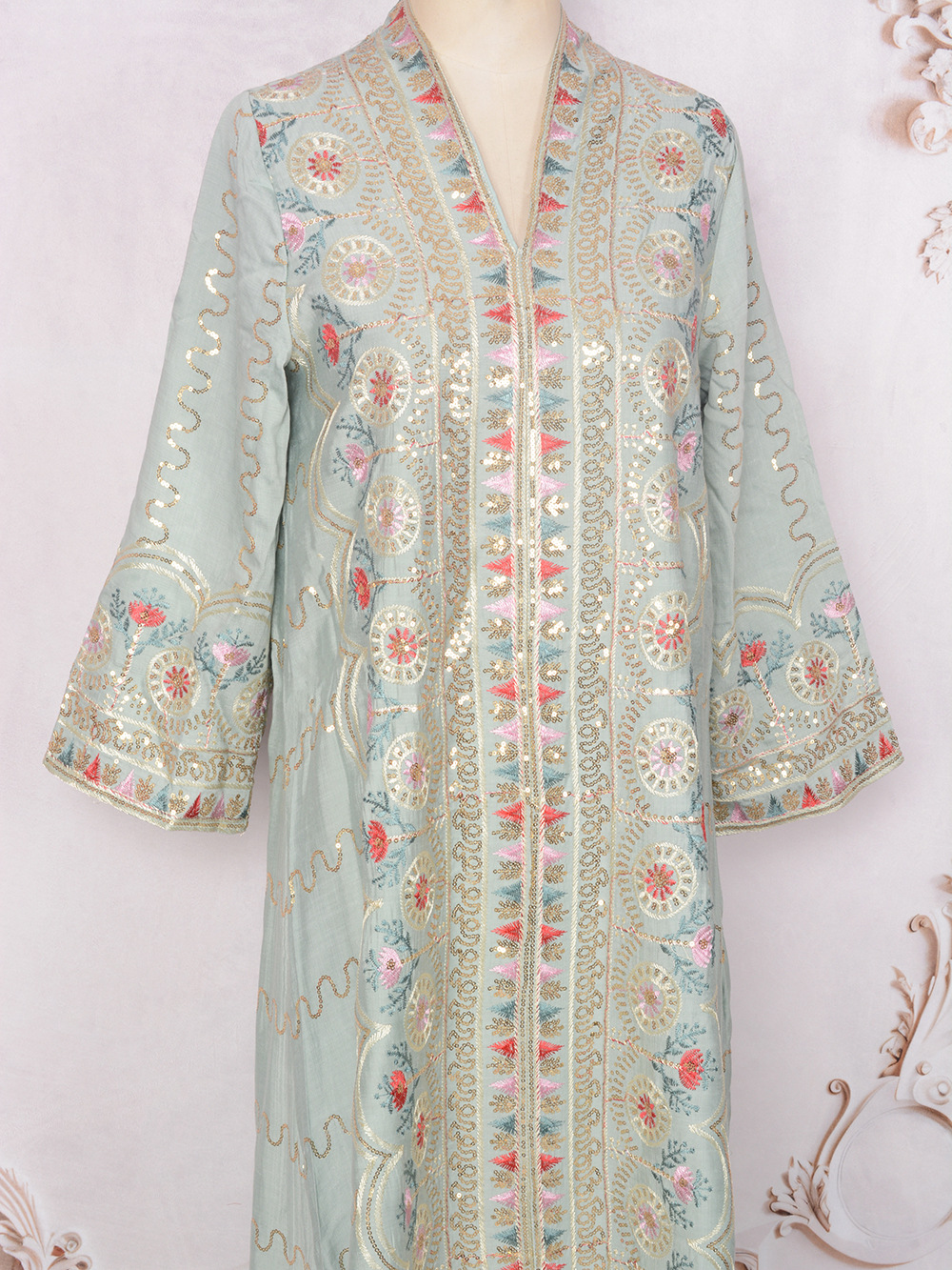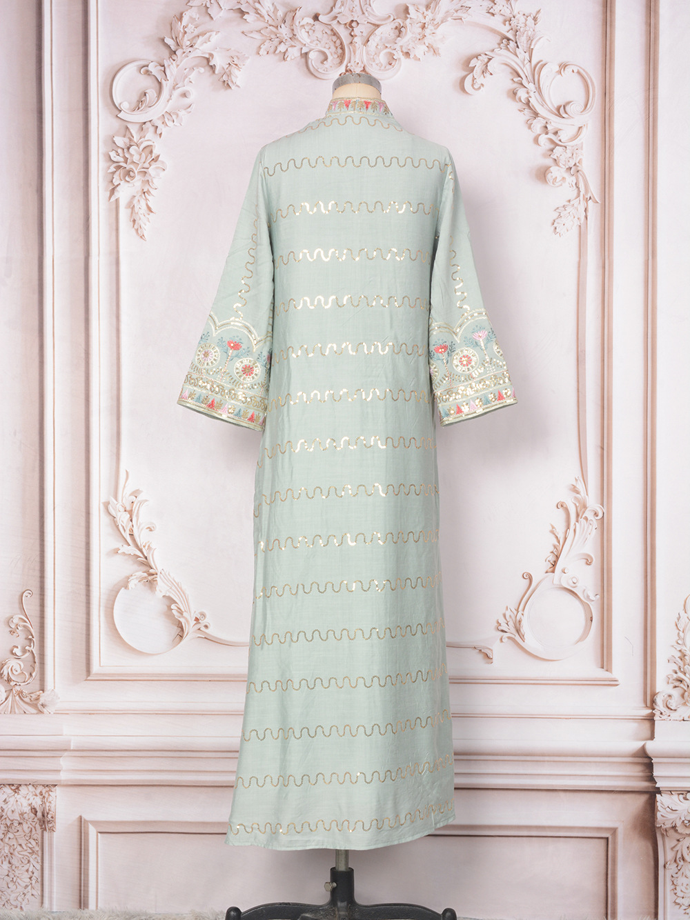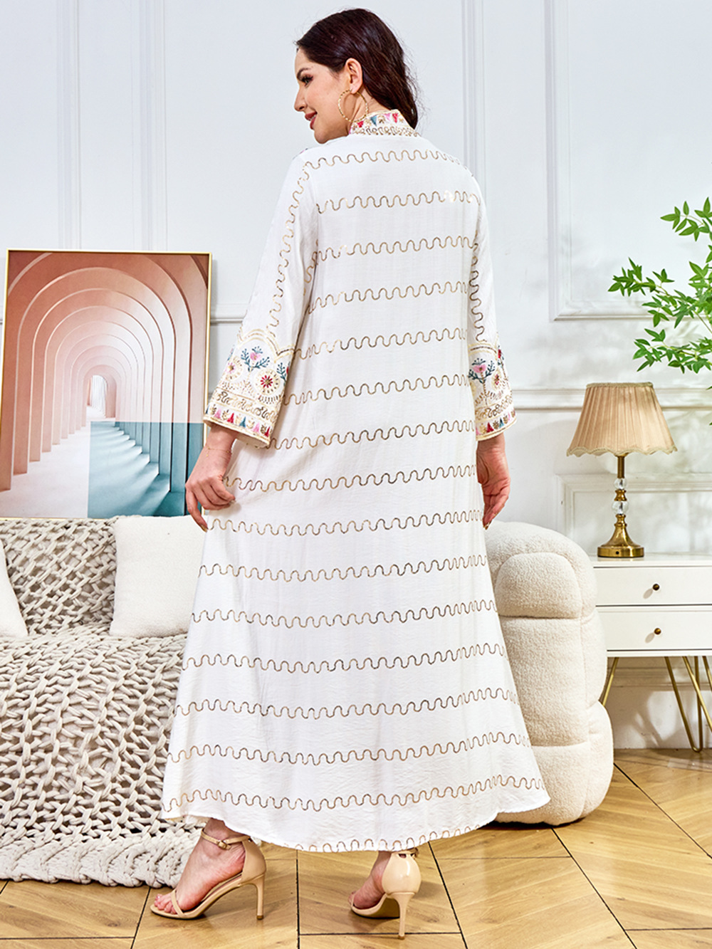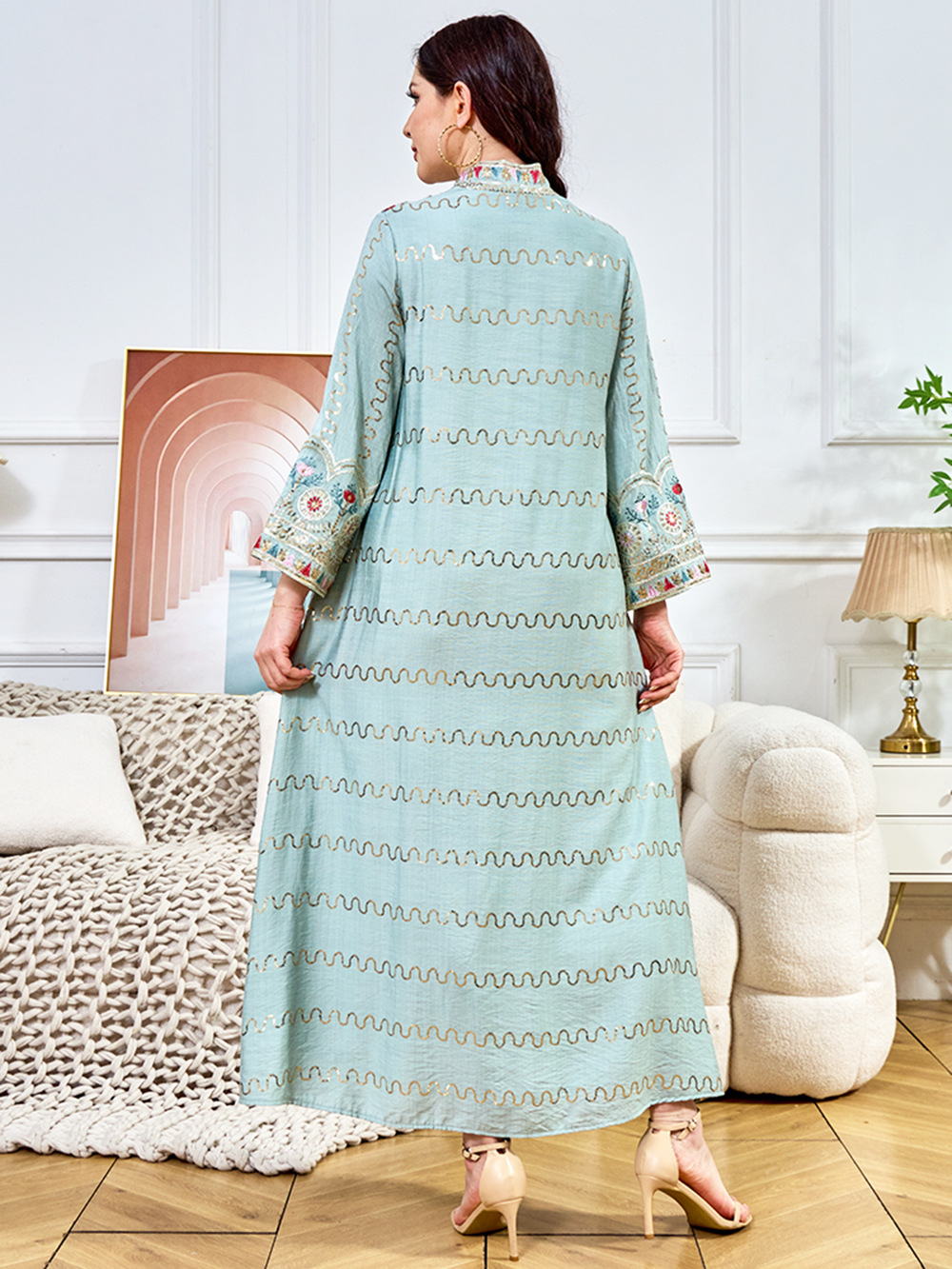 Внешняя торговля Ближневосточный мусульманский халат женское платье 2025 бисер новый V-образный вырез свободное вечернее платье Дубай платье