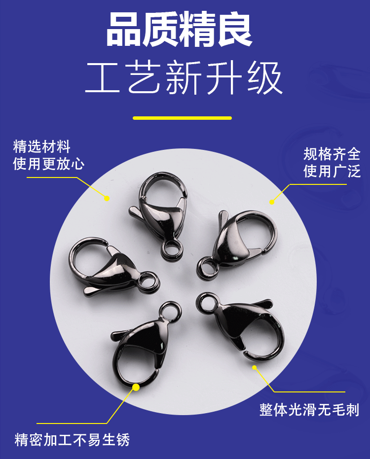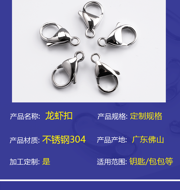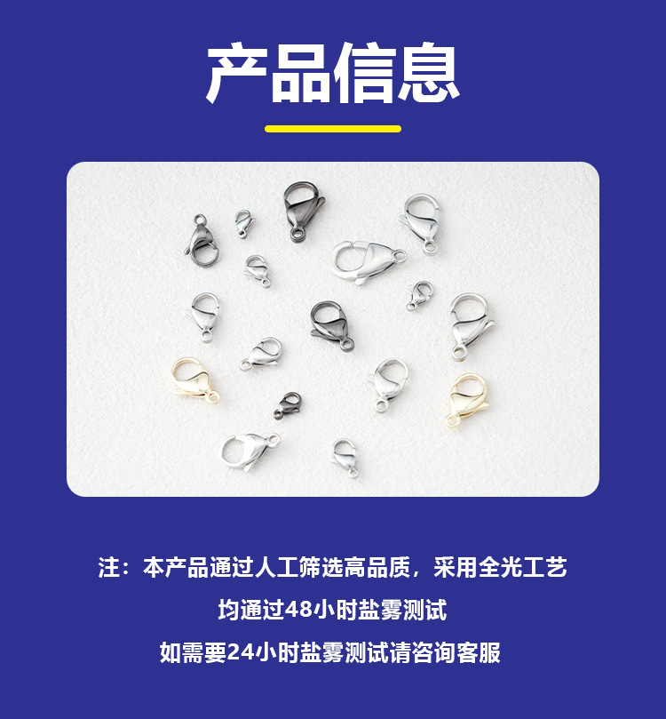 龙虾扣 虾公扣 不锈钢龙虾扣 狗扣 全光龙虾扣 不褪色龙虾扣 工厂直销龙虾扣 批发龙虾扣 定制龙虾扣 项链收尾扣 链接扣 18K真金龙虾扣 14K包金301水滴弹簧扣串珠配件项链扣diy配件B 98 配件扣 钥匙扣挂件扣 304不锈钢龙虾扣保色钛钢金真空镀DIY饰品配件弹簧连接手链项批发