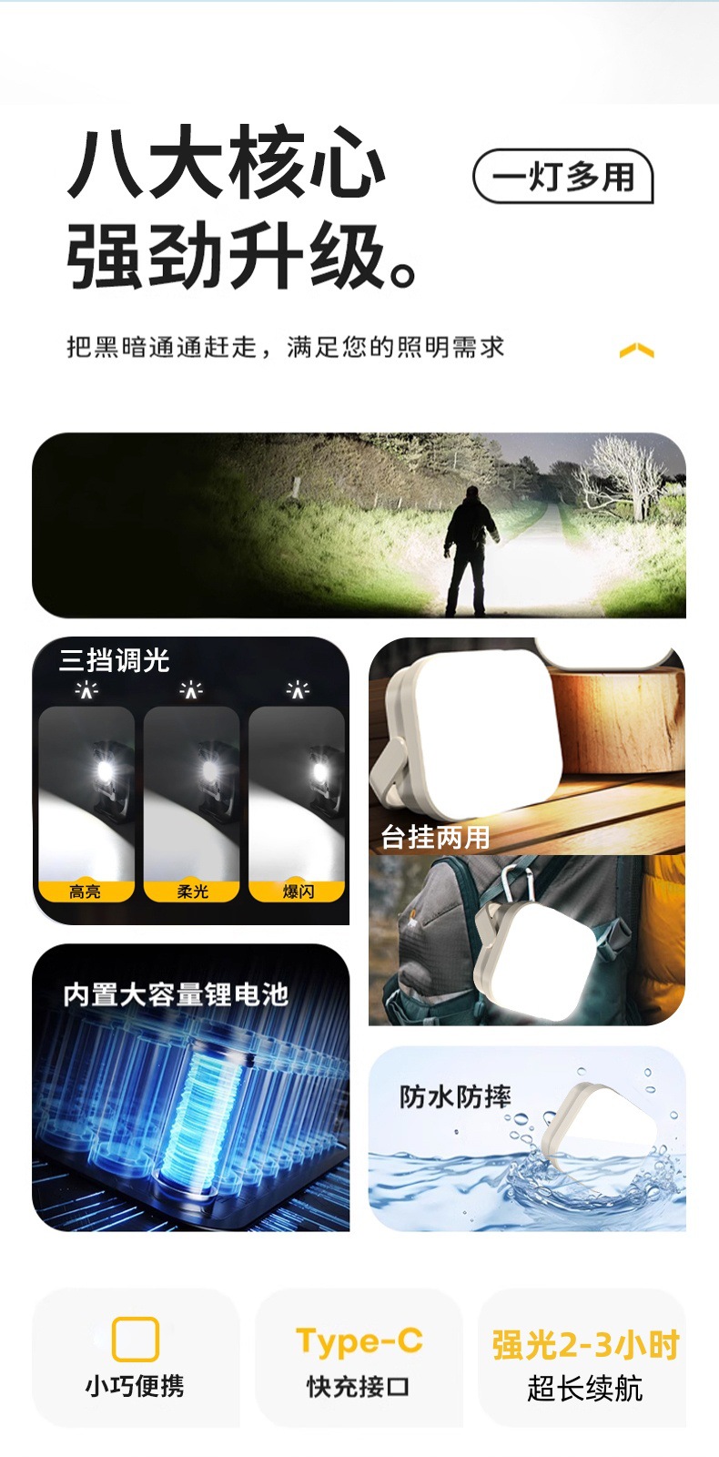 Большой клиент наружное освещение палатки для кемпинга супер яркий трехступентный многофункциональный фонарь для кемпинга cob работает аварийный свет для ремонта автомобилей